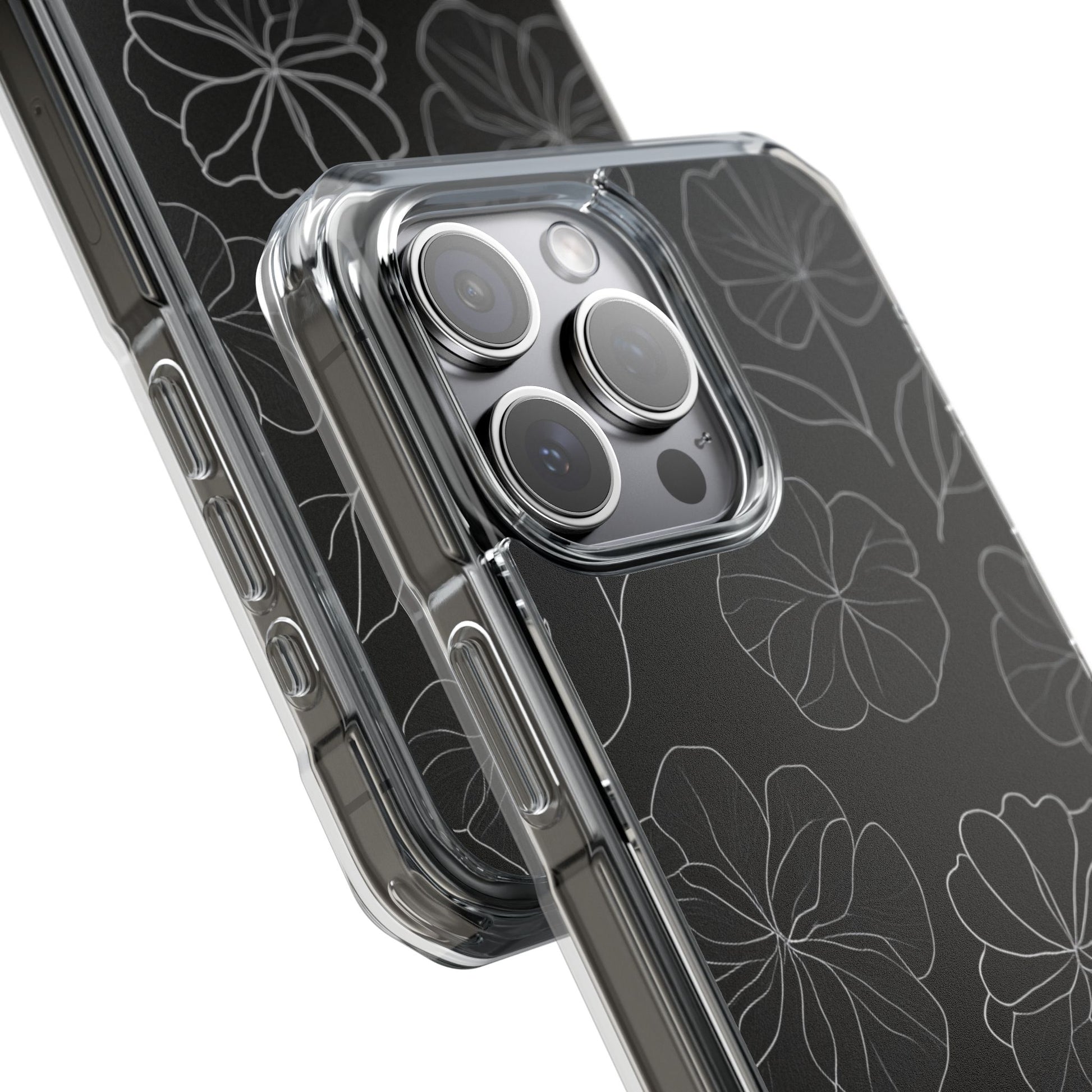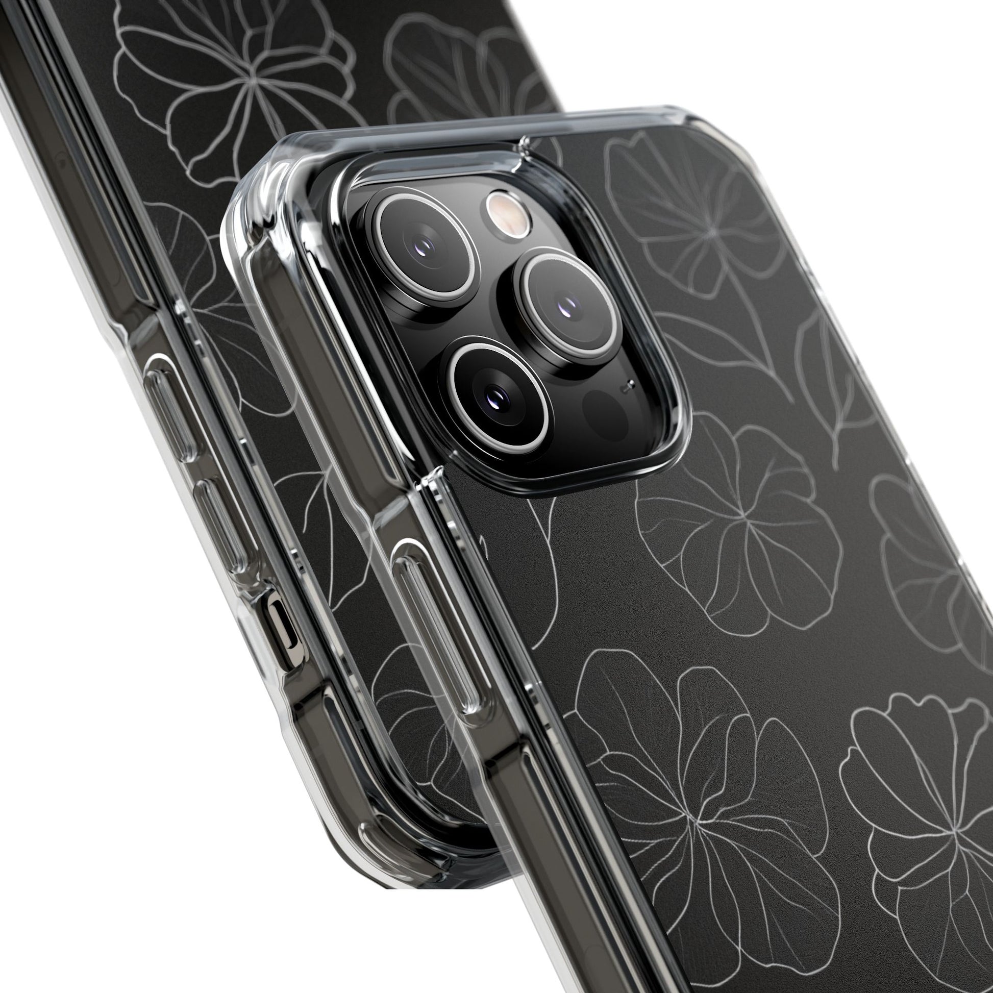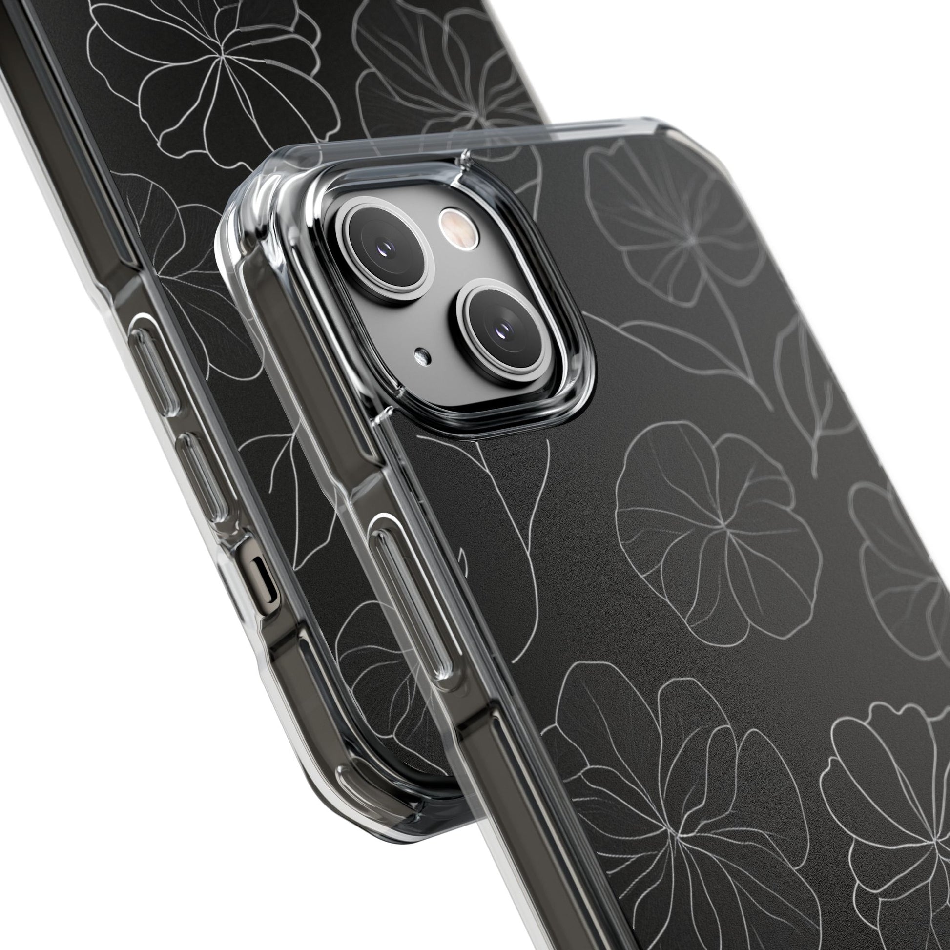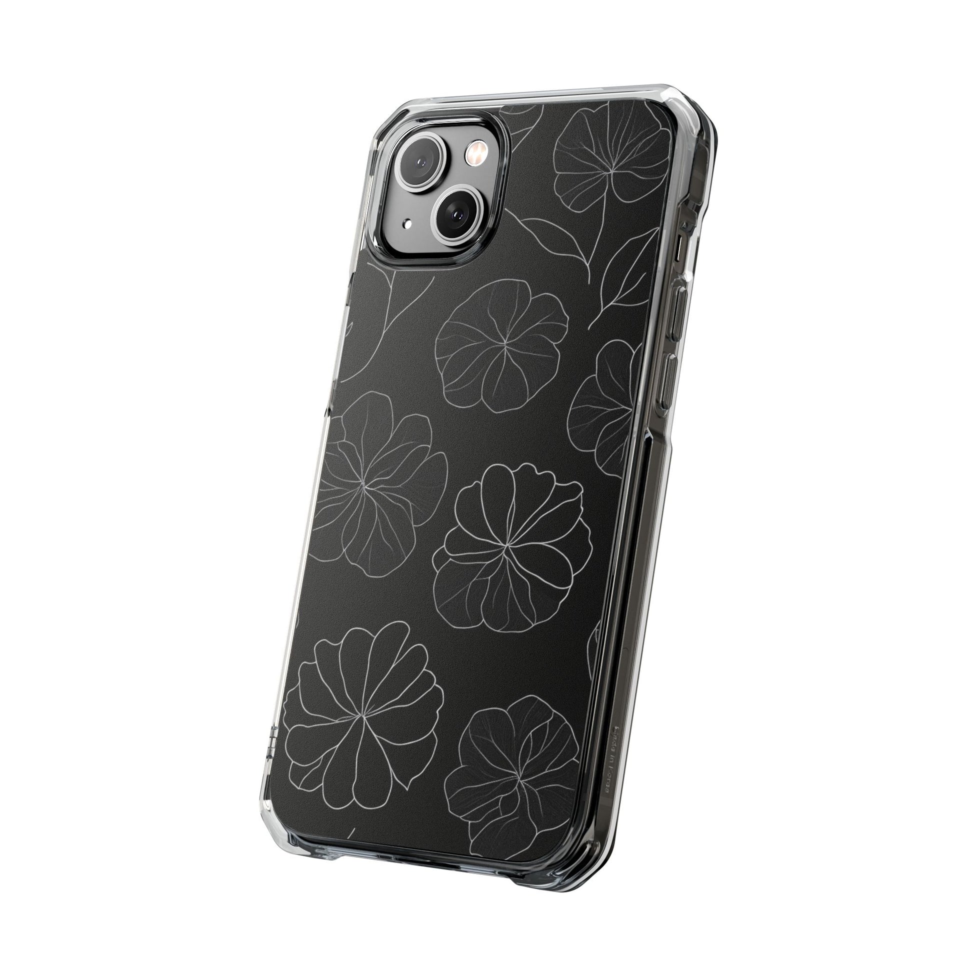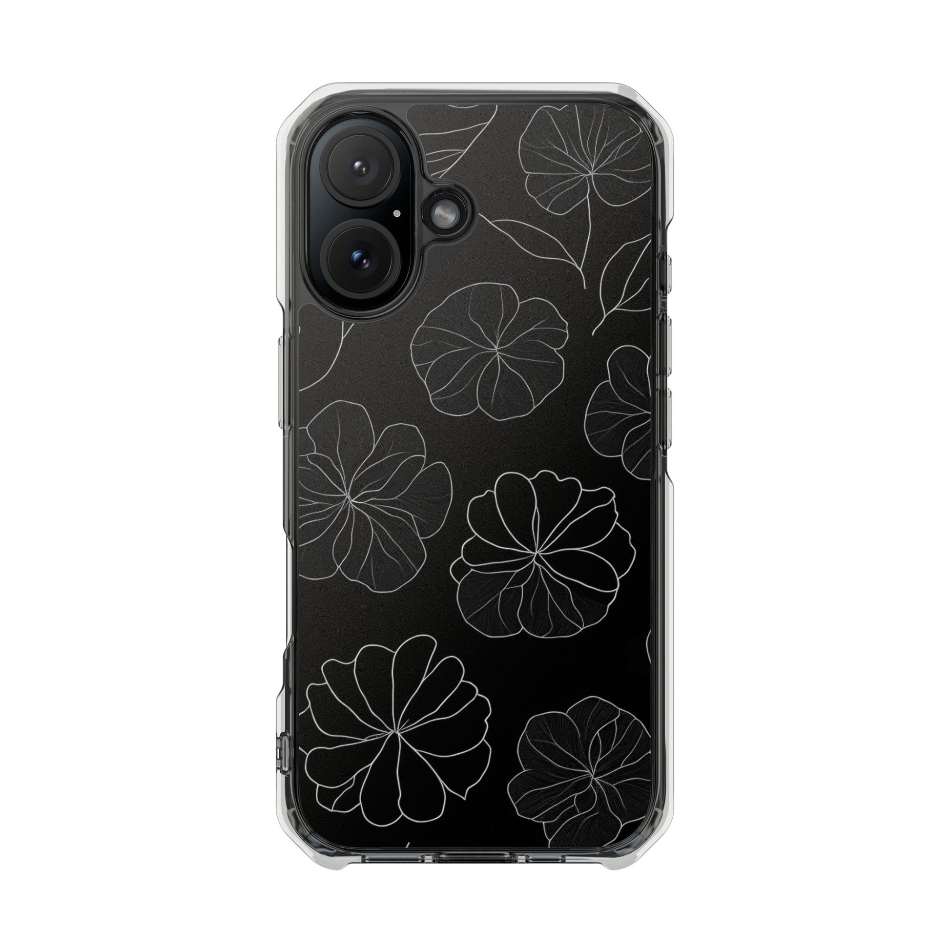 Black Floral Magnetic Clear Impact Case for iPhone 16 15 14