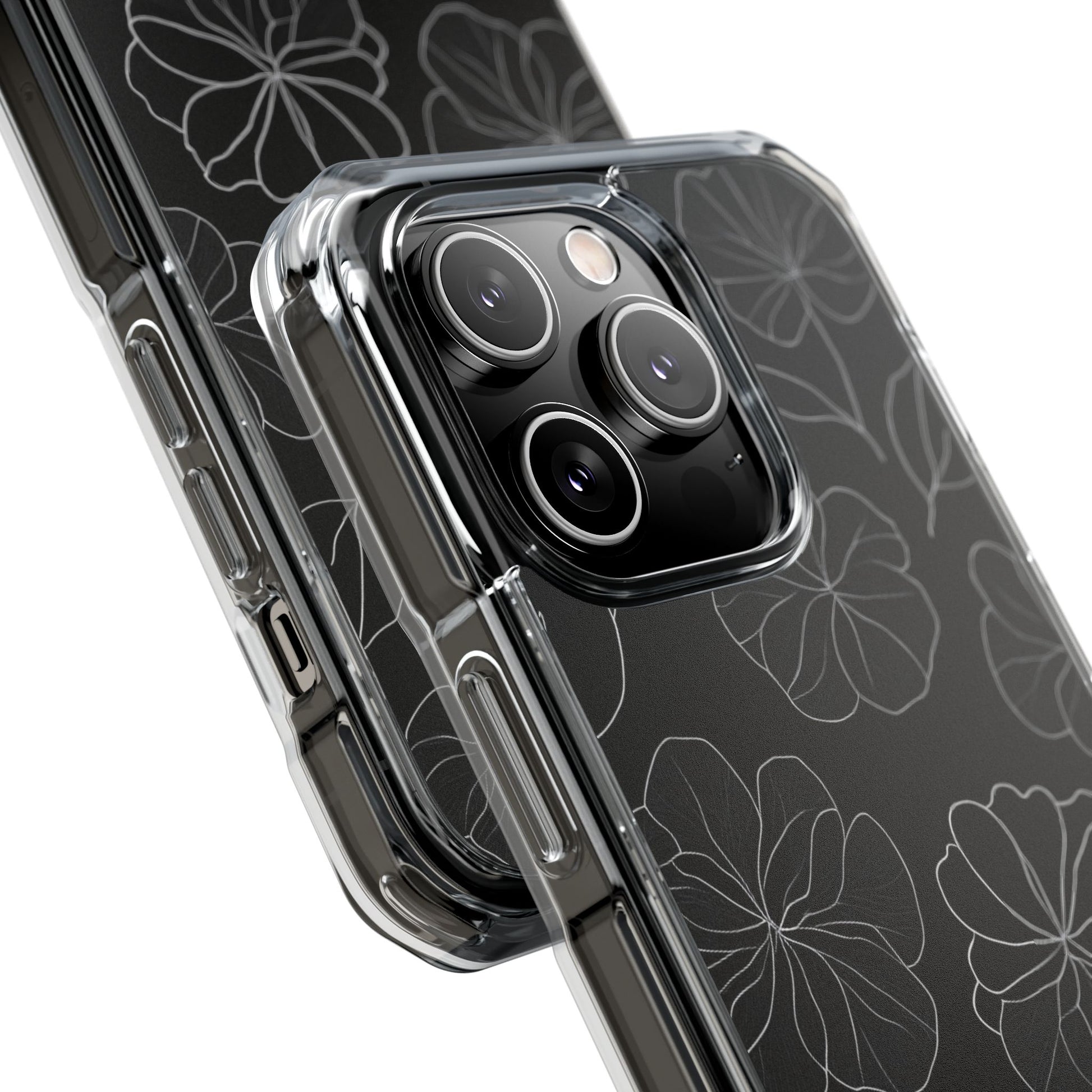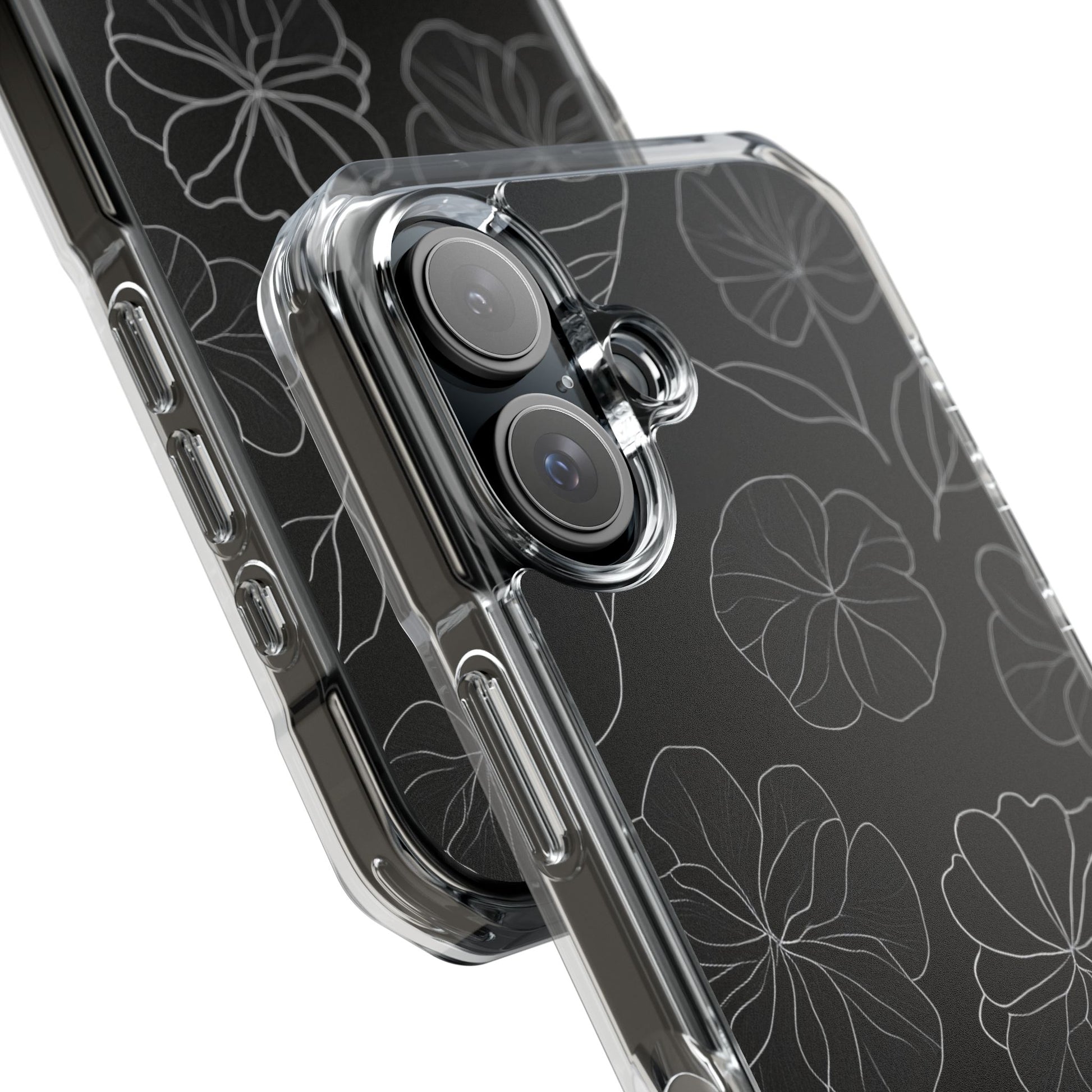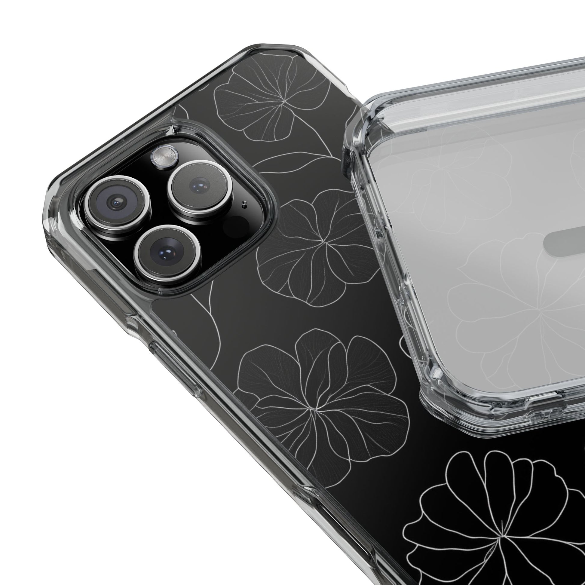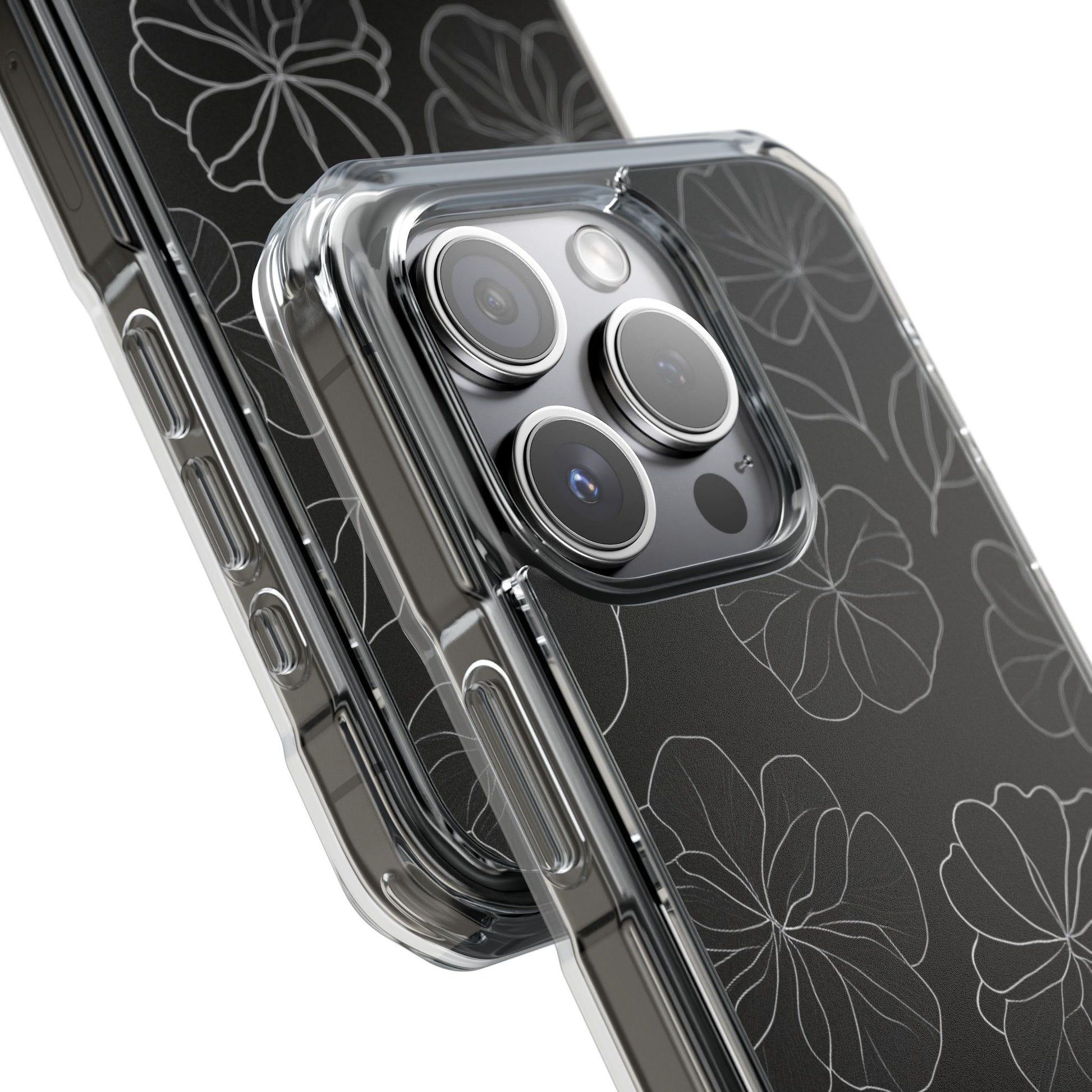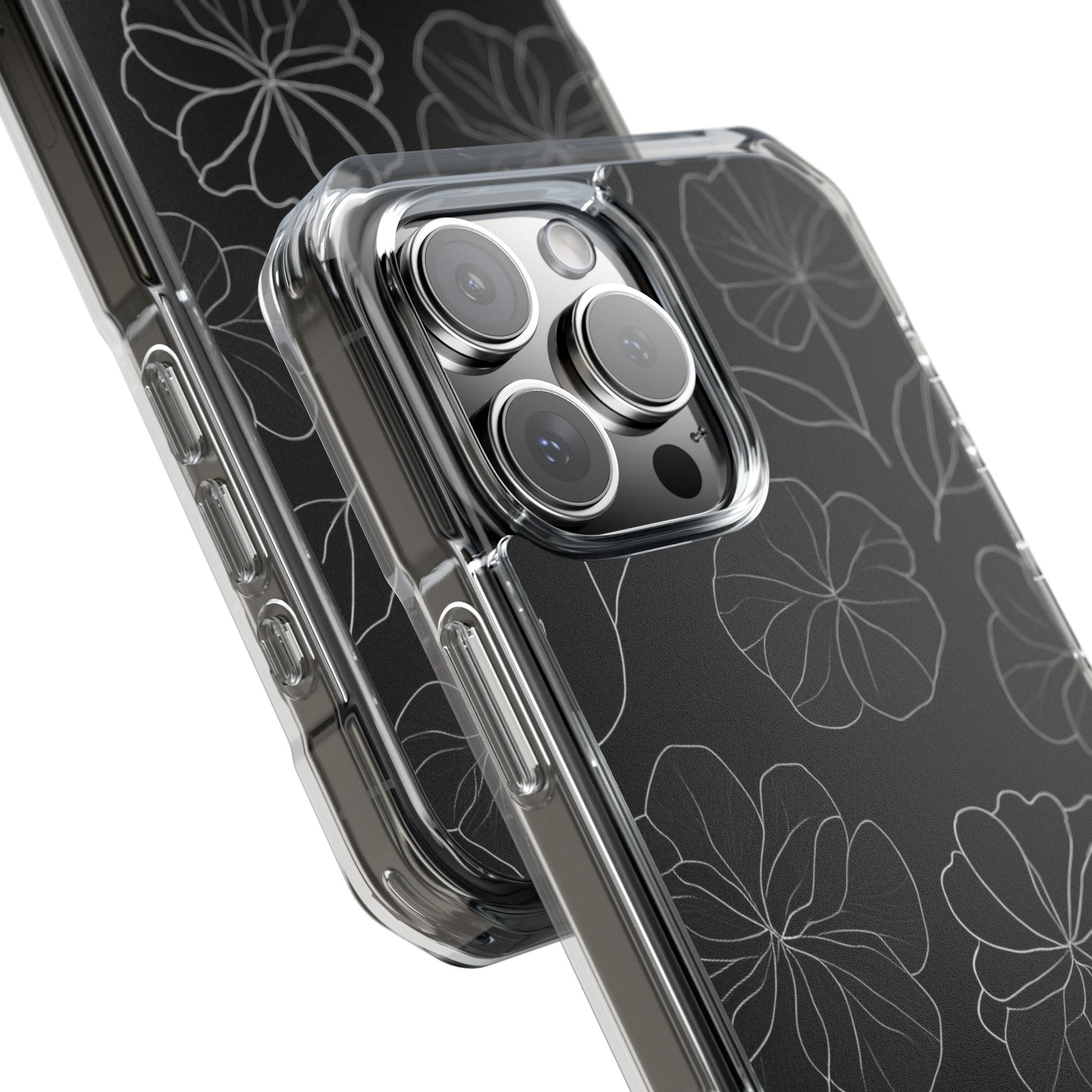 Black Floral Magnetic Clear Impact Case for iPhone 16 15 14