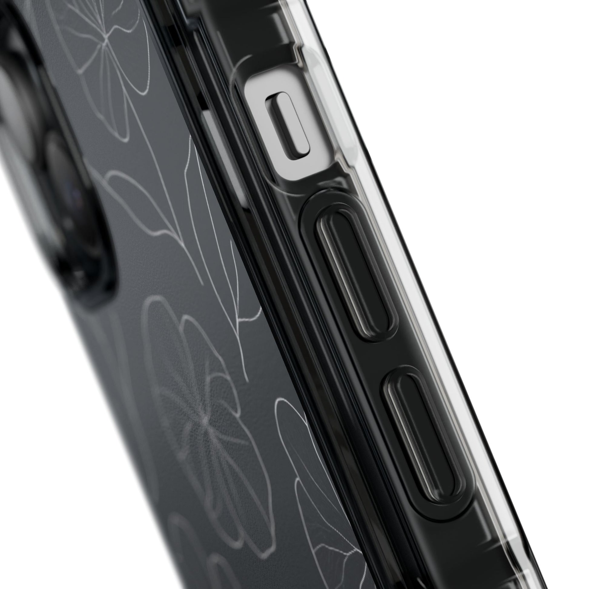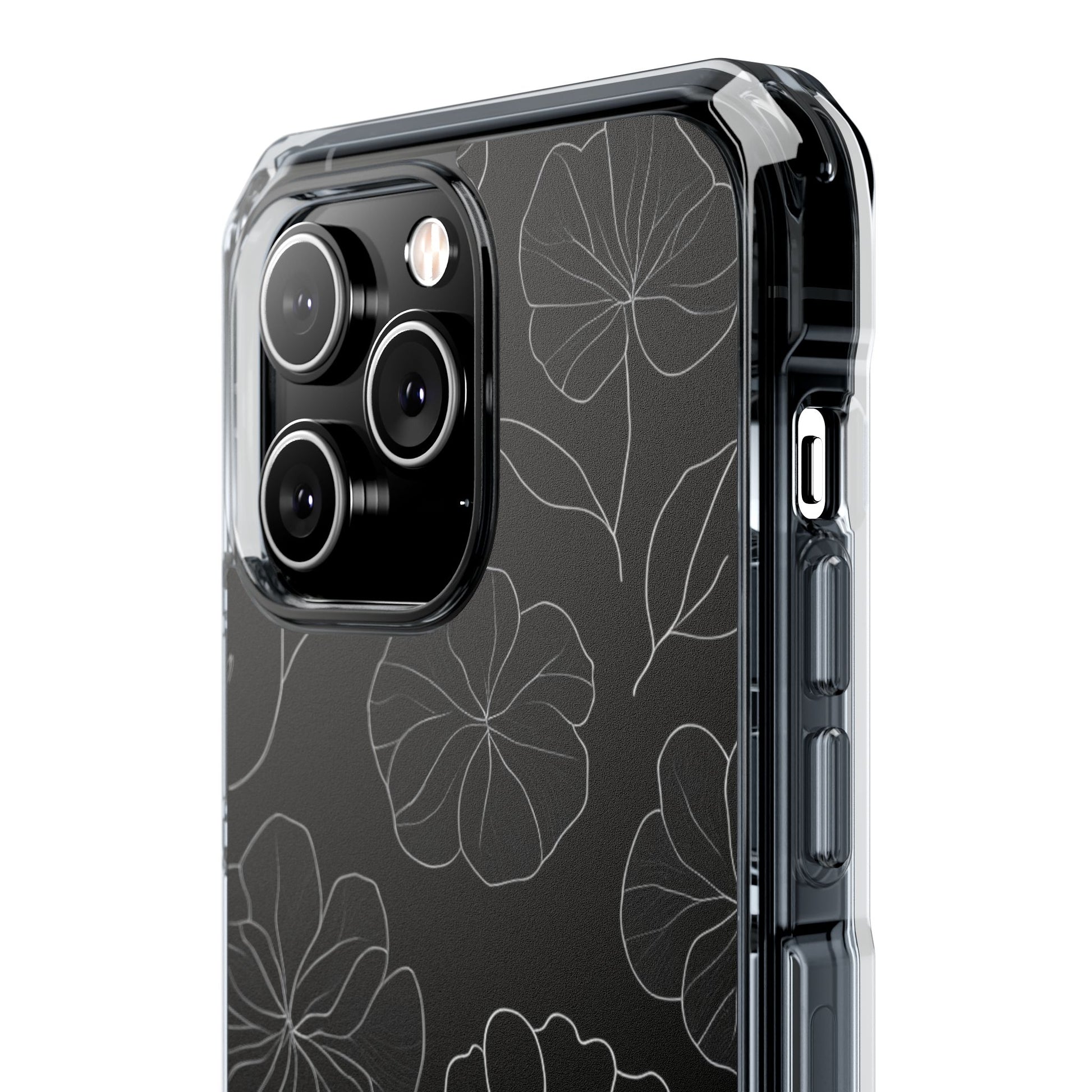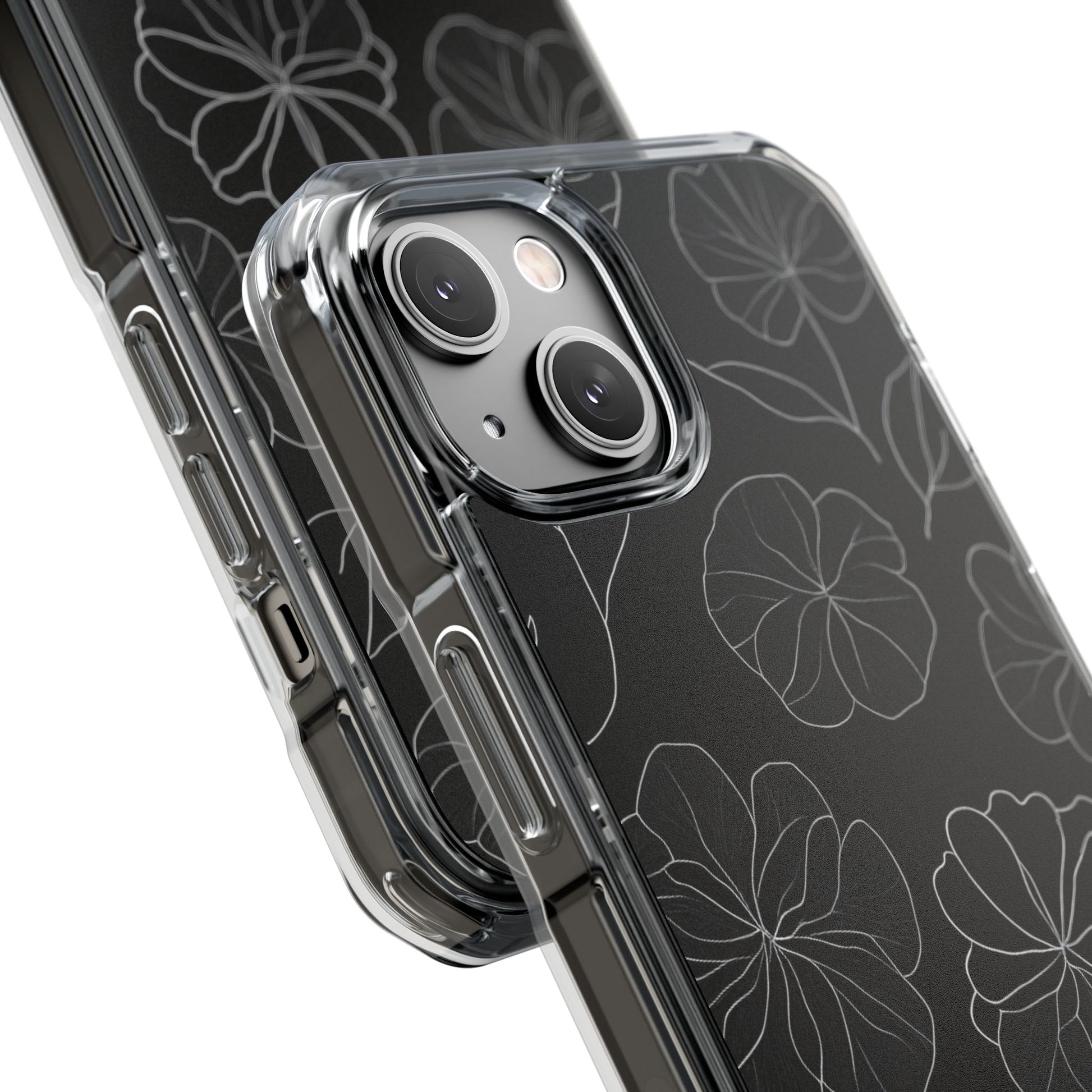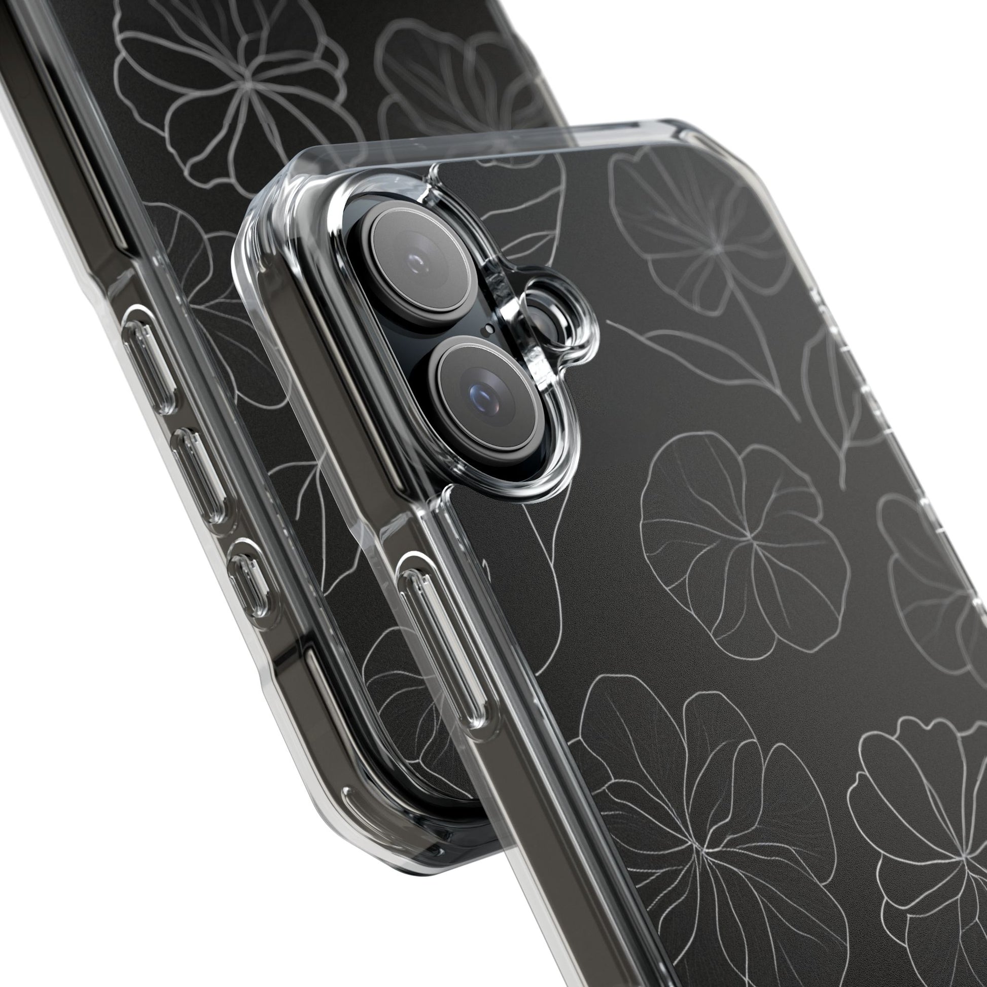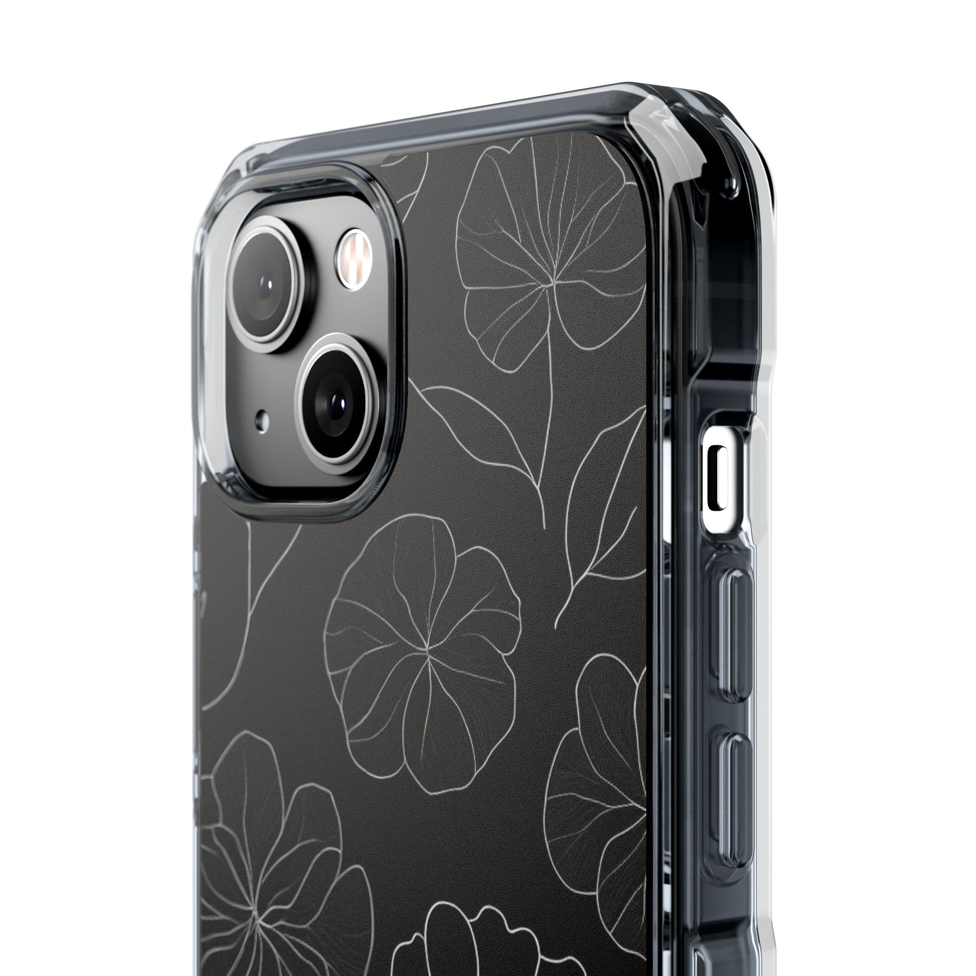 Black Floral Magnetic Clear Impact Case for iPhone 16 15 14