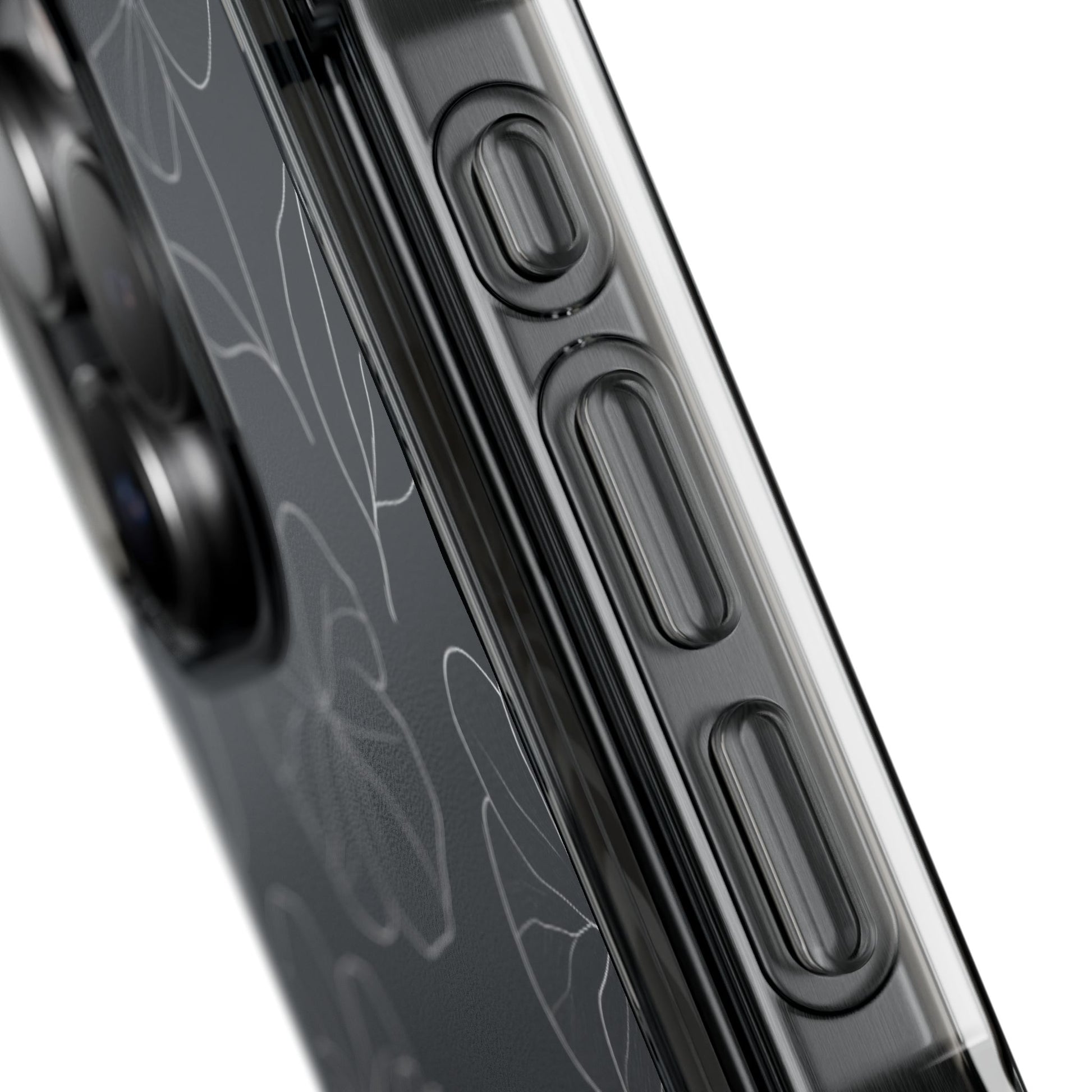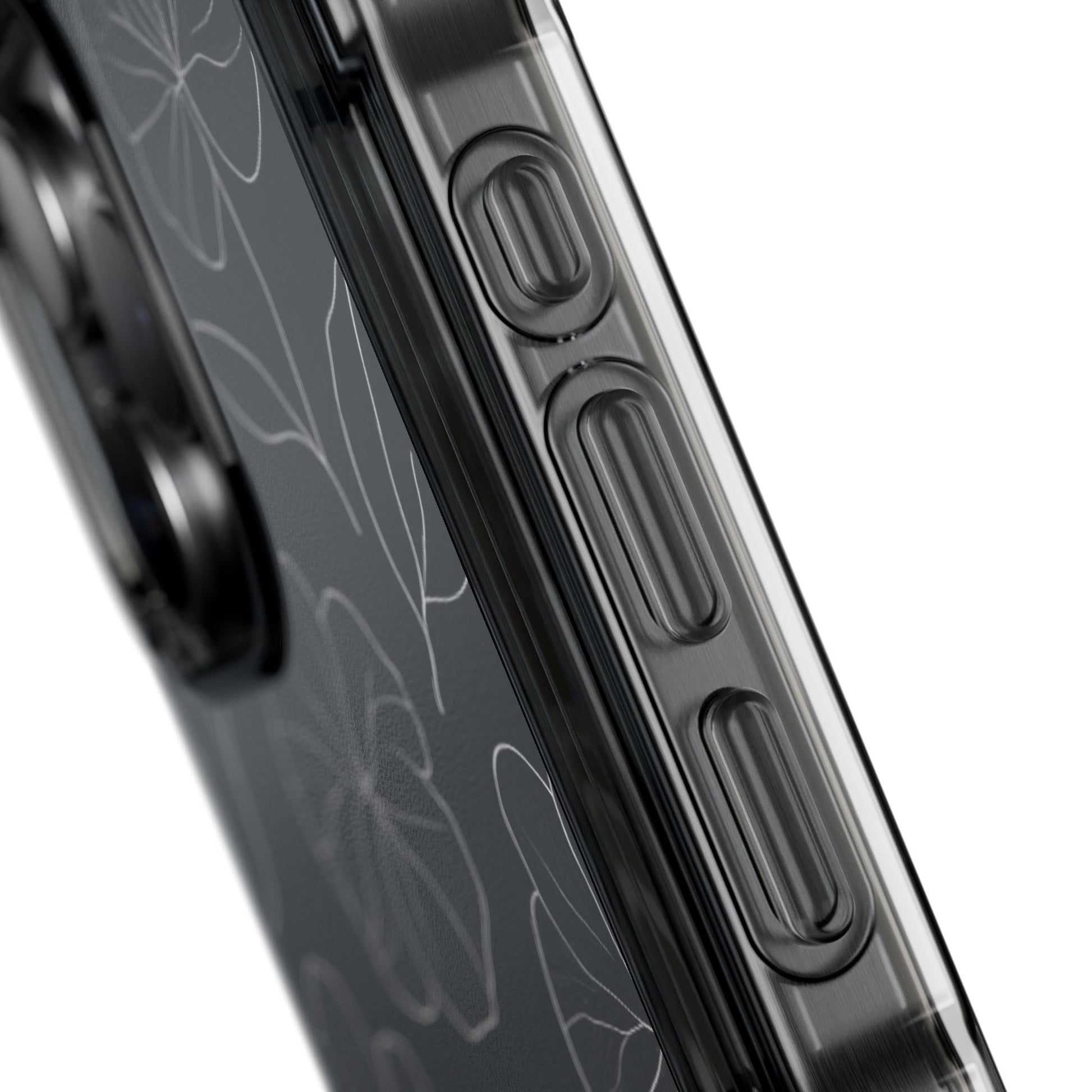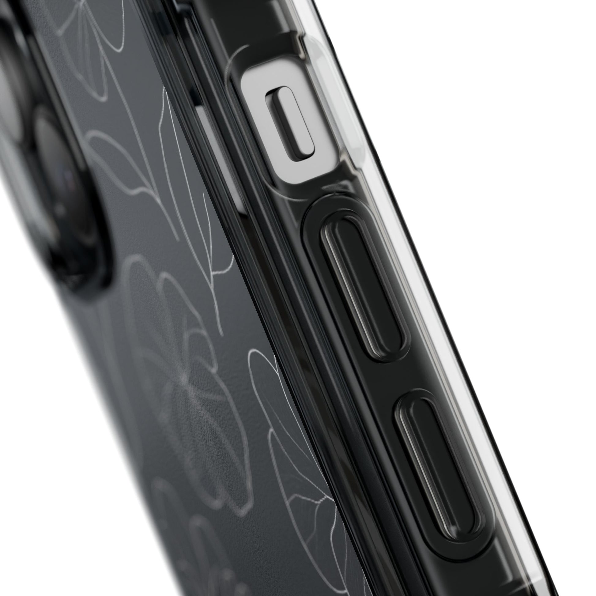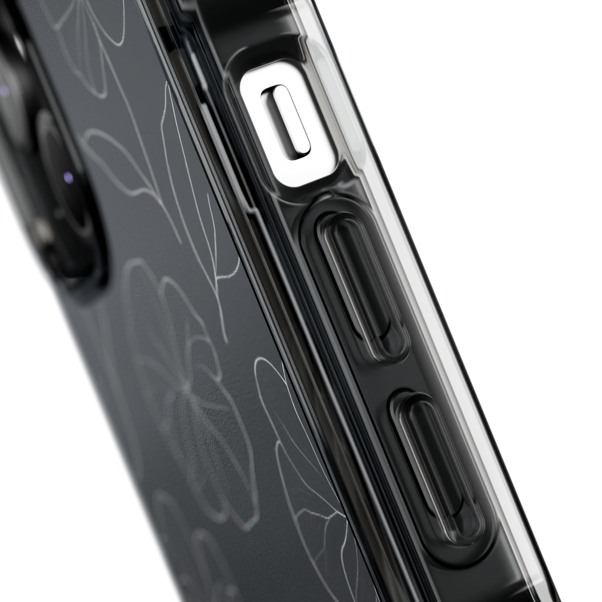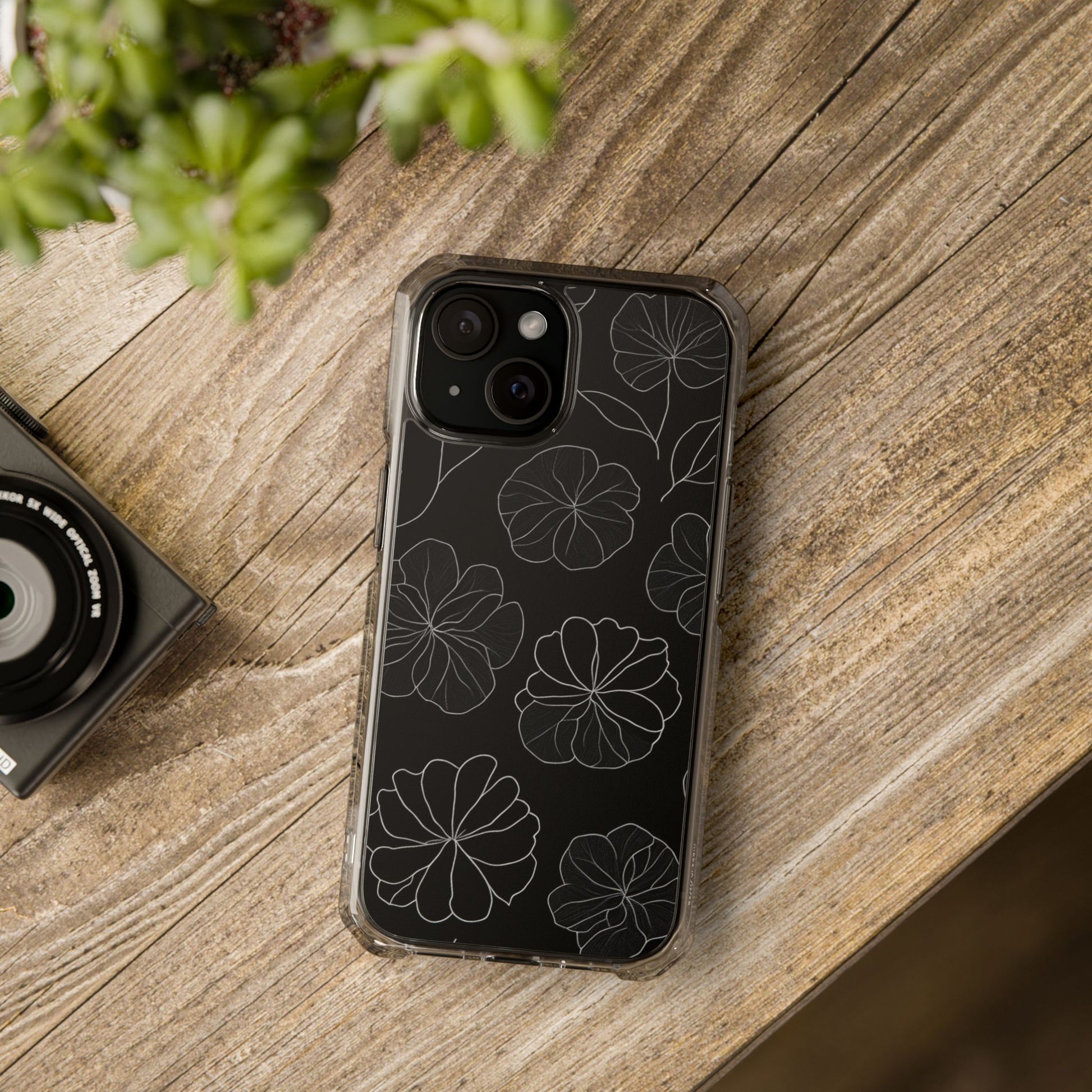 Black Floral Magnetic Clear Impact Case for iPhone 16 15 14