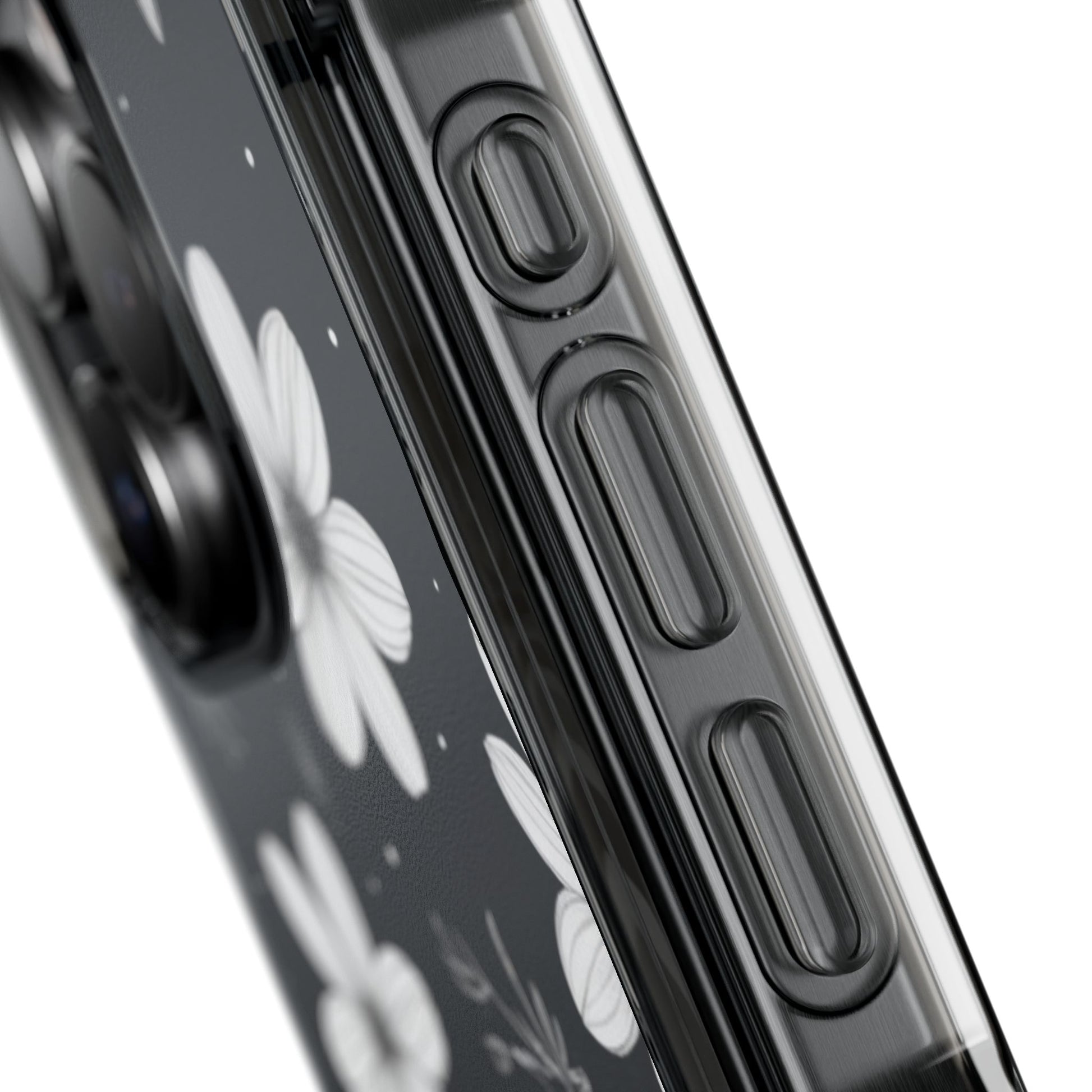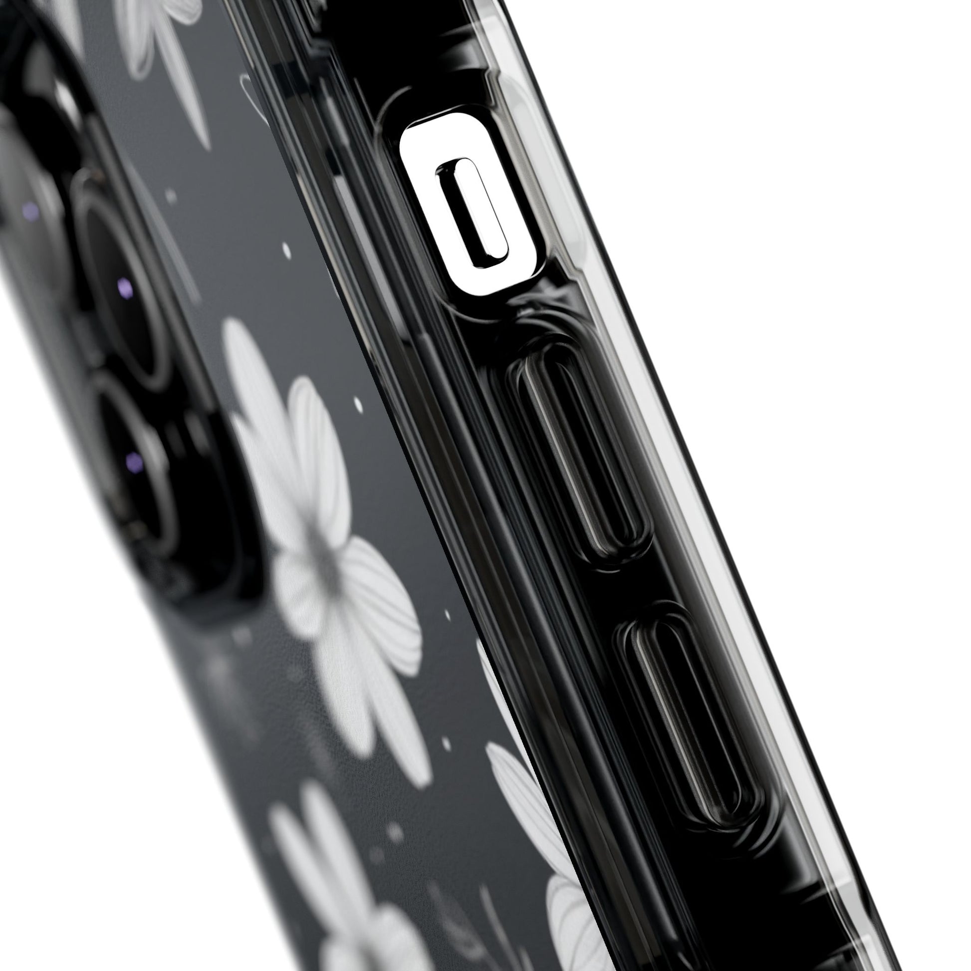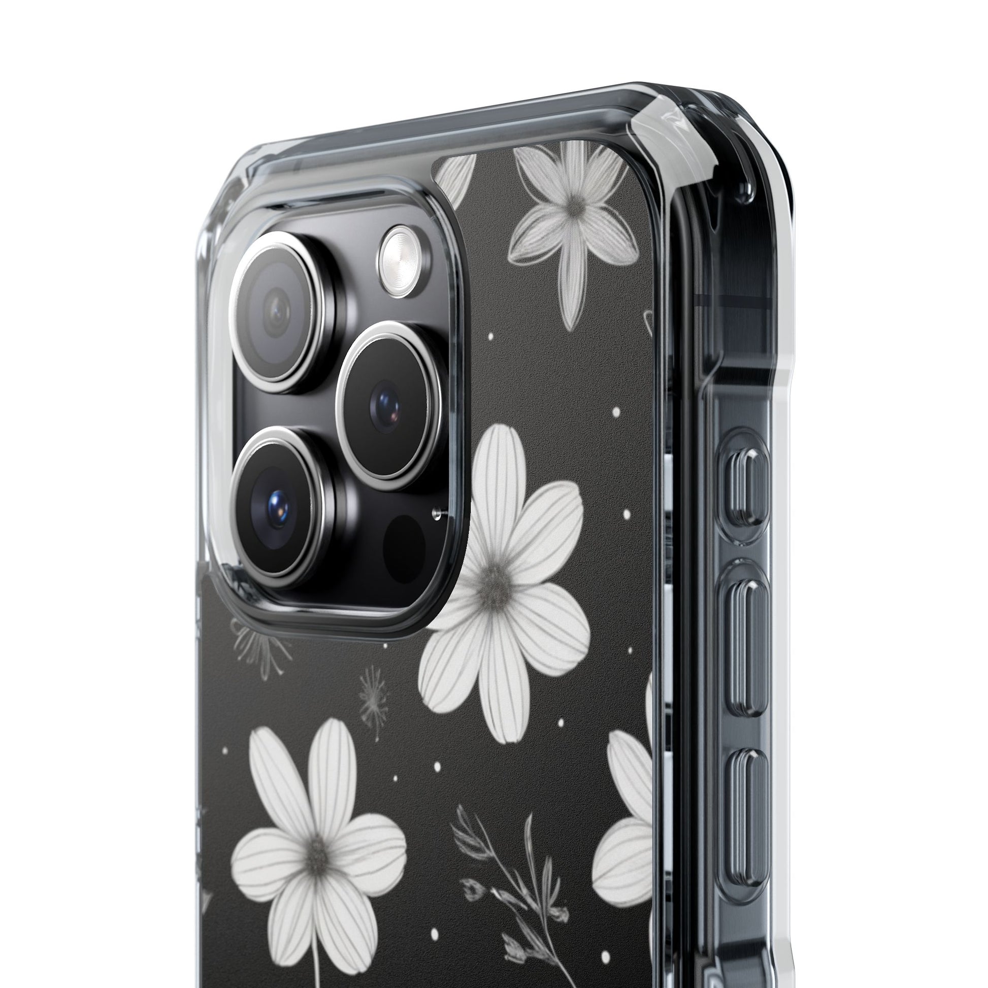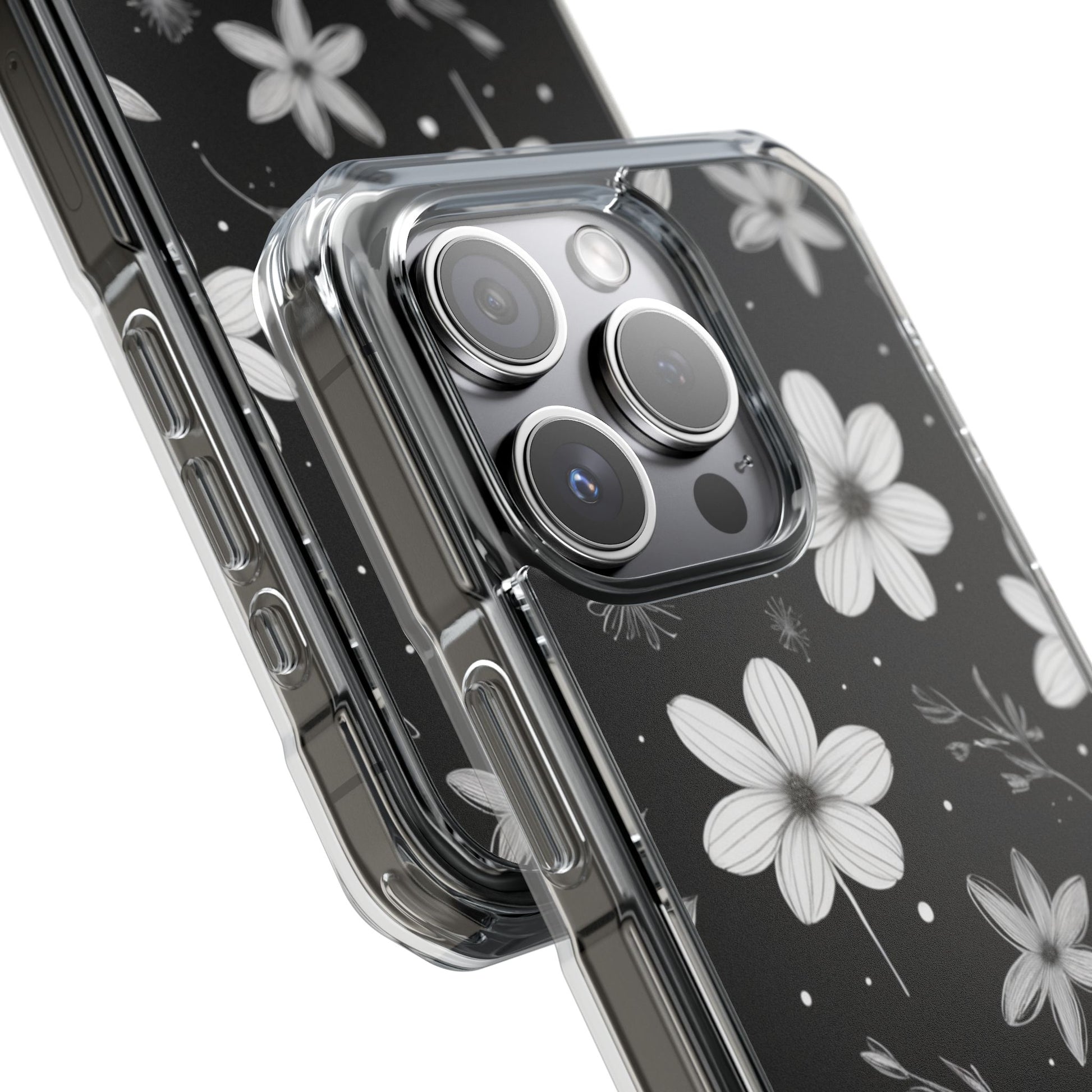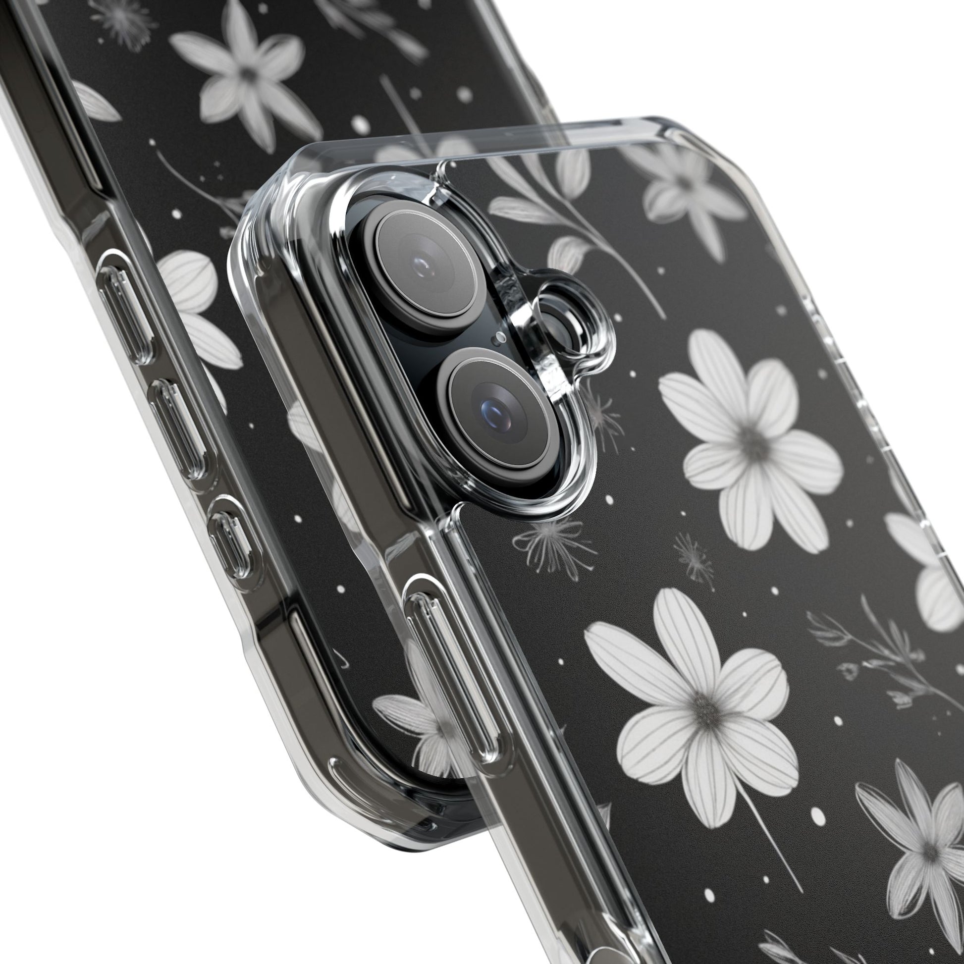 Chic Black and White Floral Print Magnetic Clear Impact Case for iPhone 16 15 14