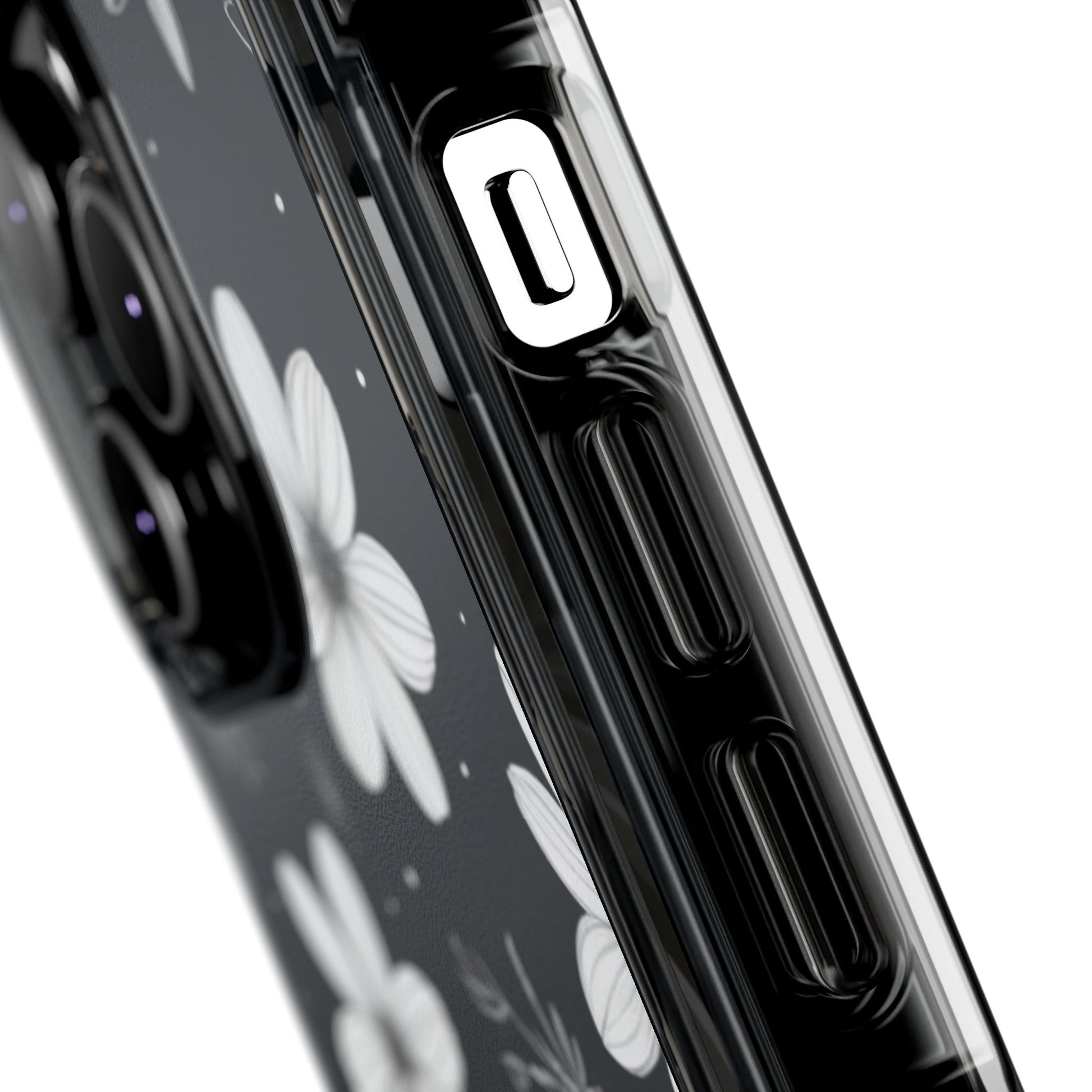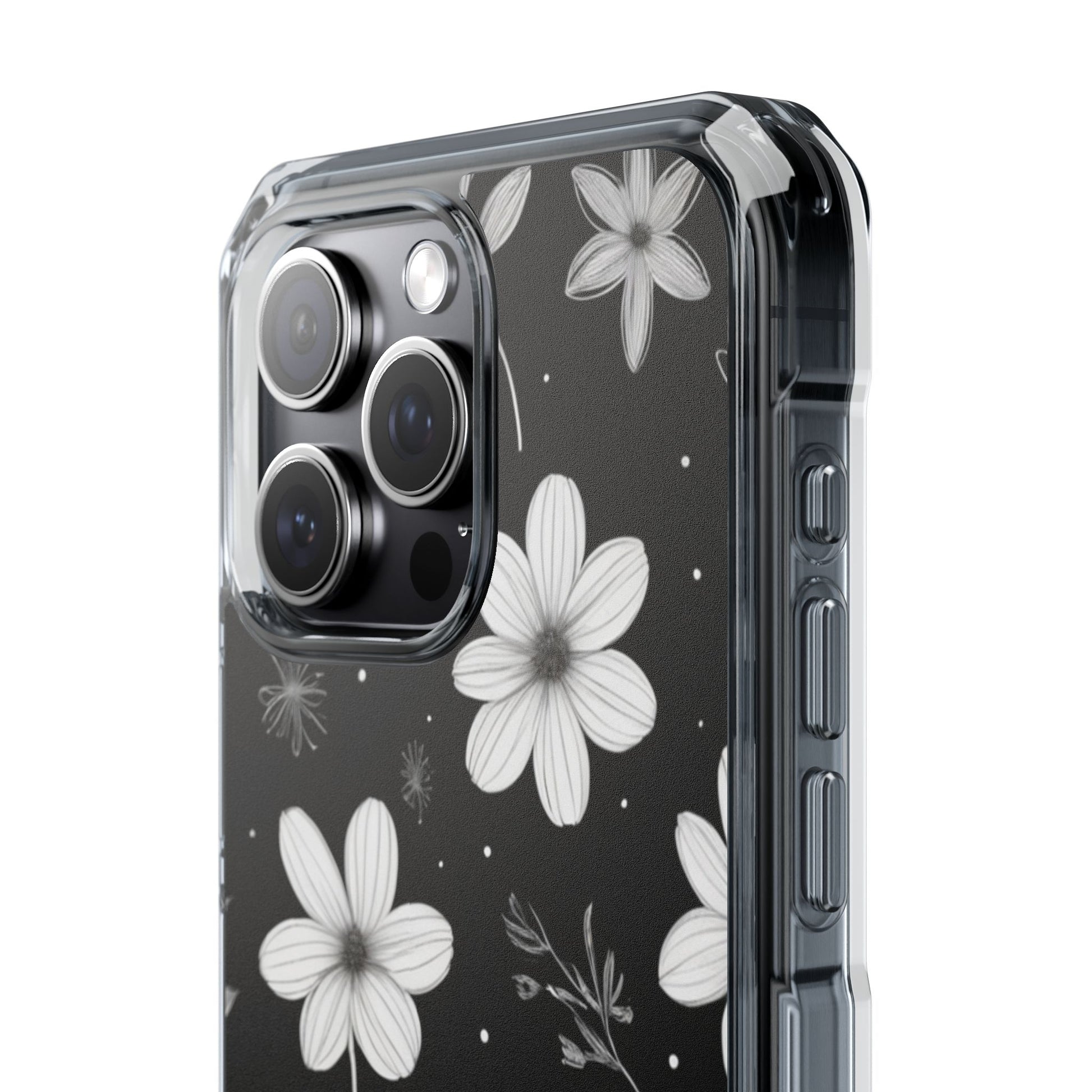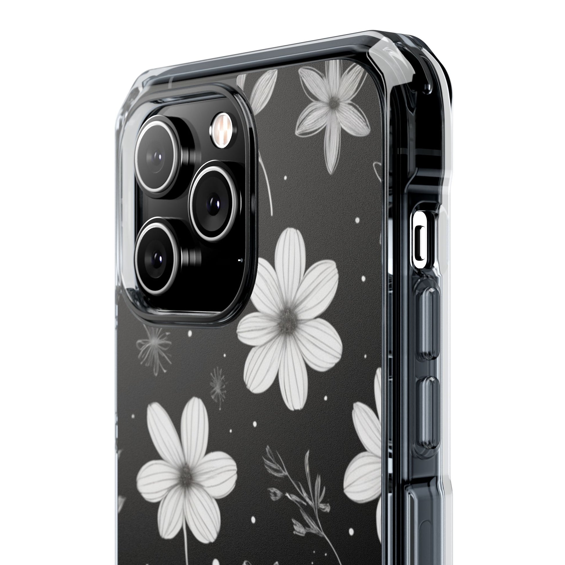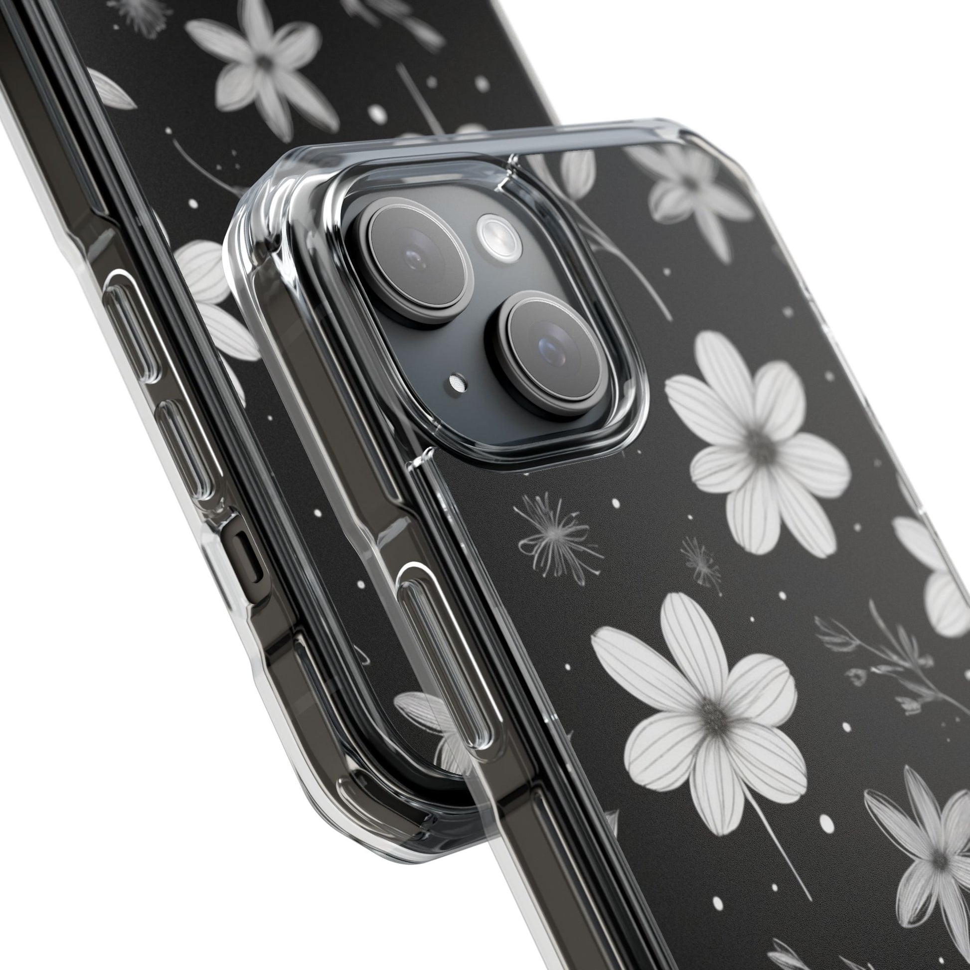 Chic Black and White Floral Print Magnetic Clear Impact Case for iPhone 16 15 14