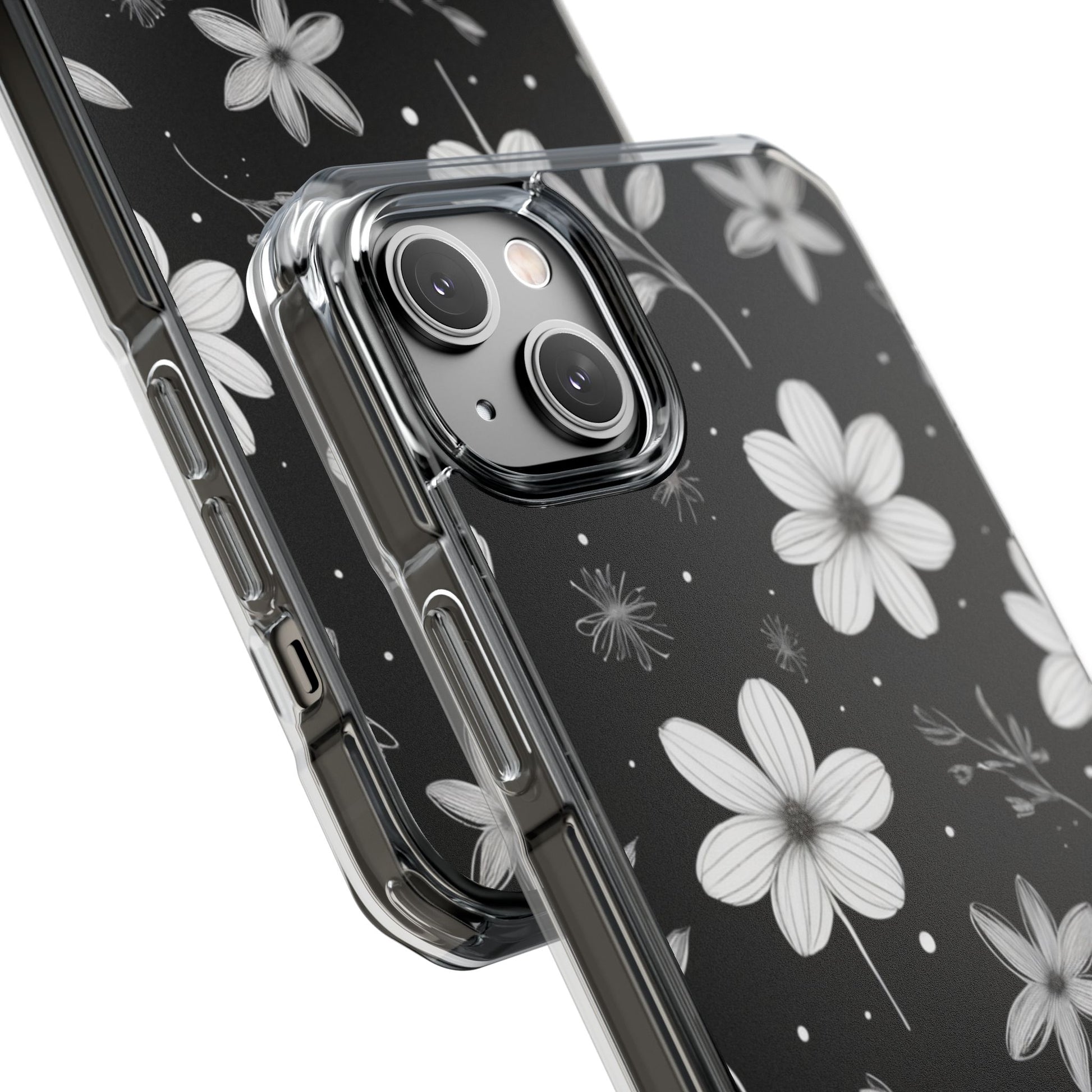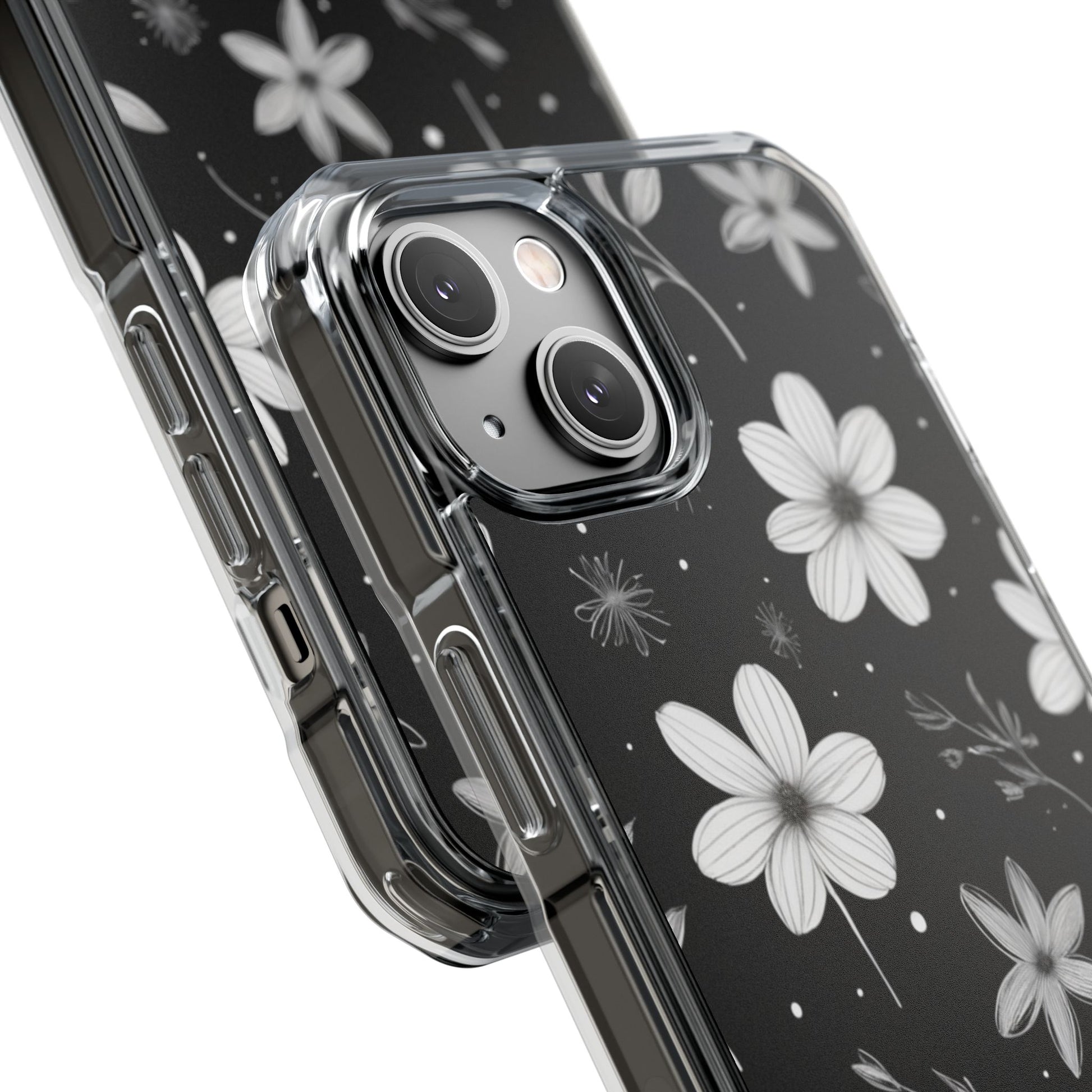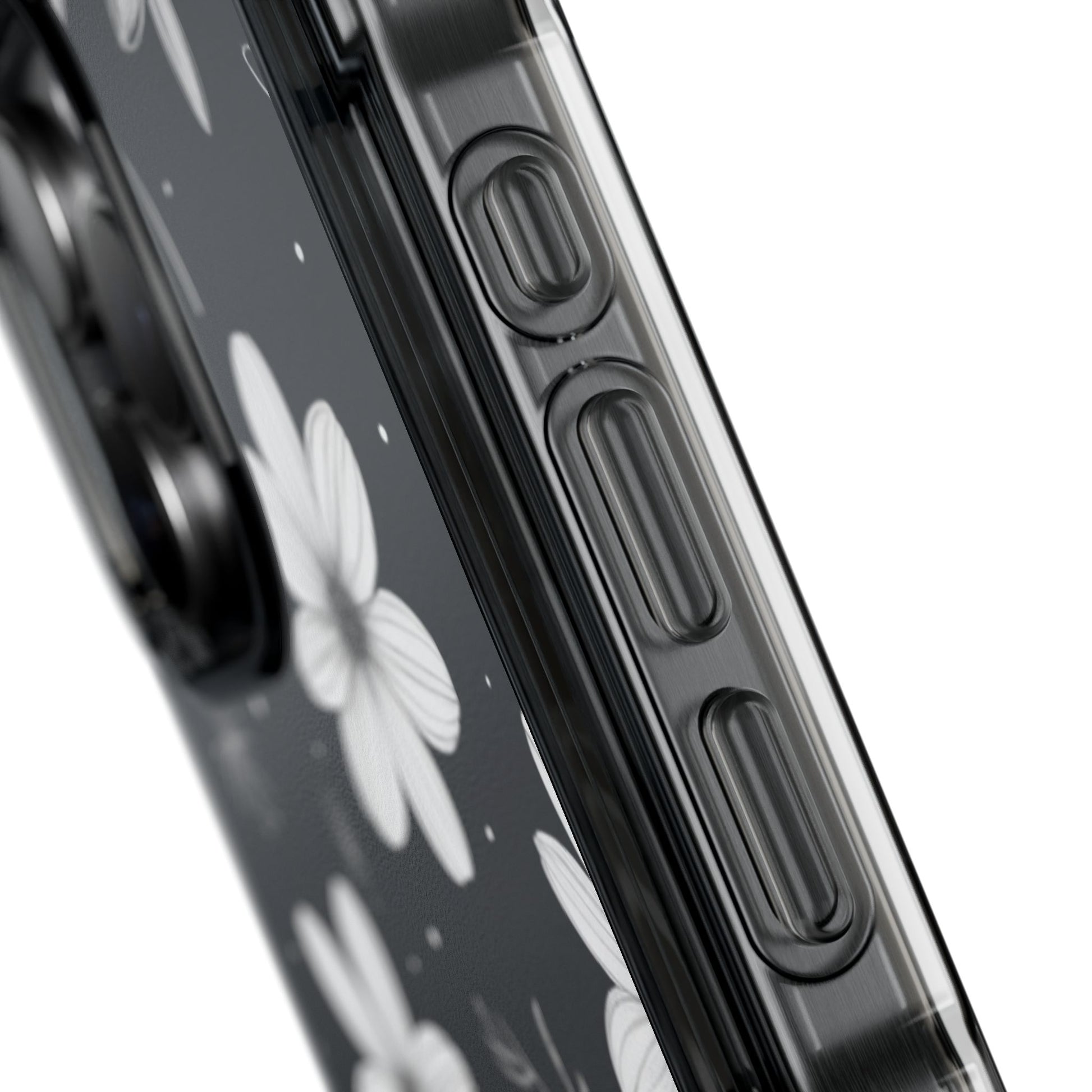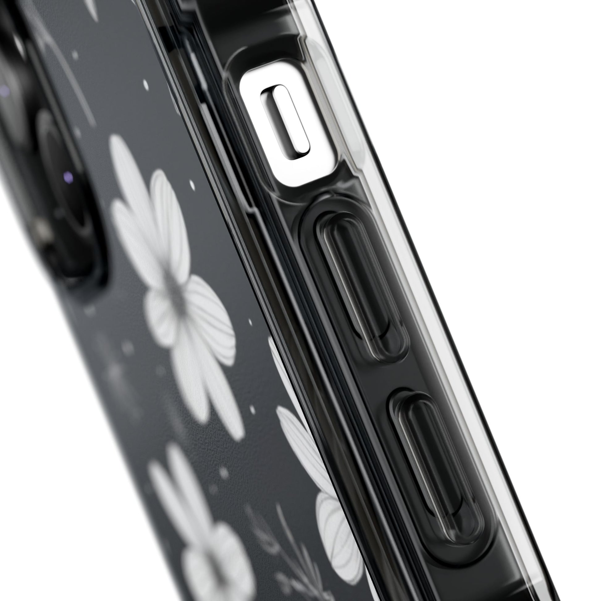Chic Black and White Floral Print Magnetic Clear Impact Case for iPhone 16 15 14