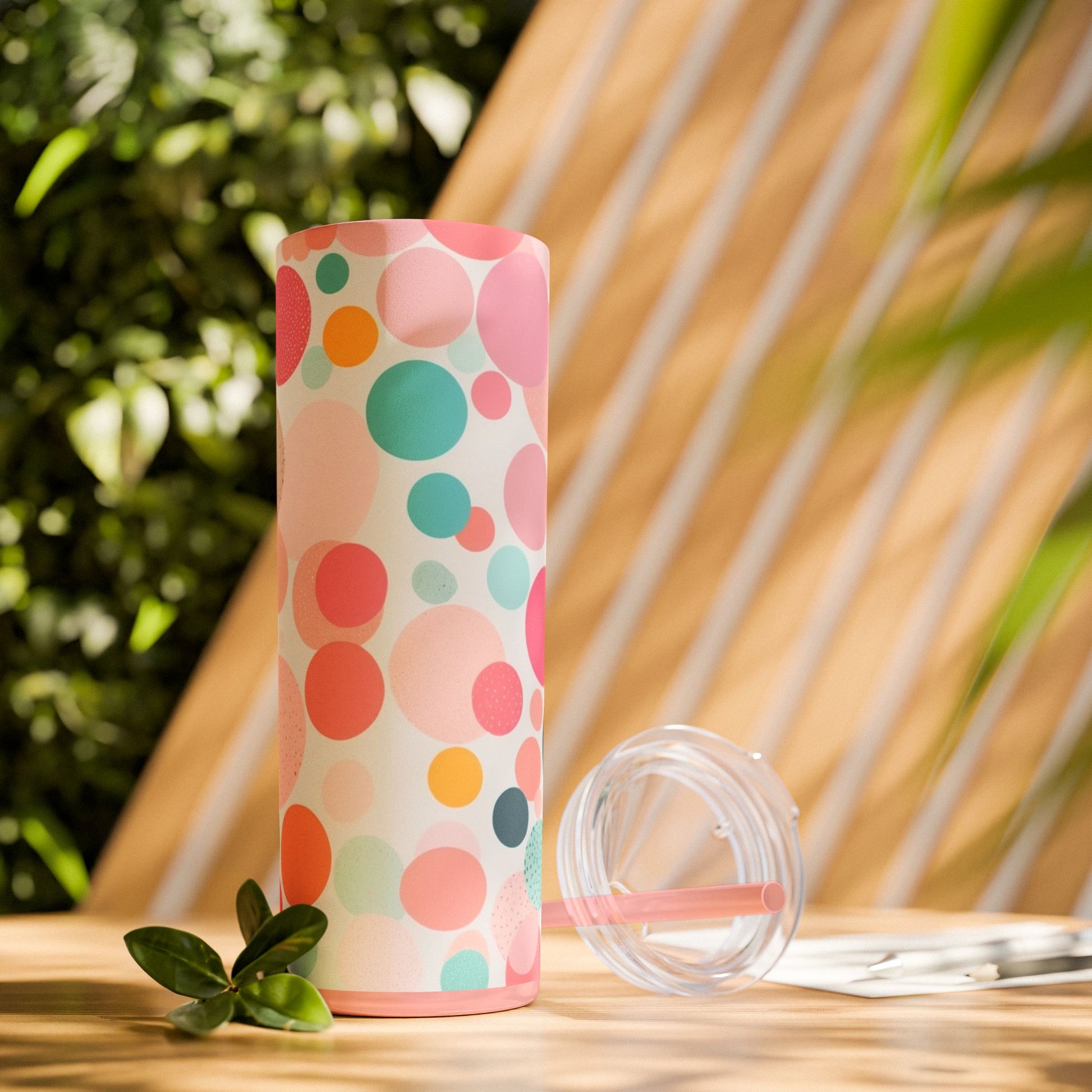 Colorful Polka Dot 20oz Skinny Tumbler with Straw - Fun & Stylish Drinkware
