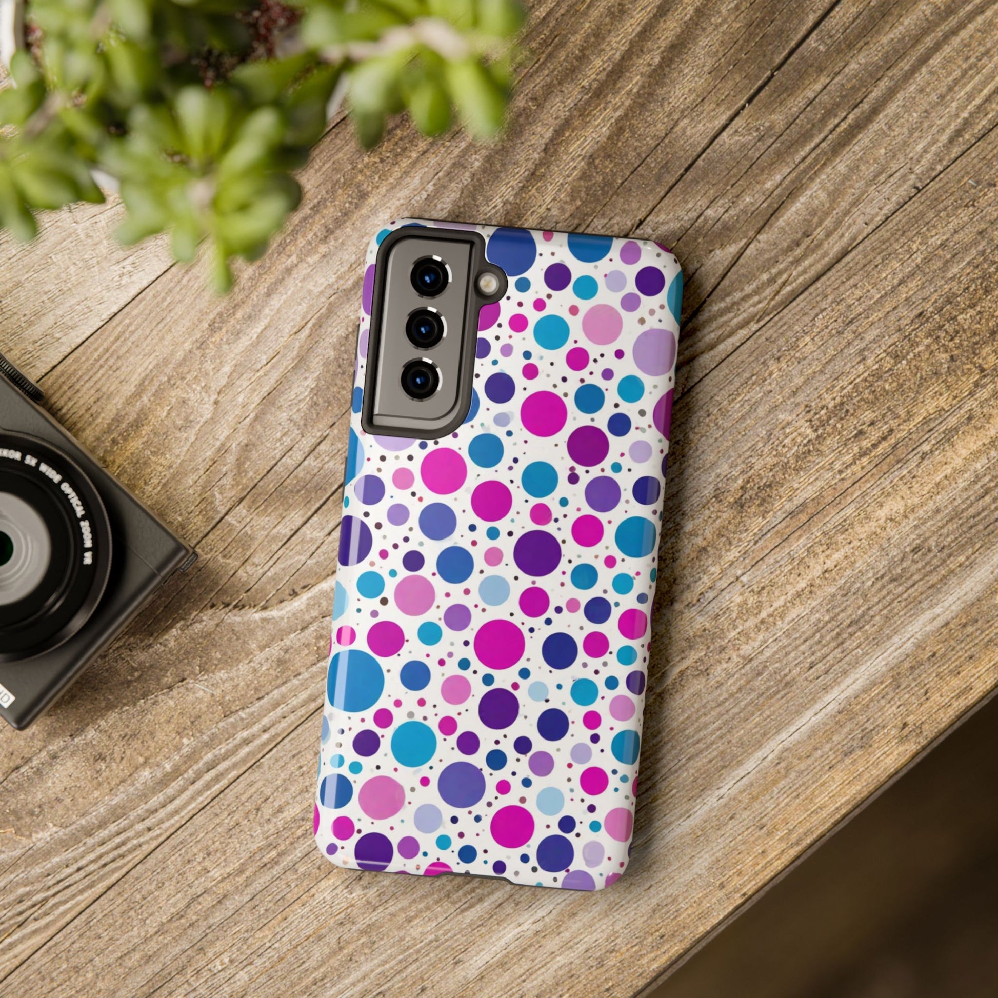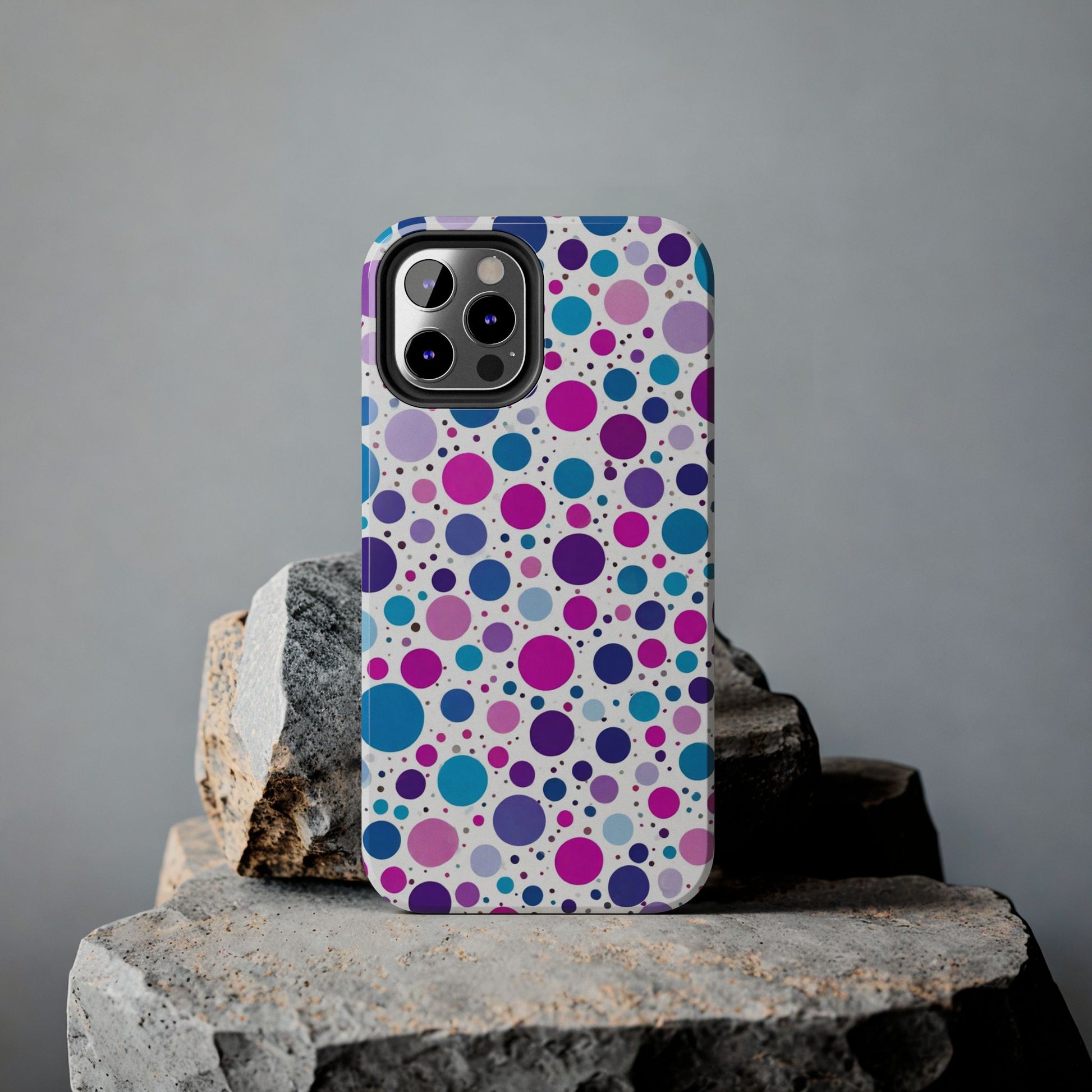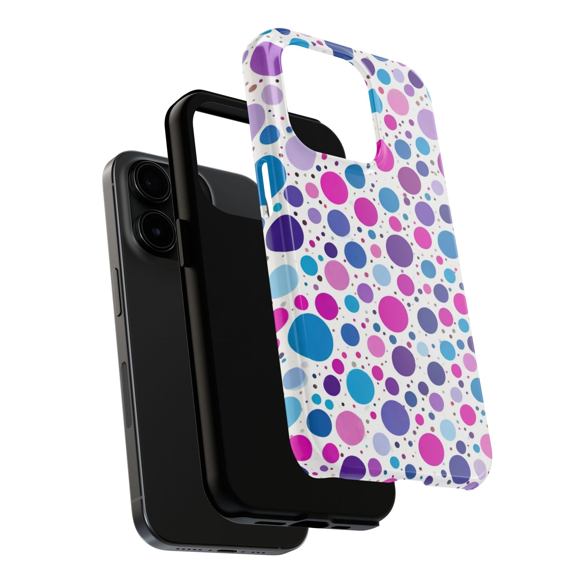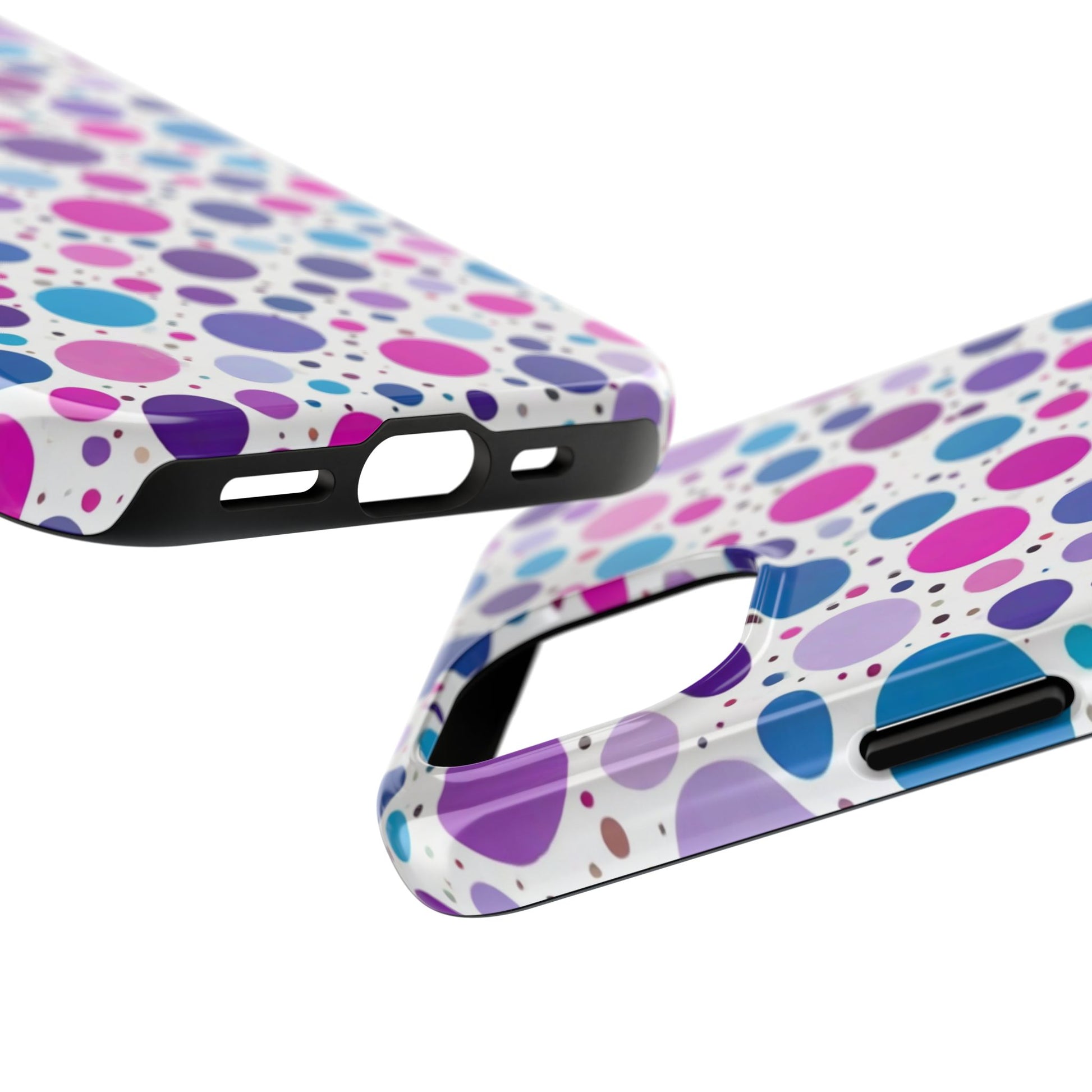 Add a vibrant touch to your phone with this colorful polka dot tough phone case. Made with high-quality materials, it provides excellent protection against impacts and scratches. Perfect for those who want both style and durability in their phone accessories. Ideal for adding a pop of color to your everyday life or as a thoughtful gift for someone special. Great for birthdays, holidays, or any occasion where you want to give a practical yet stylish present.
