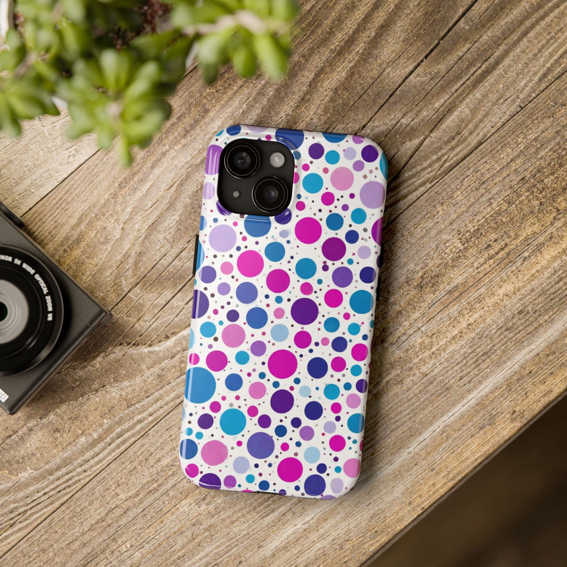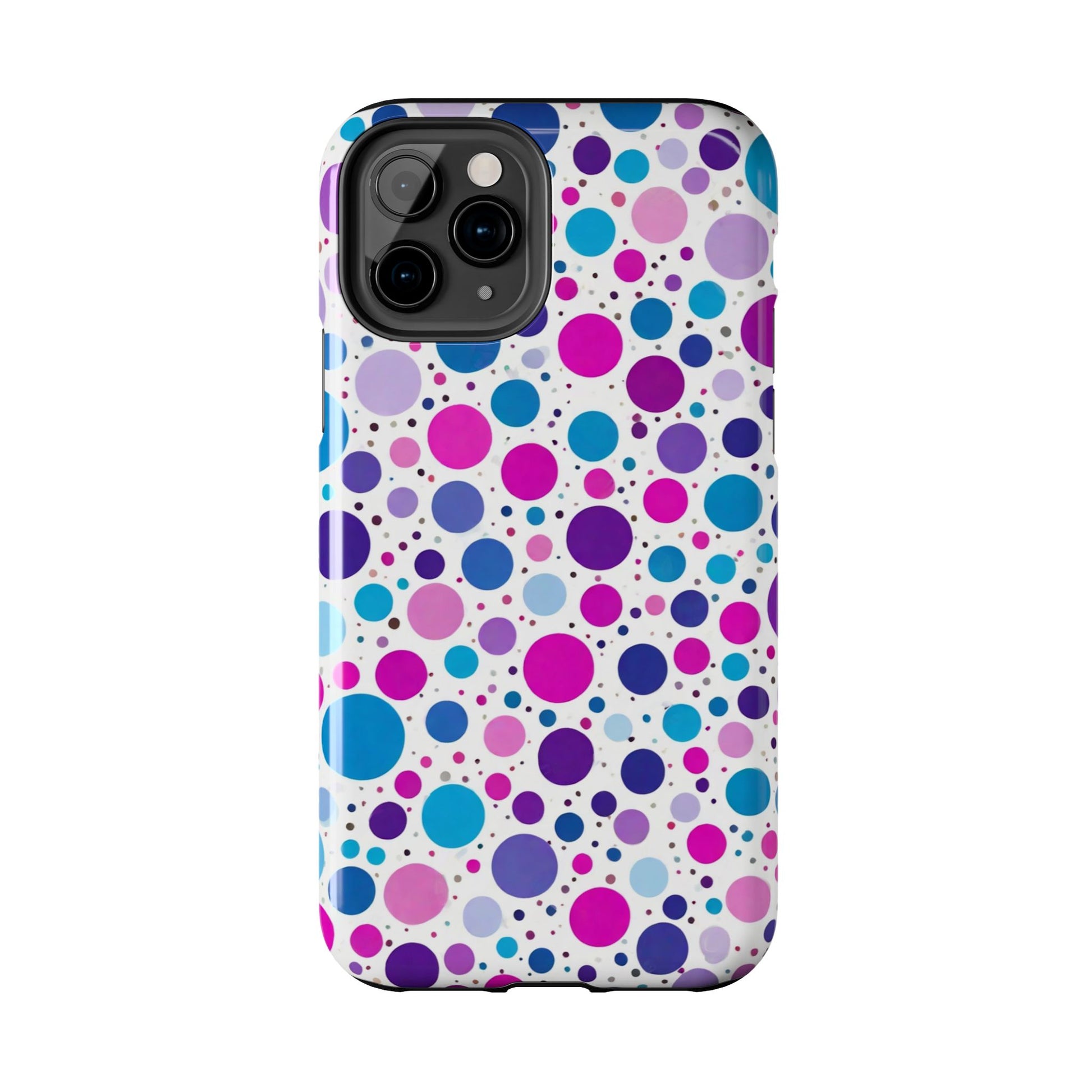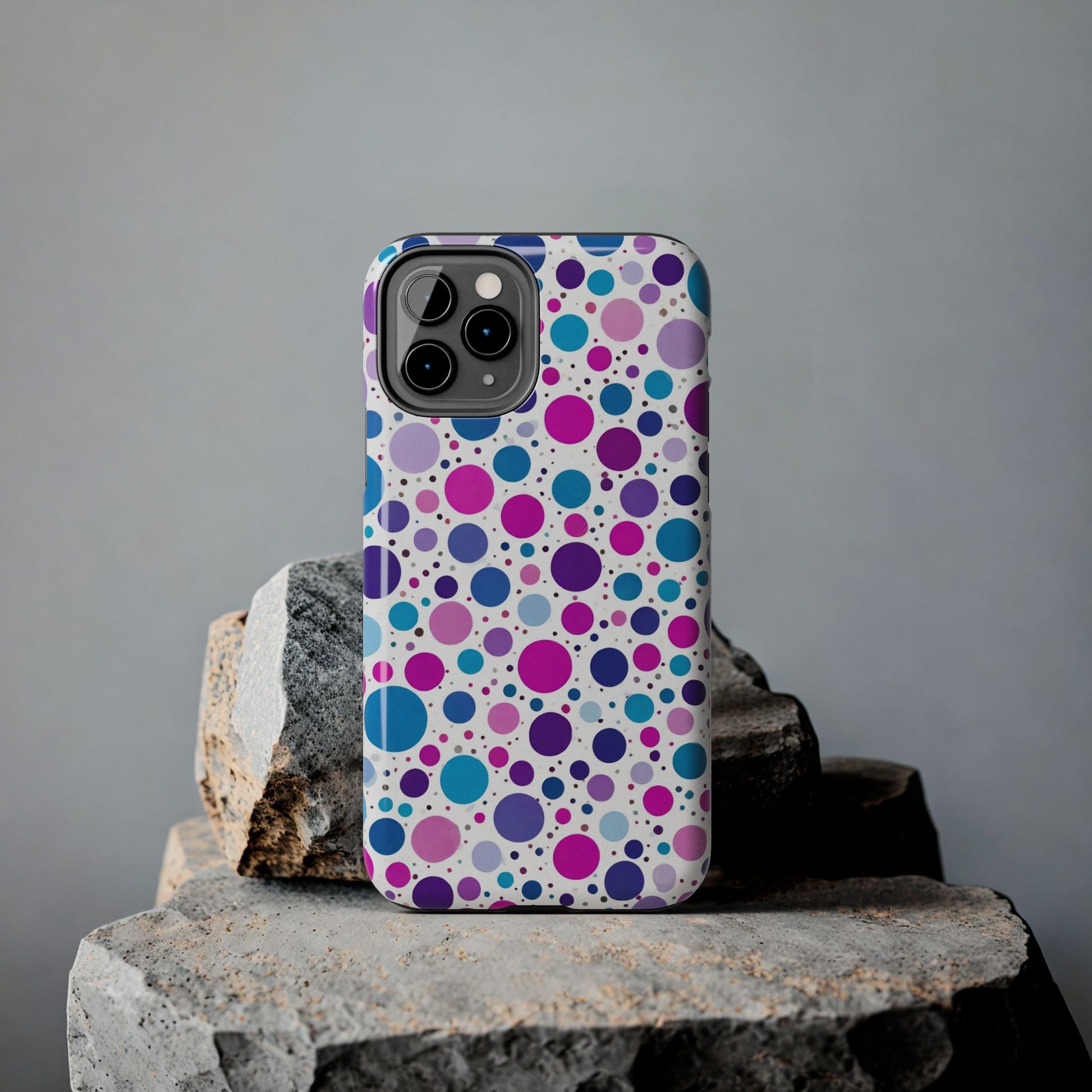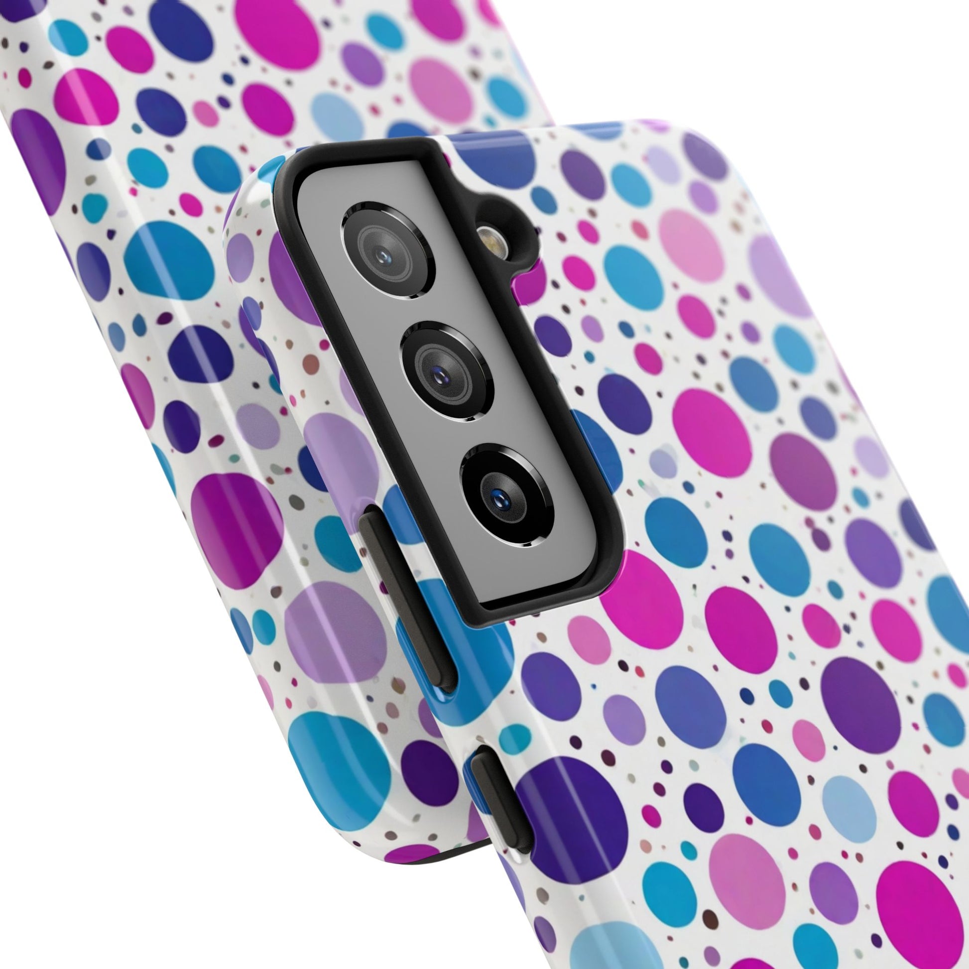 Add a vibrant touch to your phone with this colorful polka dot tough phone case. Made with high-quality materials, it provides excellent protection against impacts and scratches. Perfect for those who want both style and durability in their phone accessories. Ideal for adding a pop of color to your everyday life or as a thoughtful gift for someone special. Great for birthdays, holidays, or any occasion where you want to give a practical yet stylish present.