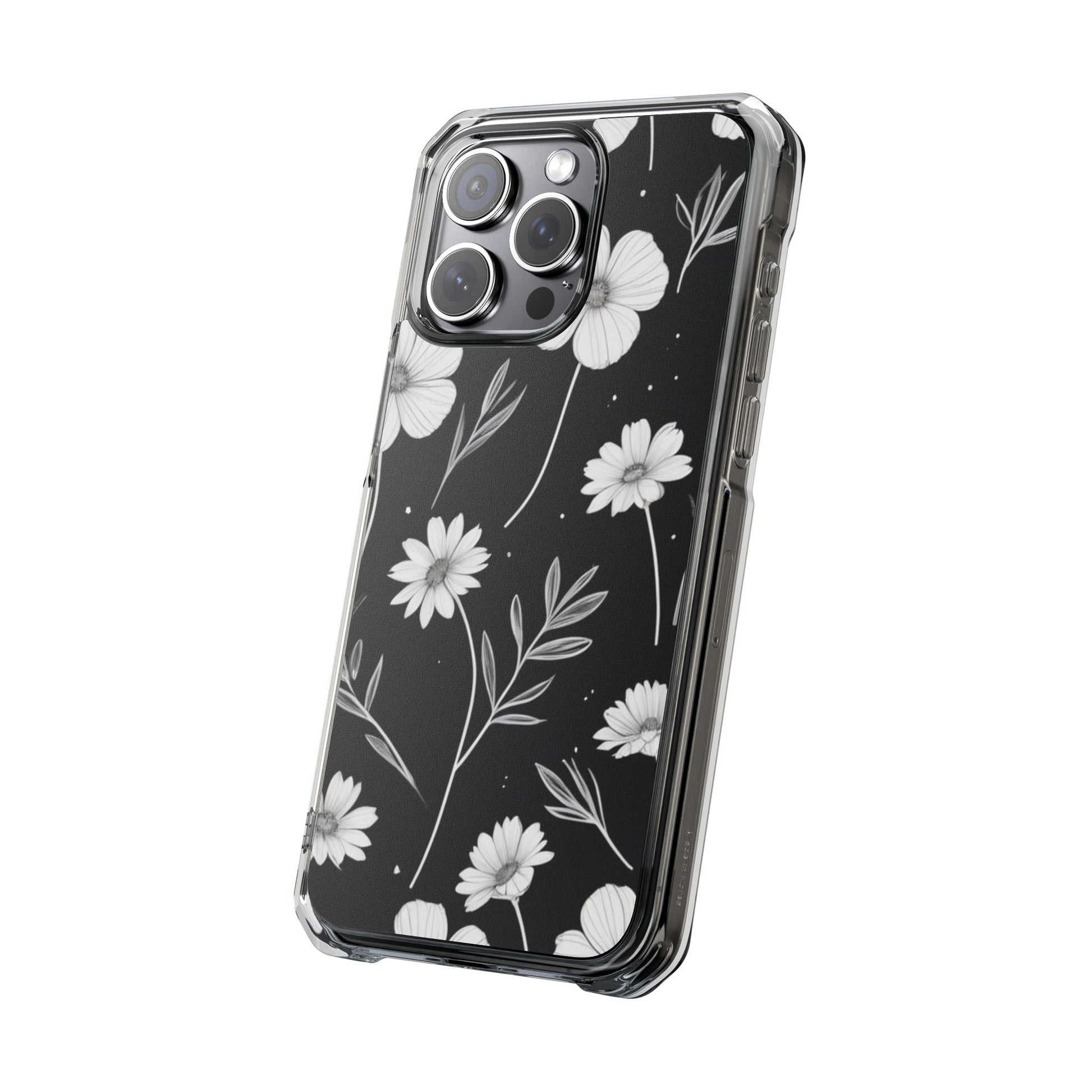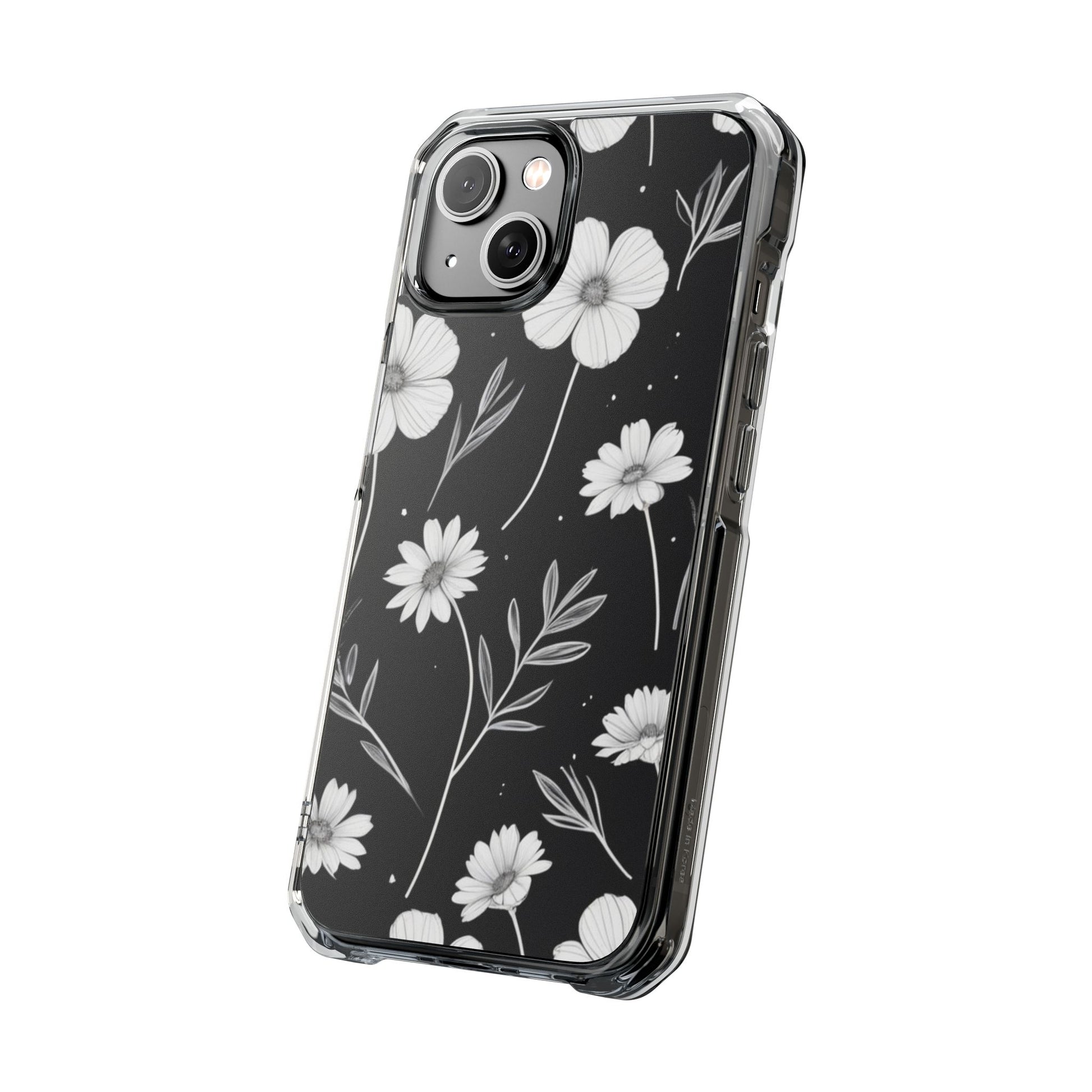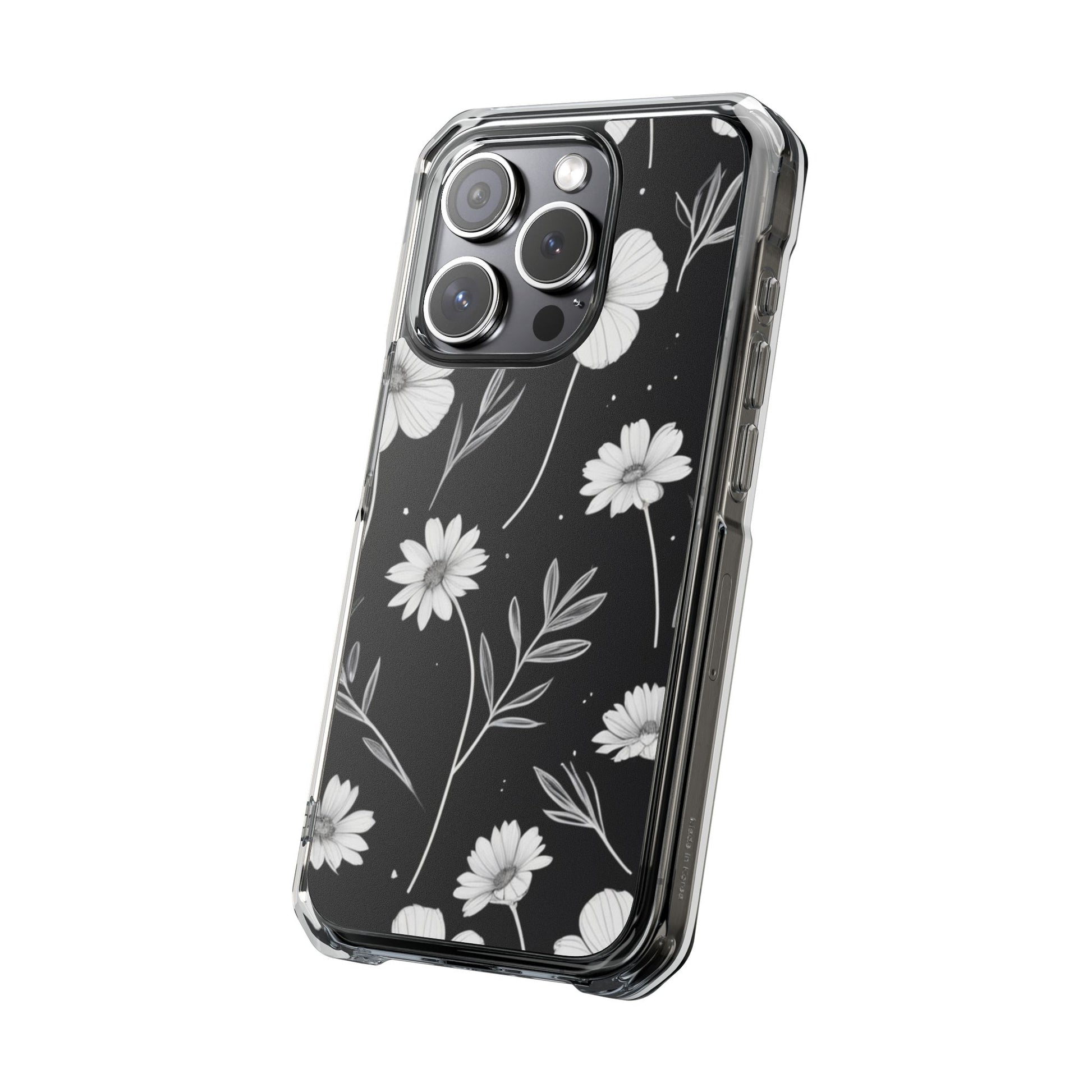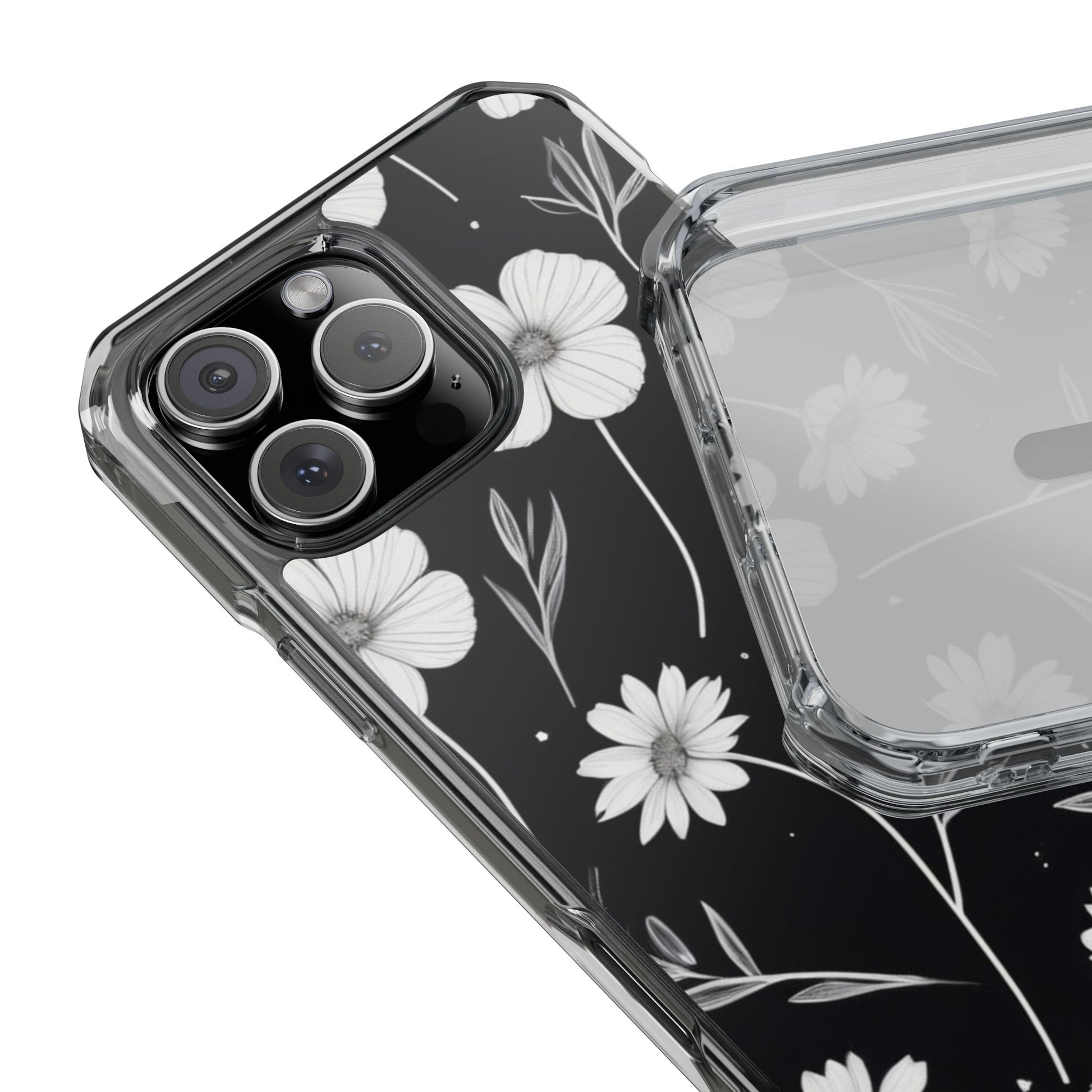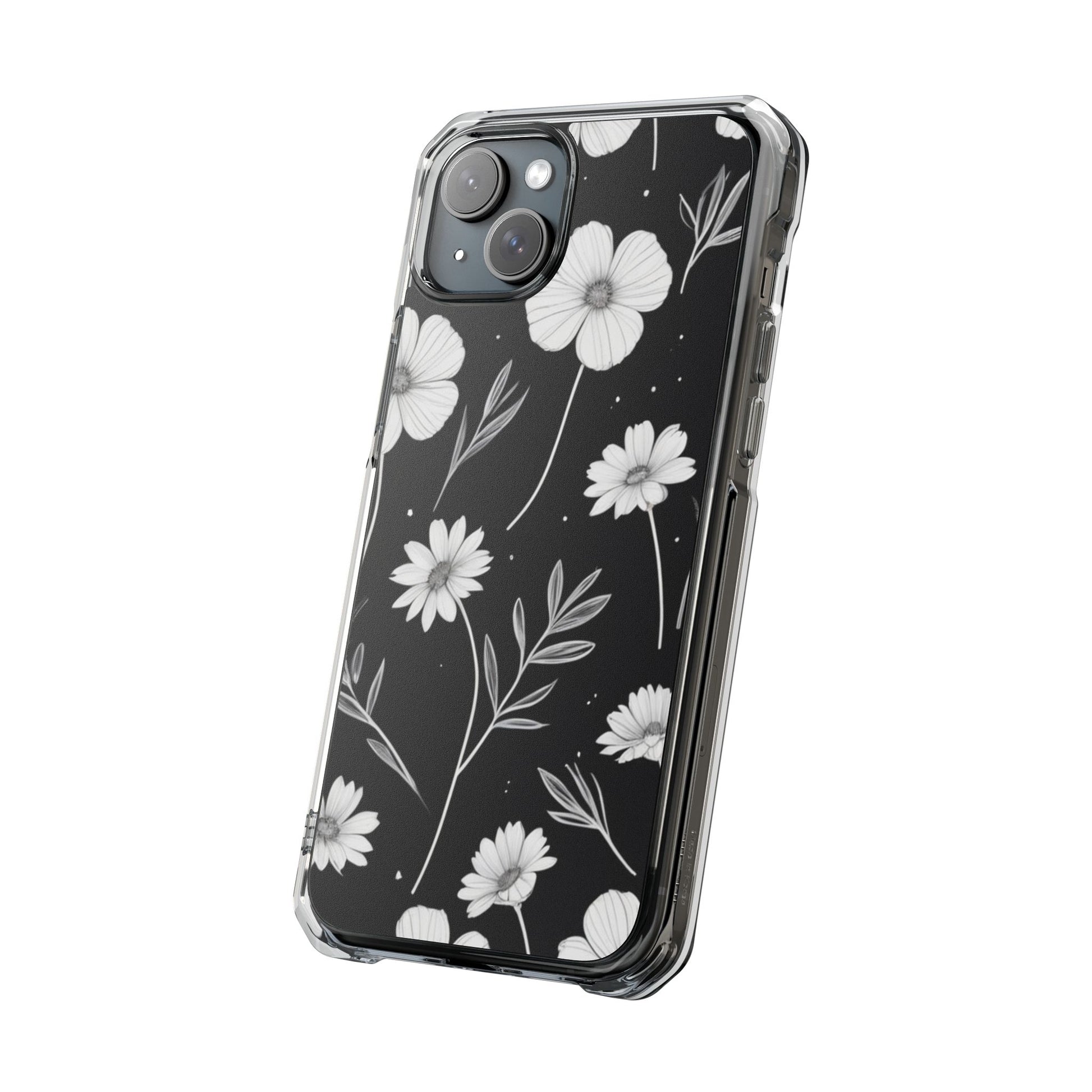 This elegant black and white floral magnetic clear impact phone case provides a subtle and stylish way to protect your smartphone. Perfect for those who appreciate elegant and sophisticated accessories. Ideal for formal events, daily use, and as a gift for birthdays or special occasions.