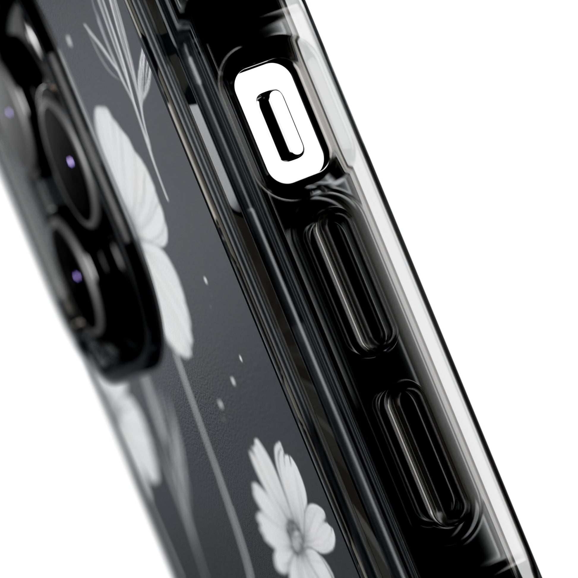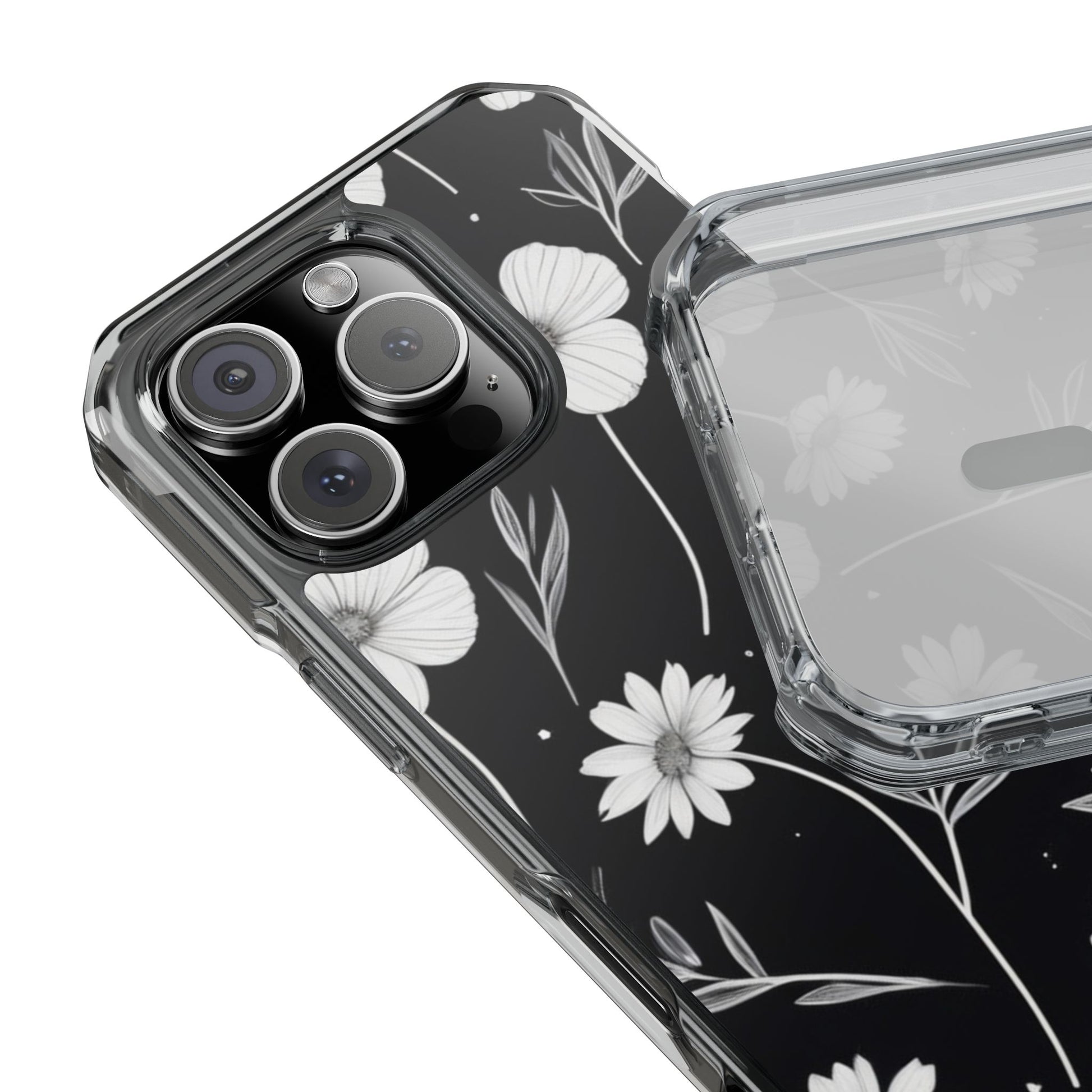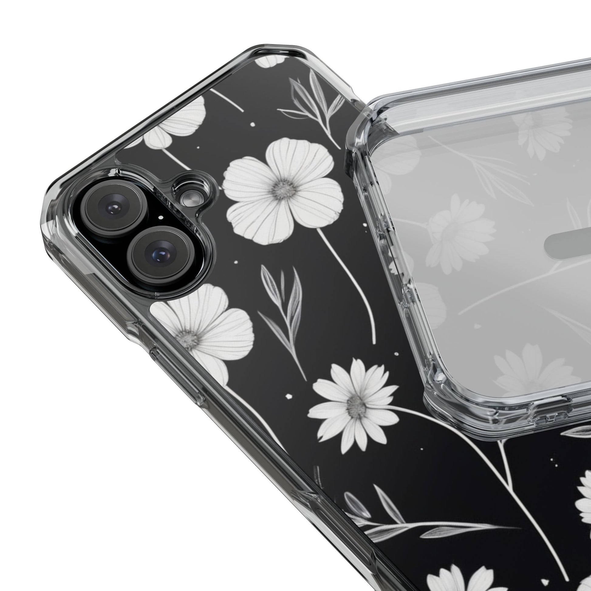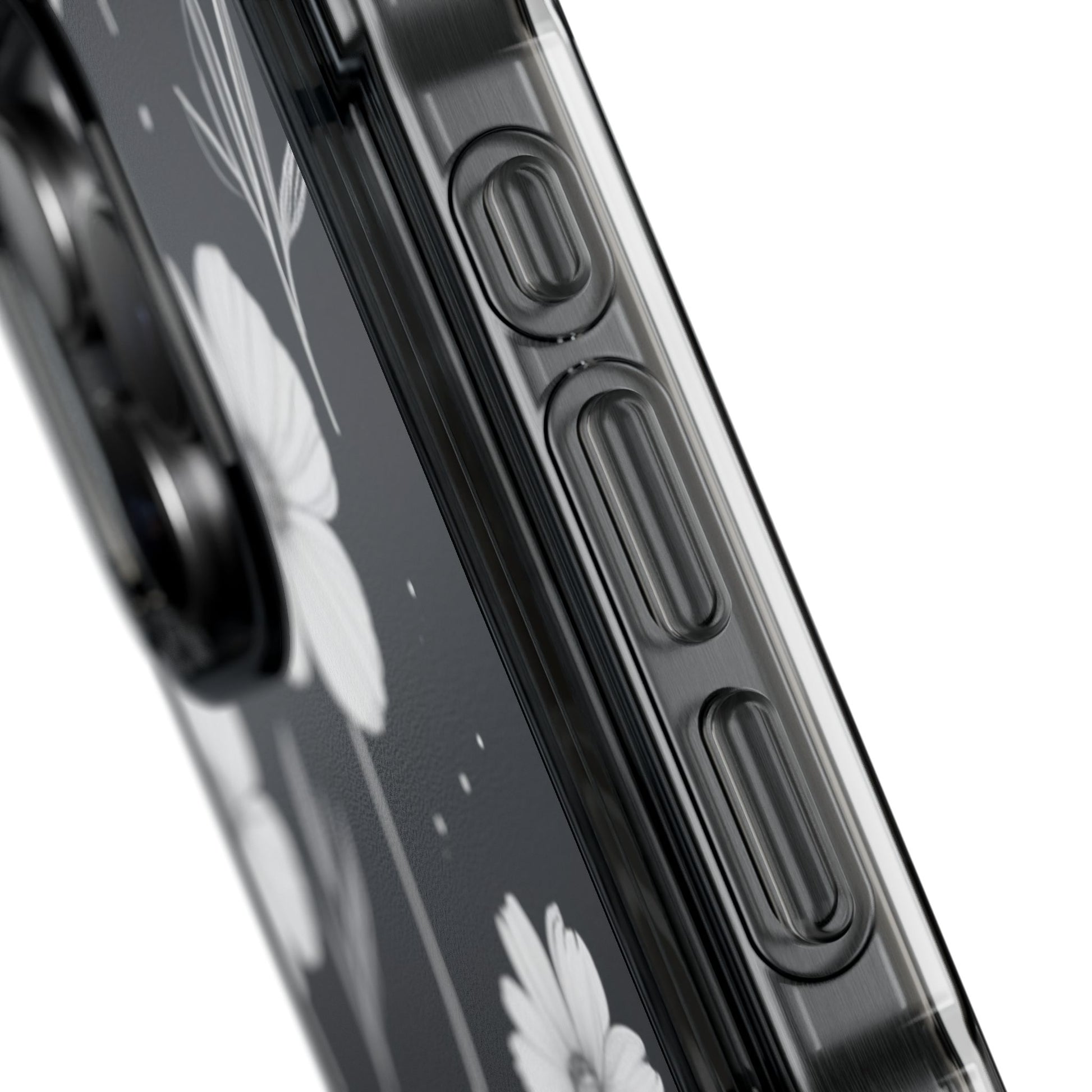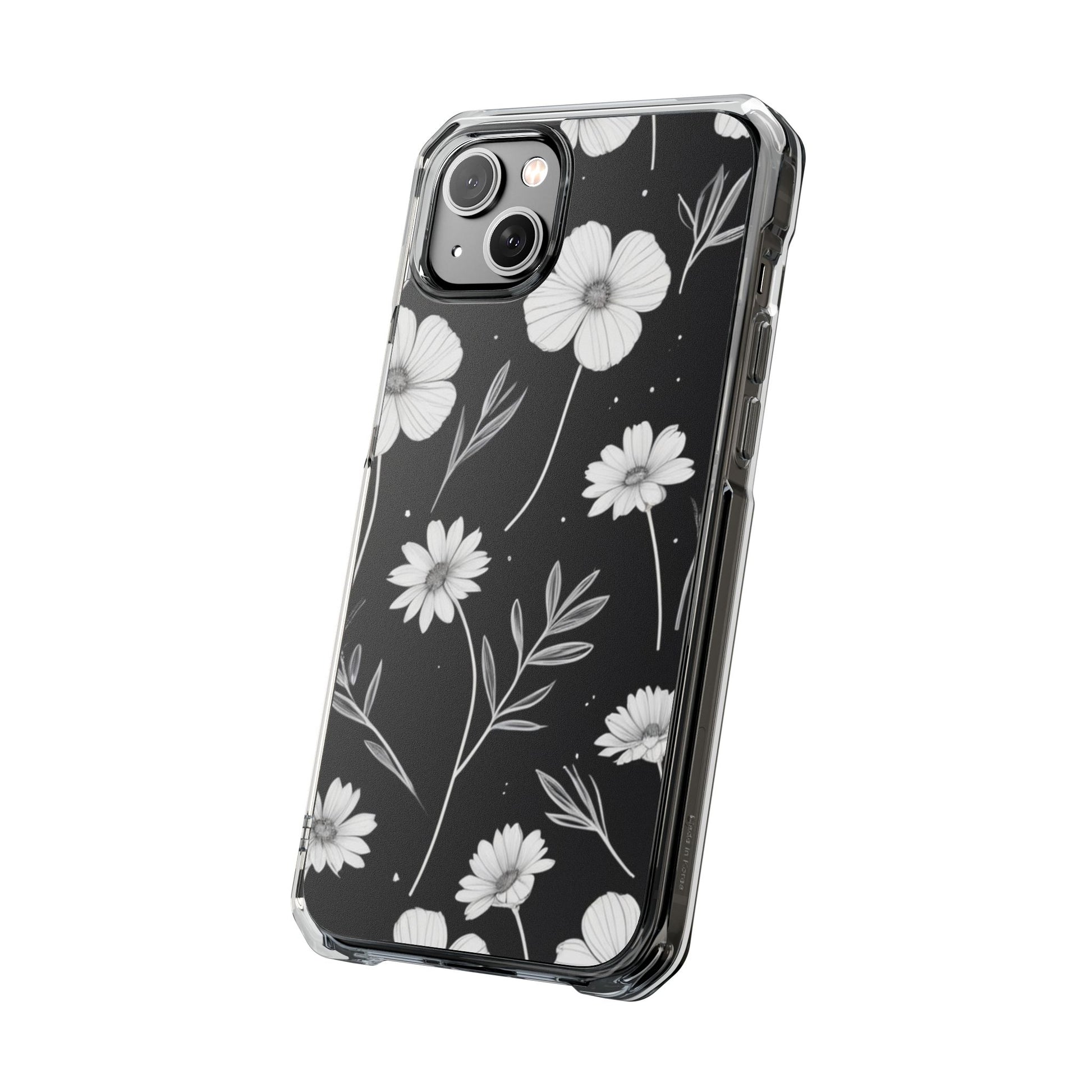 This elegant black and white floral magnetic clear impact phone case provides a subtle and stylish way to protect your smartphone. Perfect for those who appreciate elegant and sophisticated accessories. Ideal for formal events, daily use, and as a gift for birthdays or special occasions.