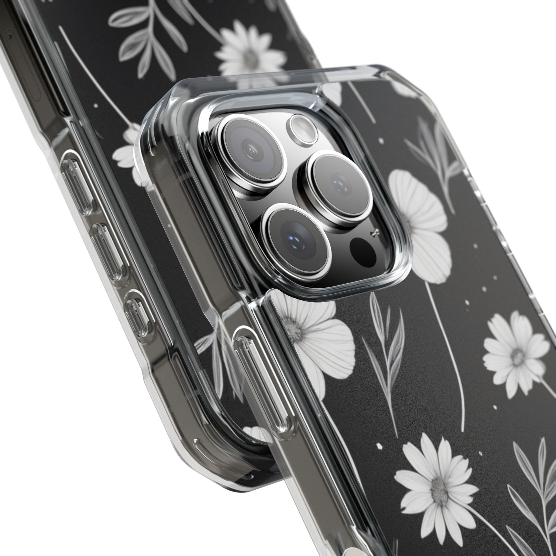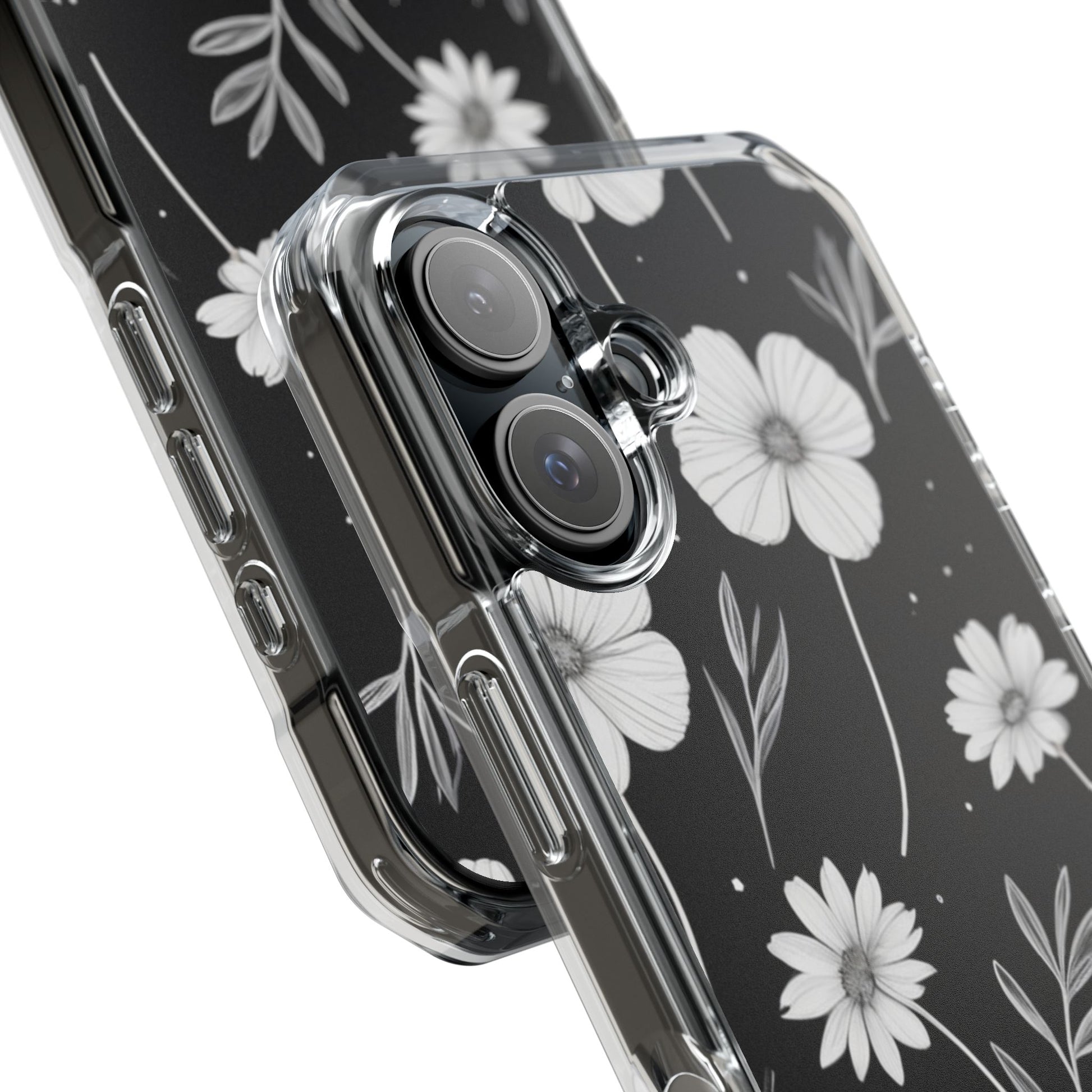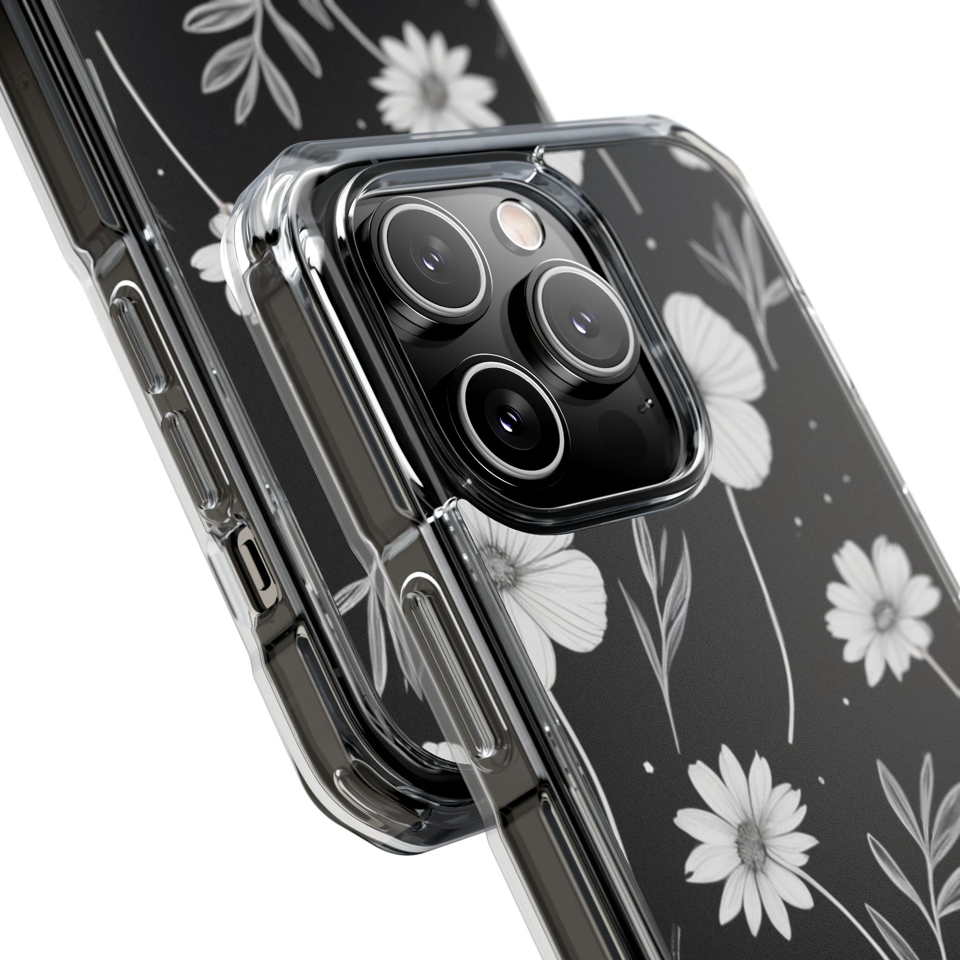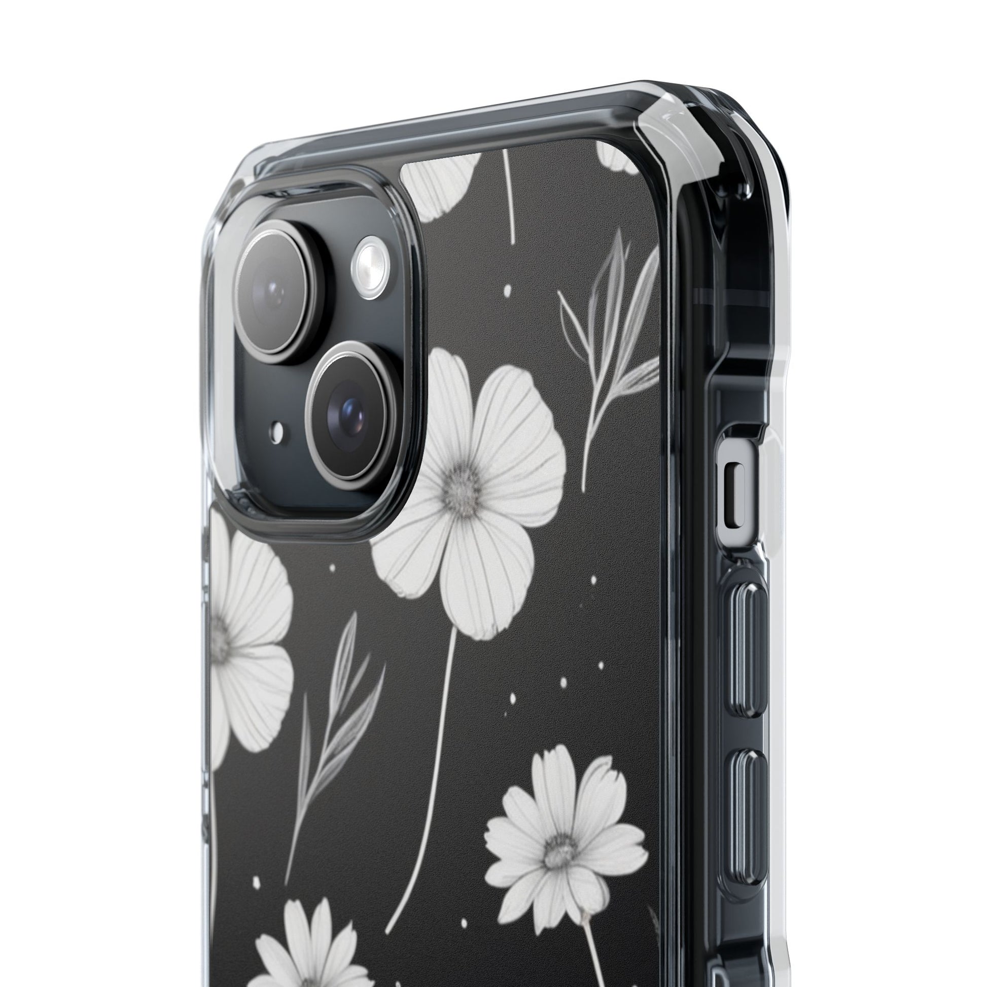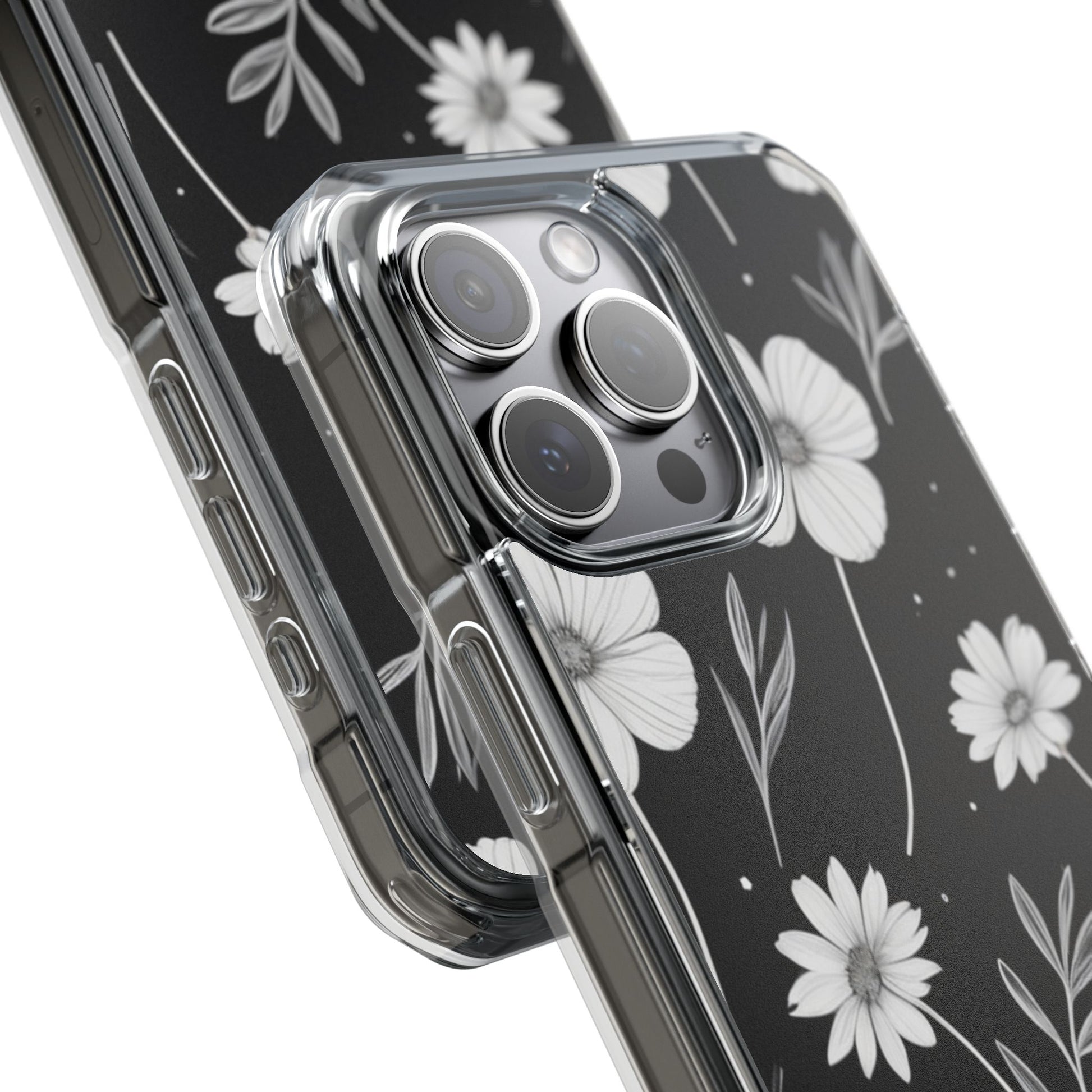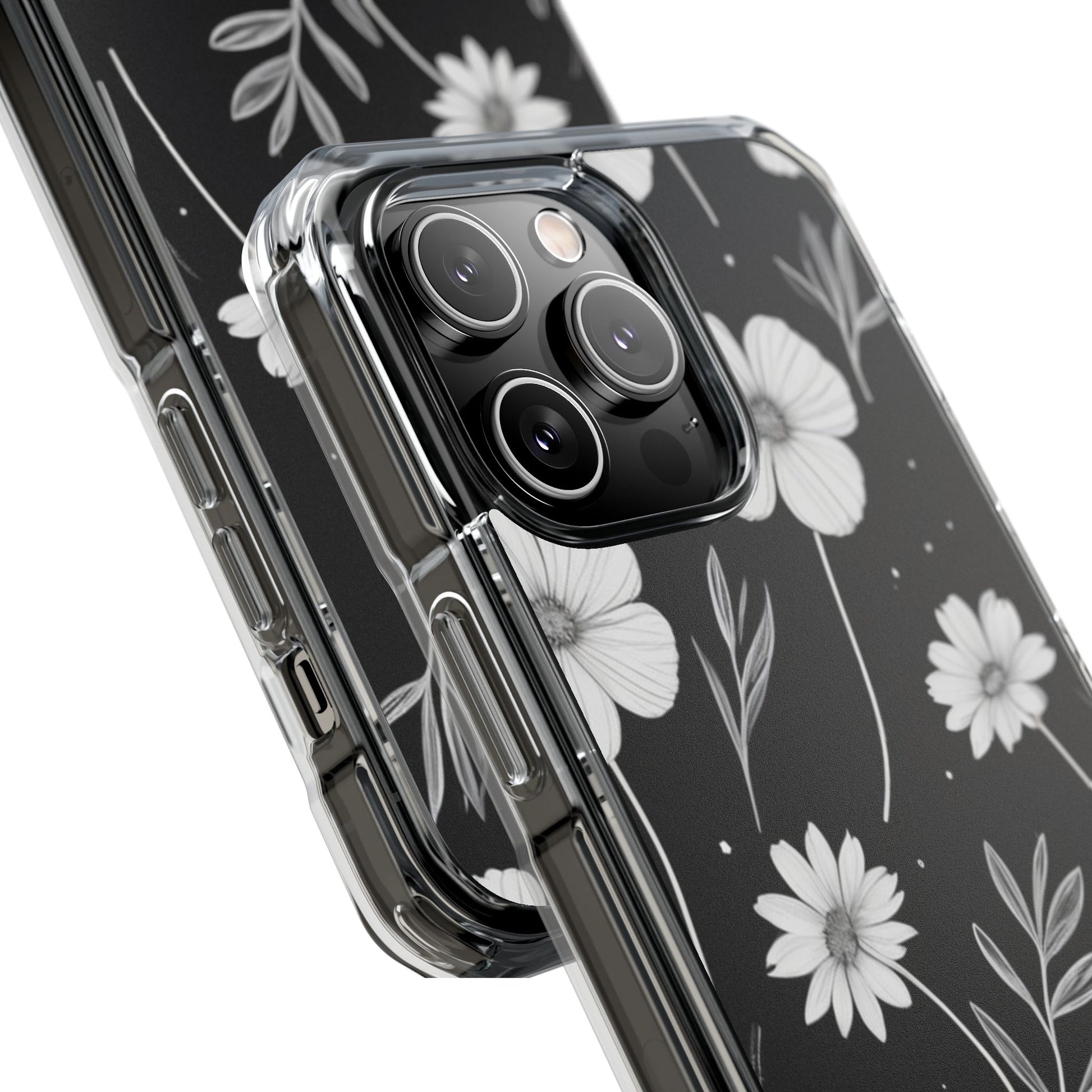 This elegant black and white floral magnetic clear impact phone case provides a subtle and stylish way to protect your smartphone. Perfect for those who appreciate elegant and sophisticated accessories. Ideal for formal events, daily use, and as a gift for birthdays or special occasions.