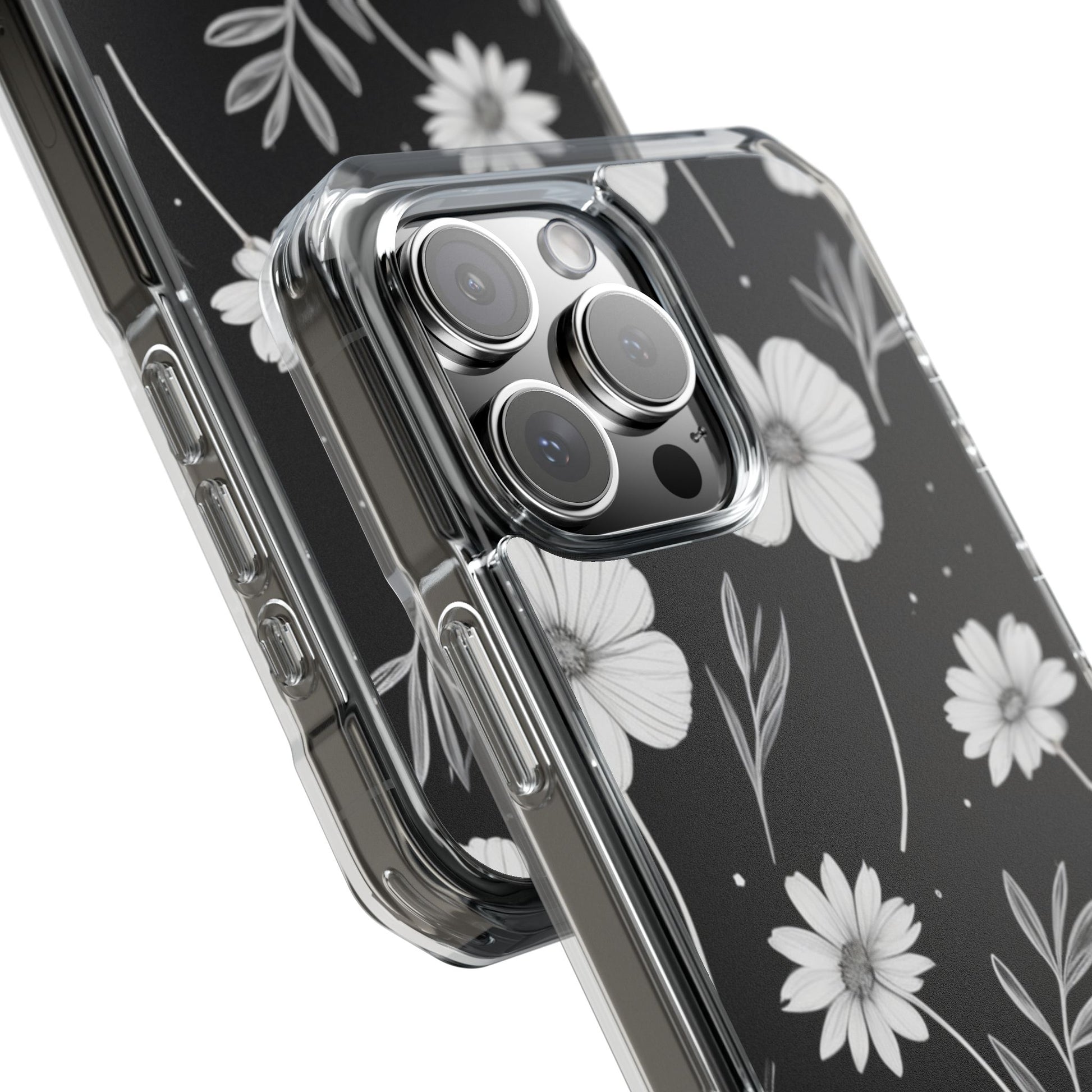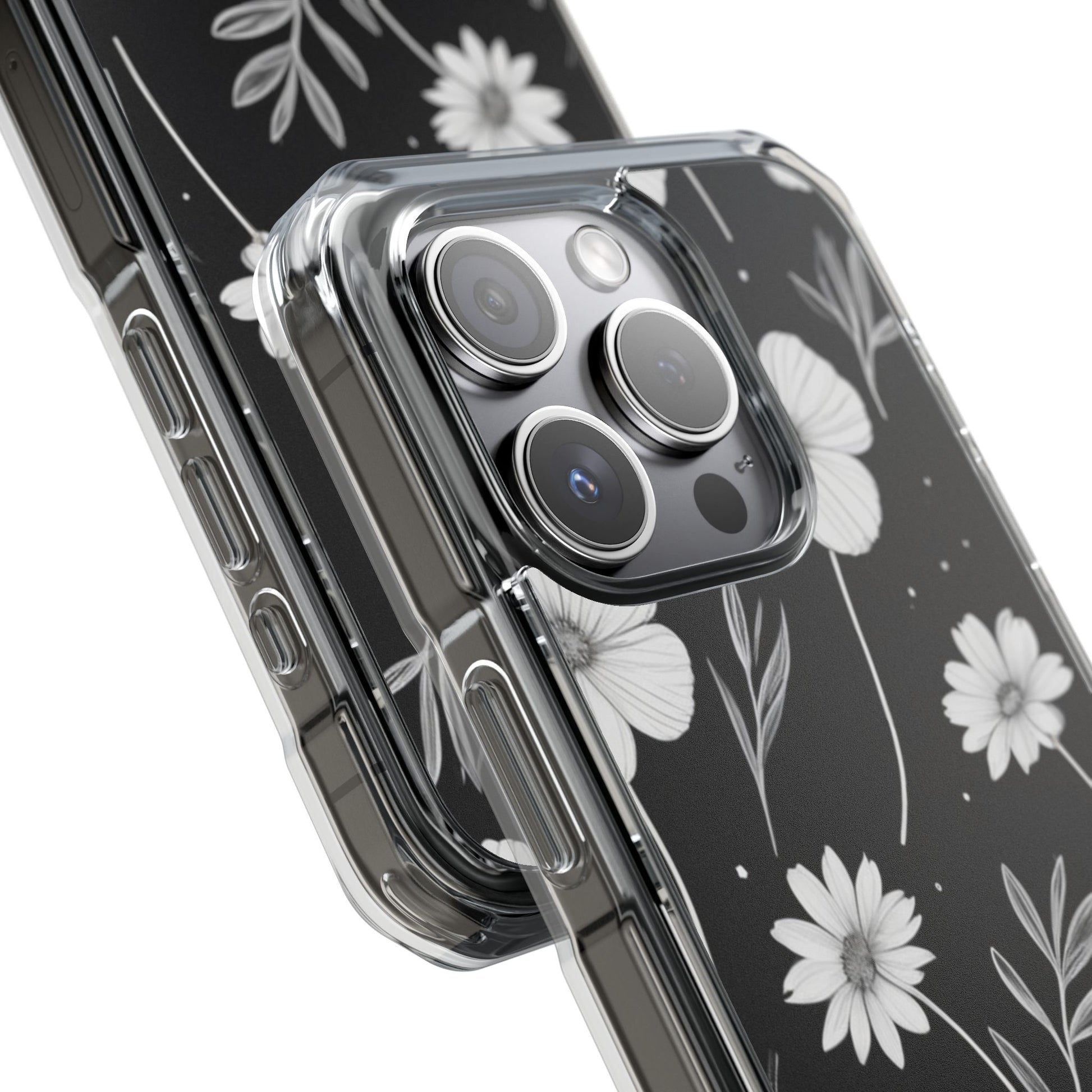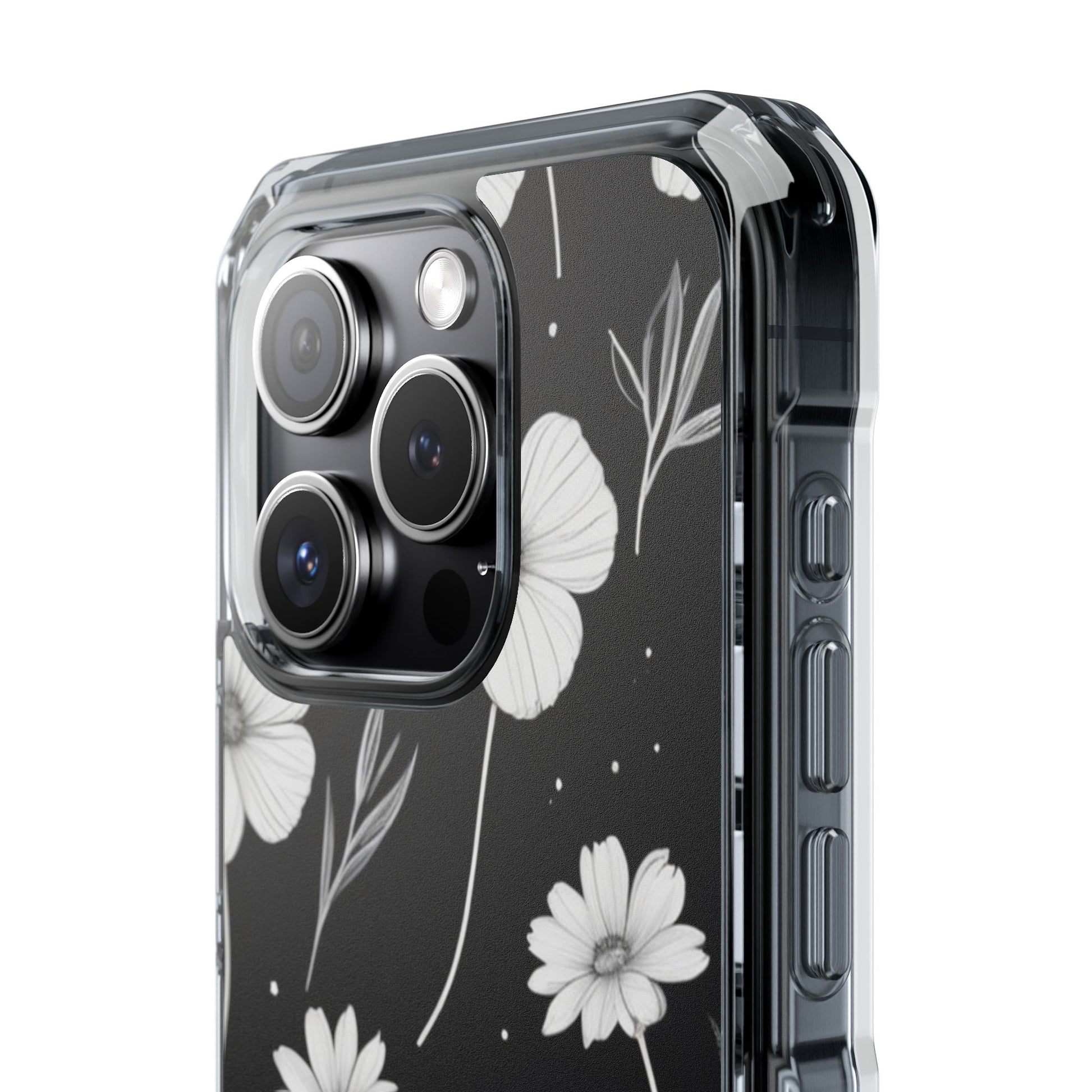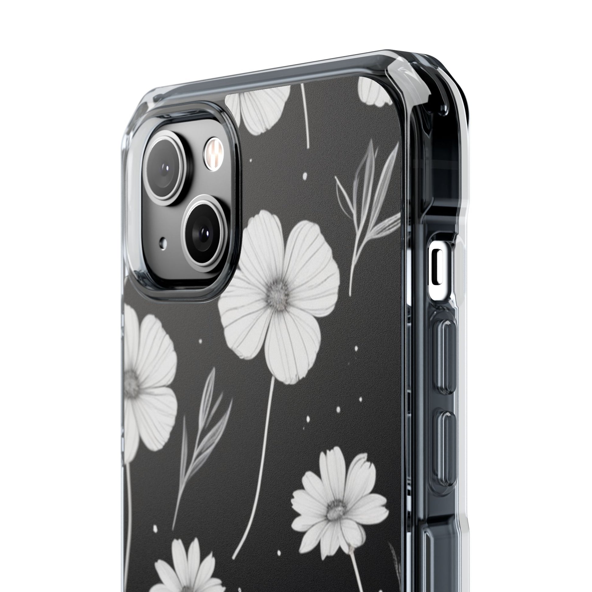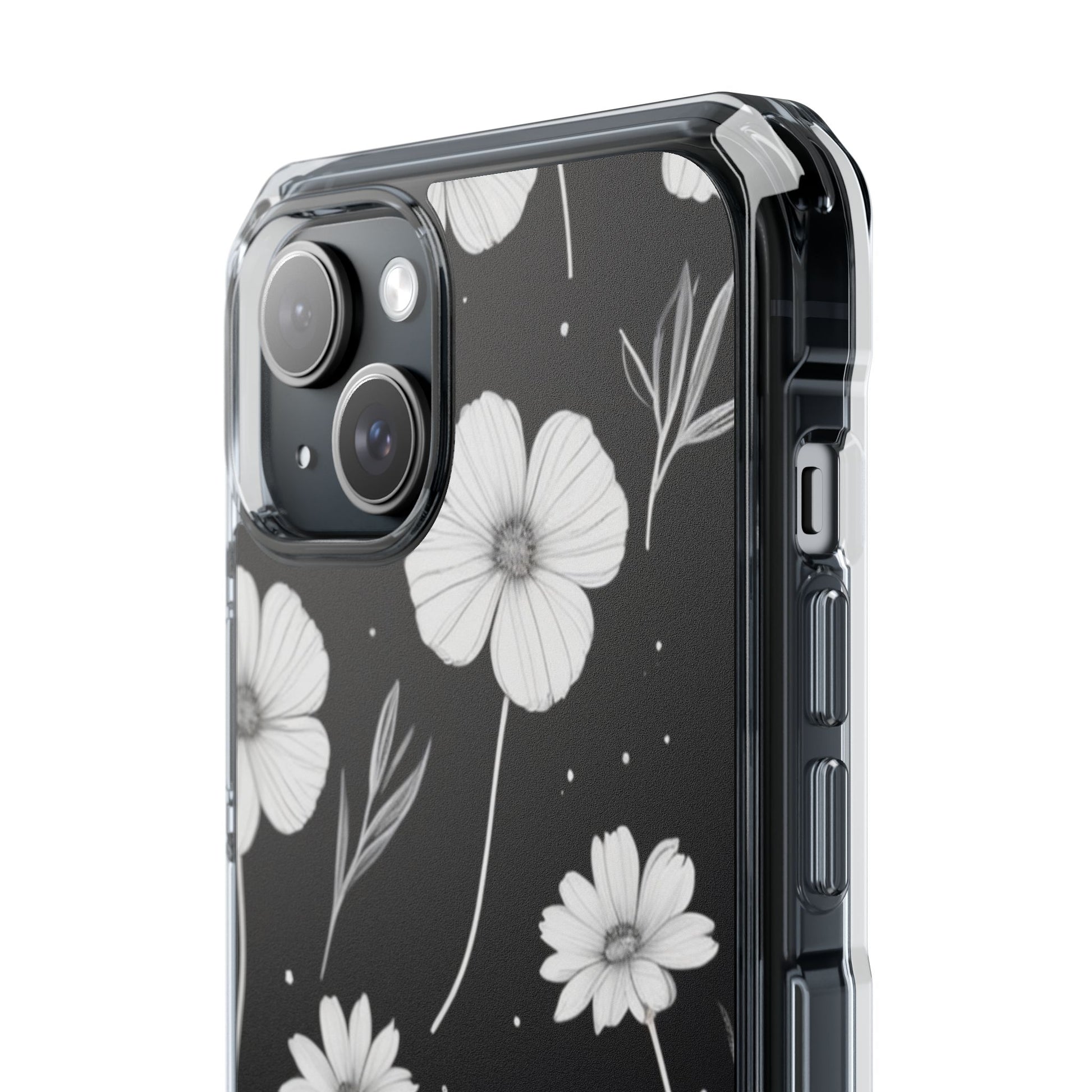 This elegant black and white floral magnetic clear impact phone case provides a subtle and stylish way to protect your smartphone. Perfect for those who appreciate elegant and sophisticated accessories. Ideal for formal events, daily use, and as a gift for birthdays or special occasions.