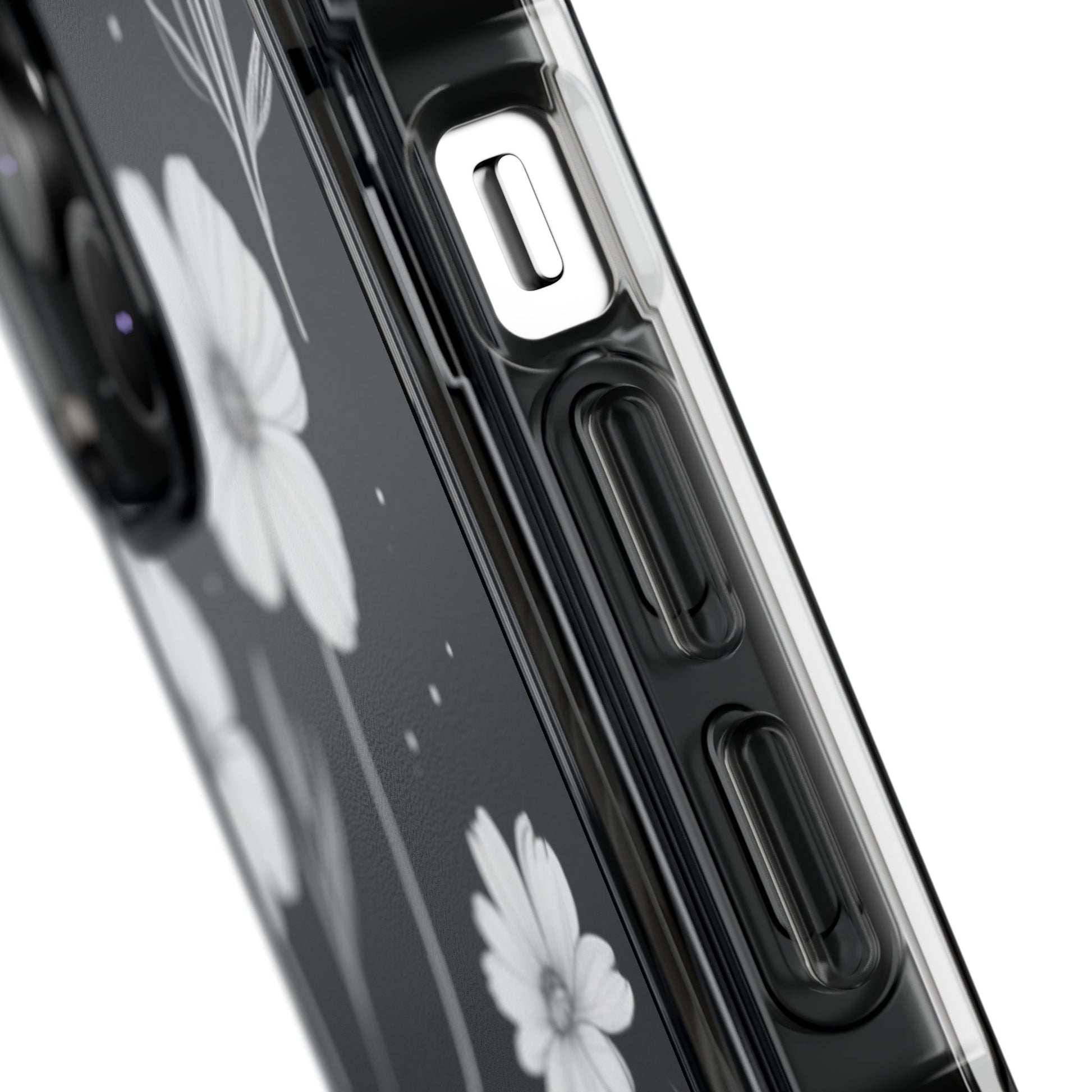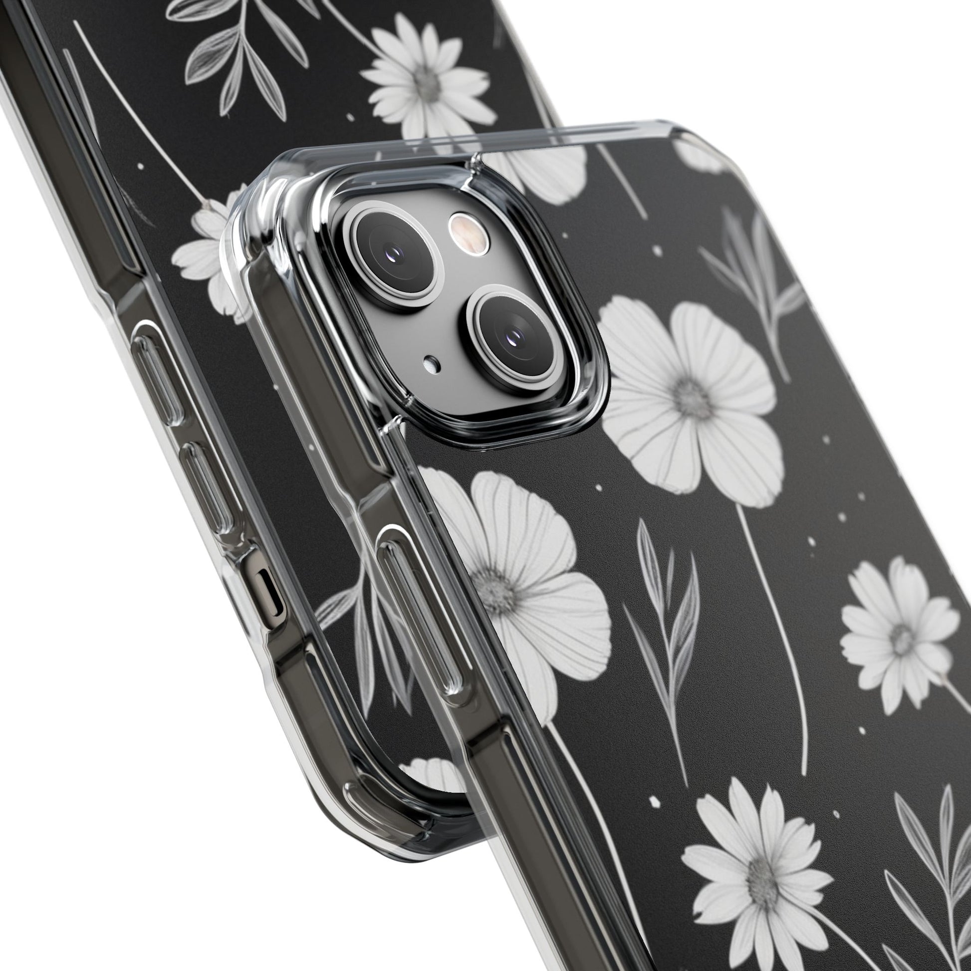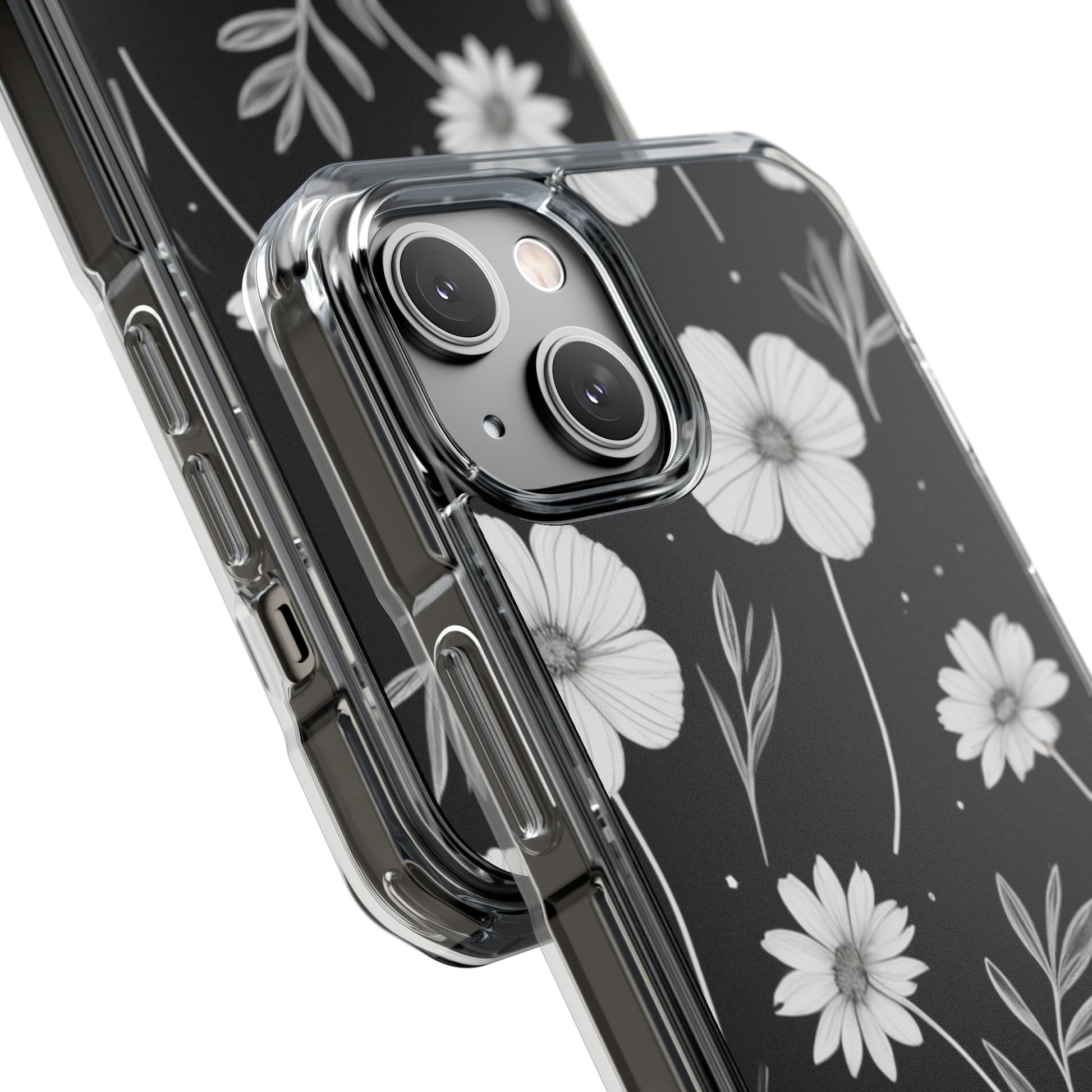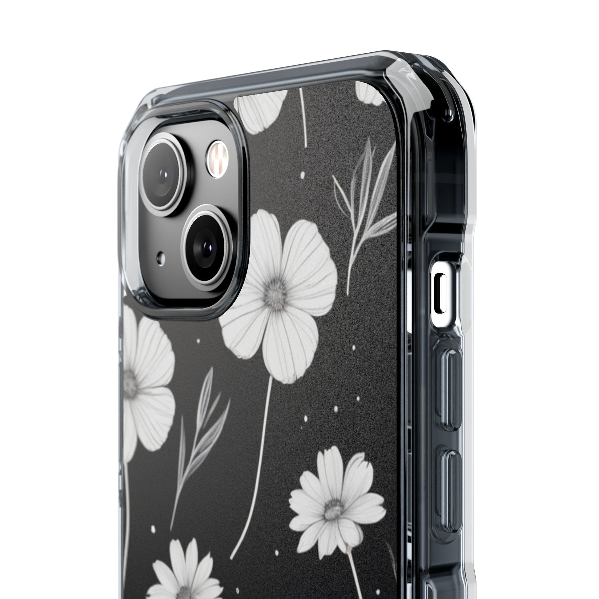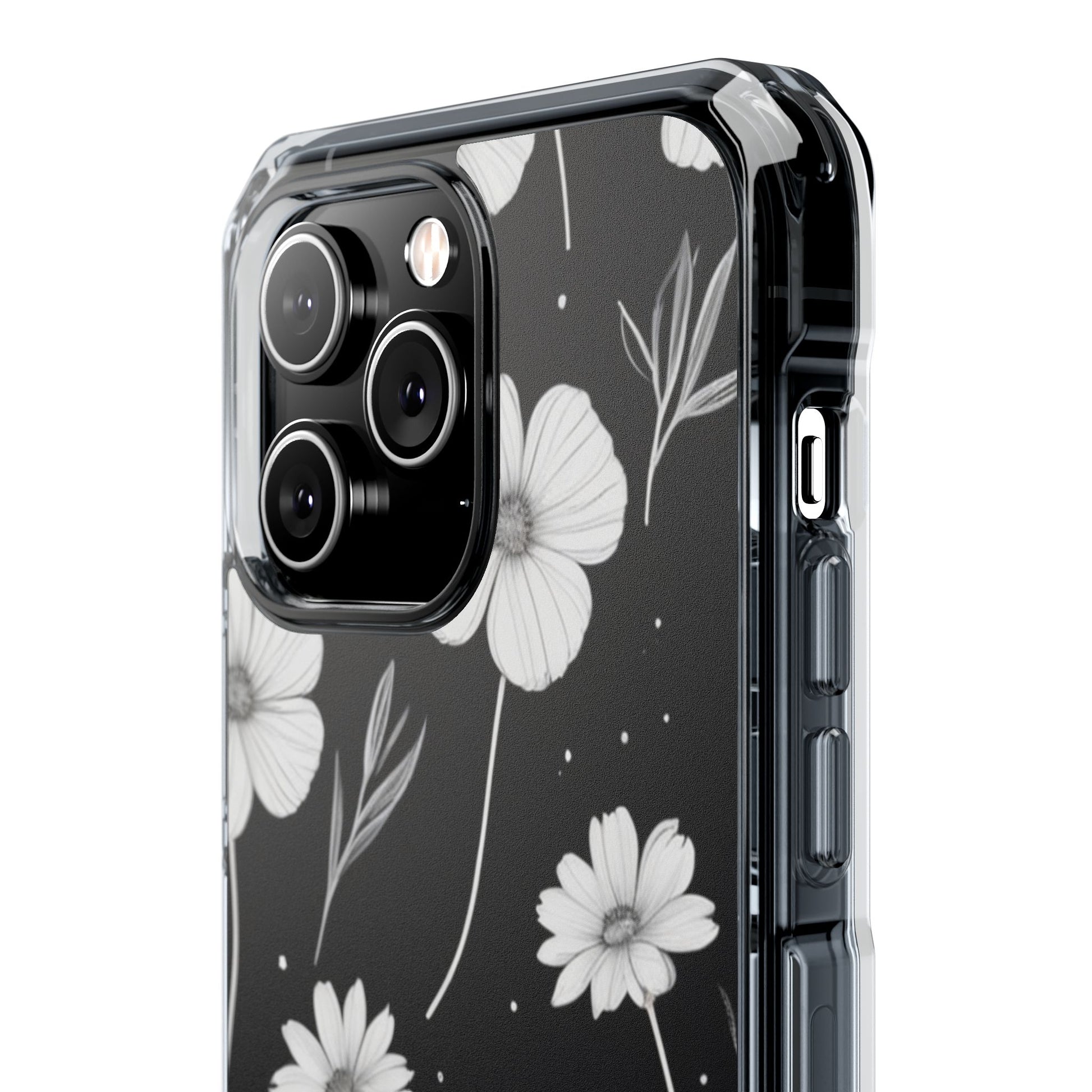 This elegant black and white floral magnetic clear impact phone case provides a subtle and stylish way to protect your smartphone. Perfect for those who appreciate elegant and sophisticated accessories. Ideal for formal events, daily use, and as a gift for birthdays or special occasions.