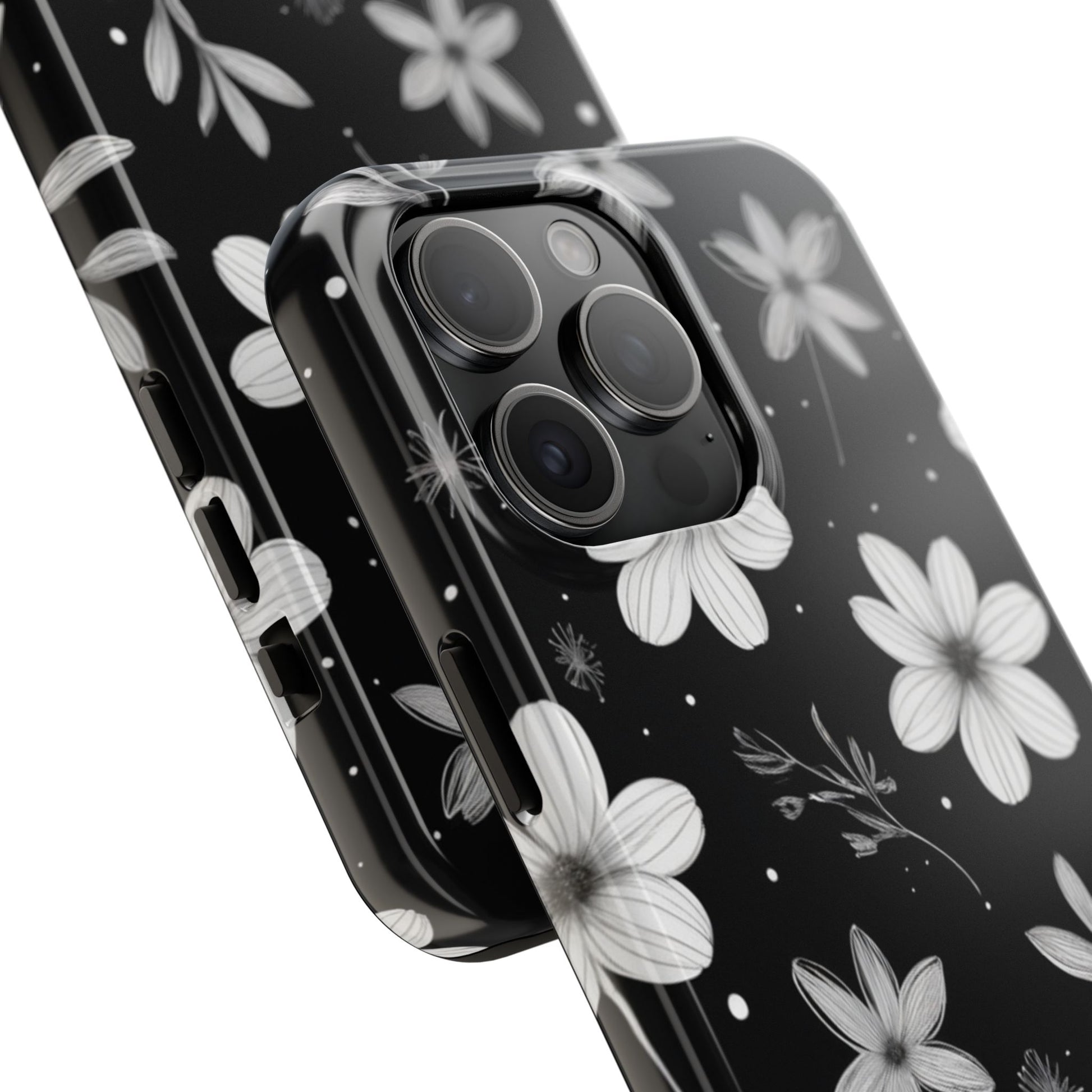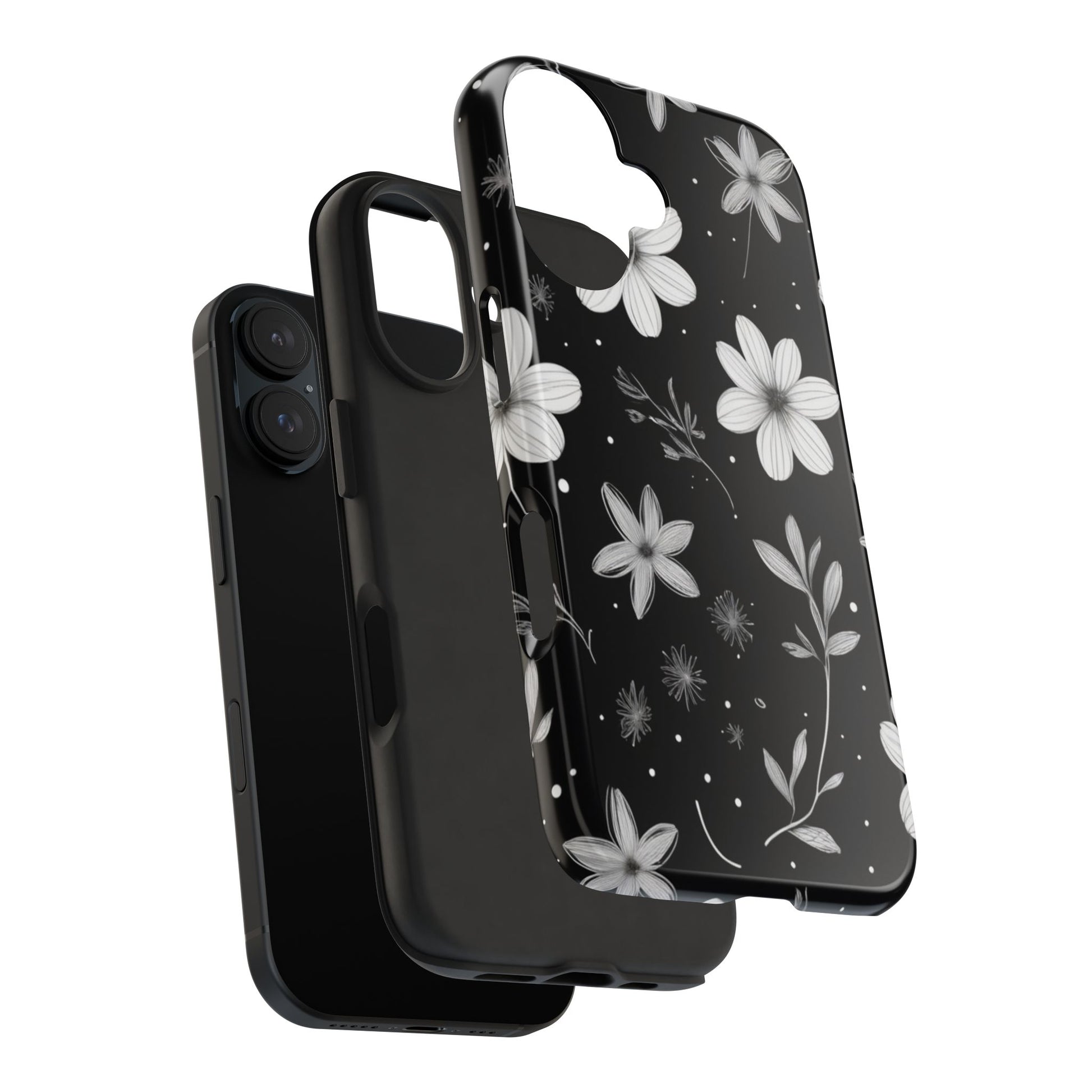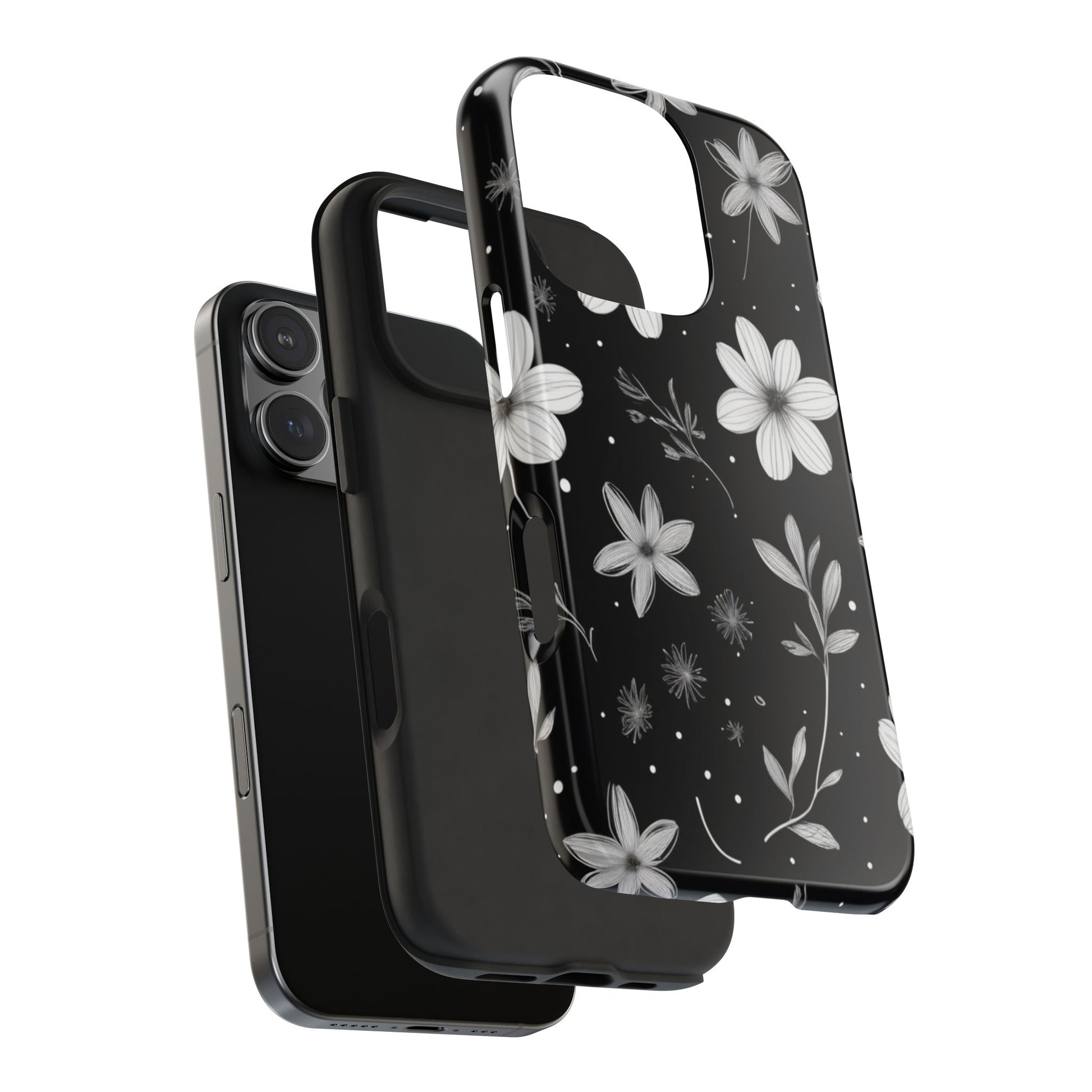 This elegant black and white floral tough phone case provides maximum protection for your phone. The design exudes sophistication and style, perfect for individuals who appreciate both functionality and aesthetics. Ideal for those who want a durable phone case that can withstand daily wear and tear. Perfect for gifting on birthdays, holidays, or as a treat for yourself.