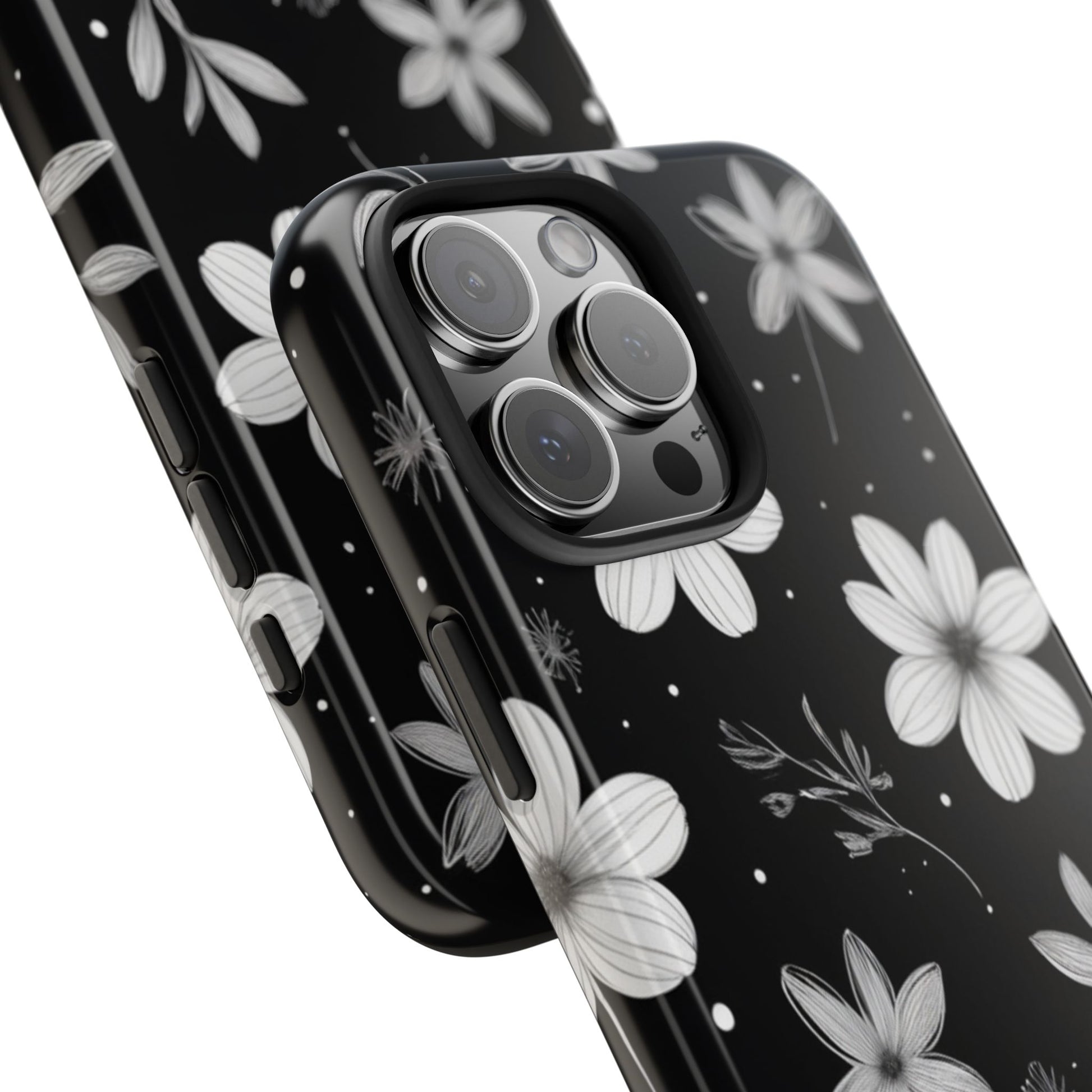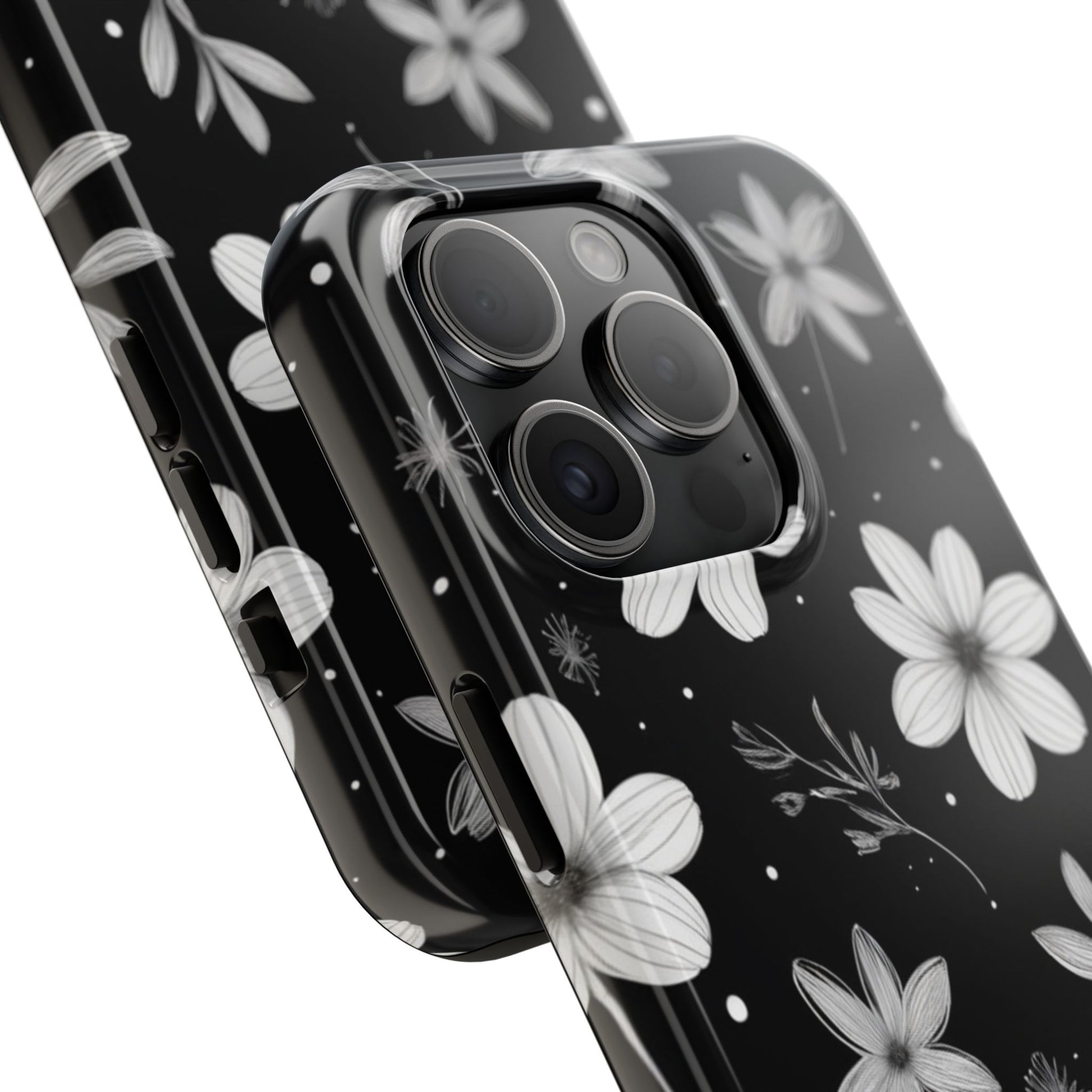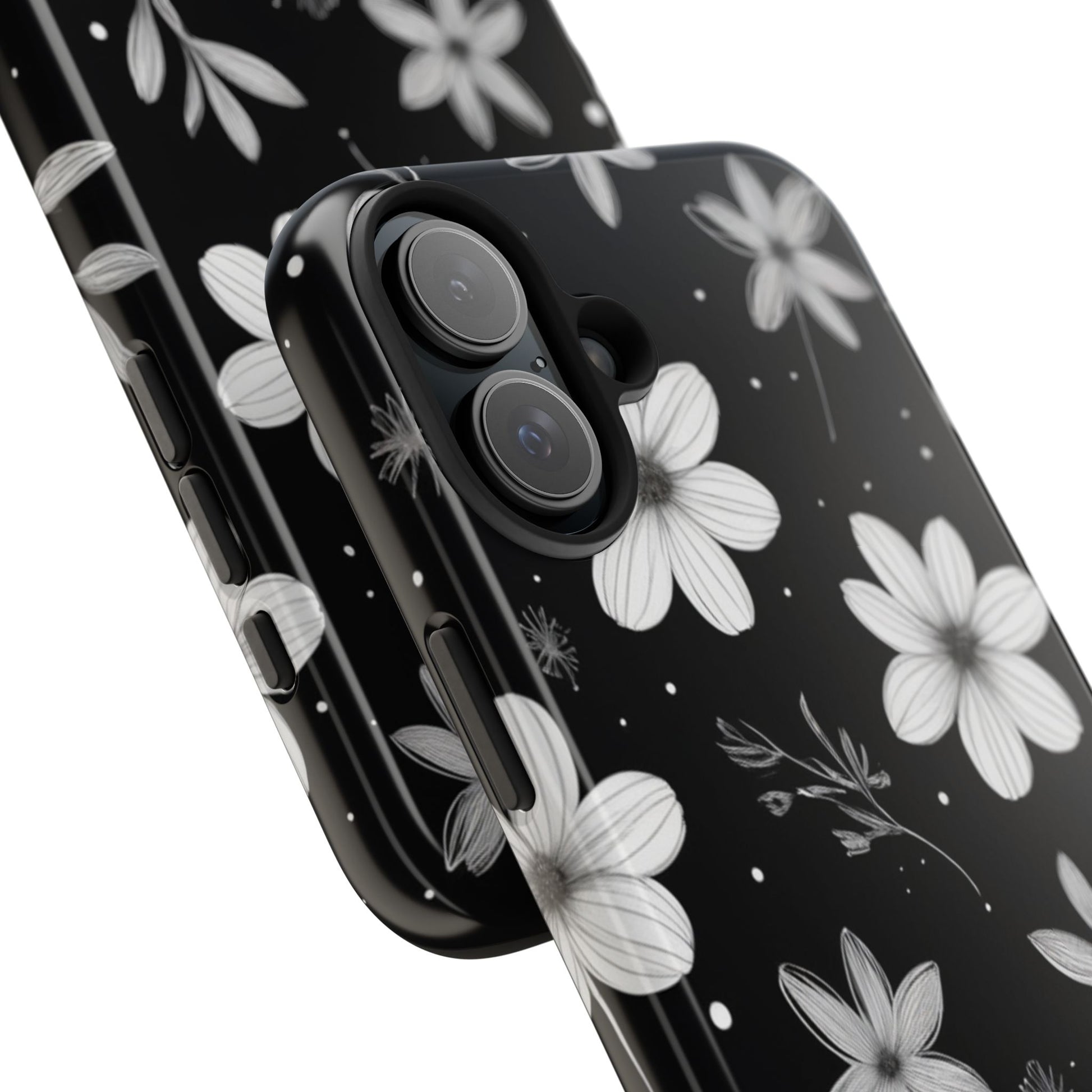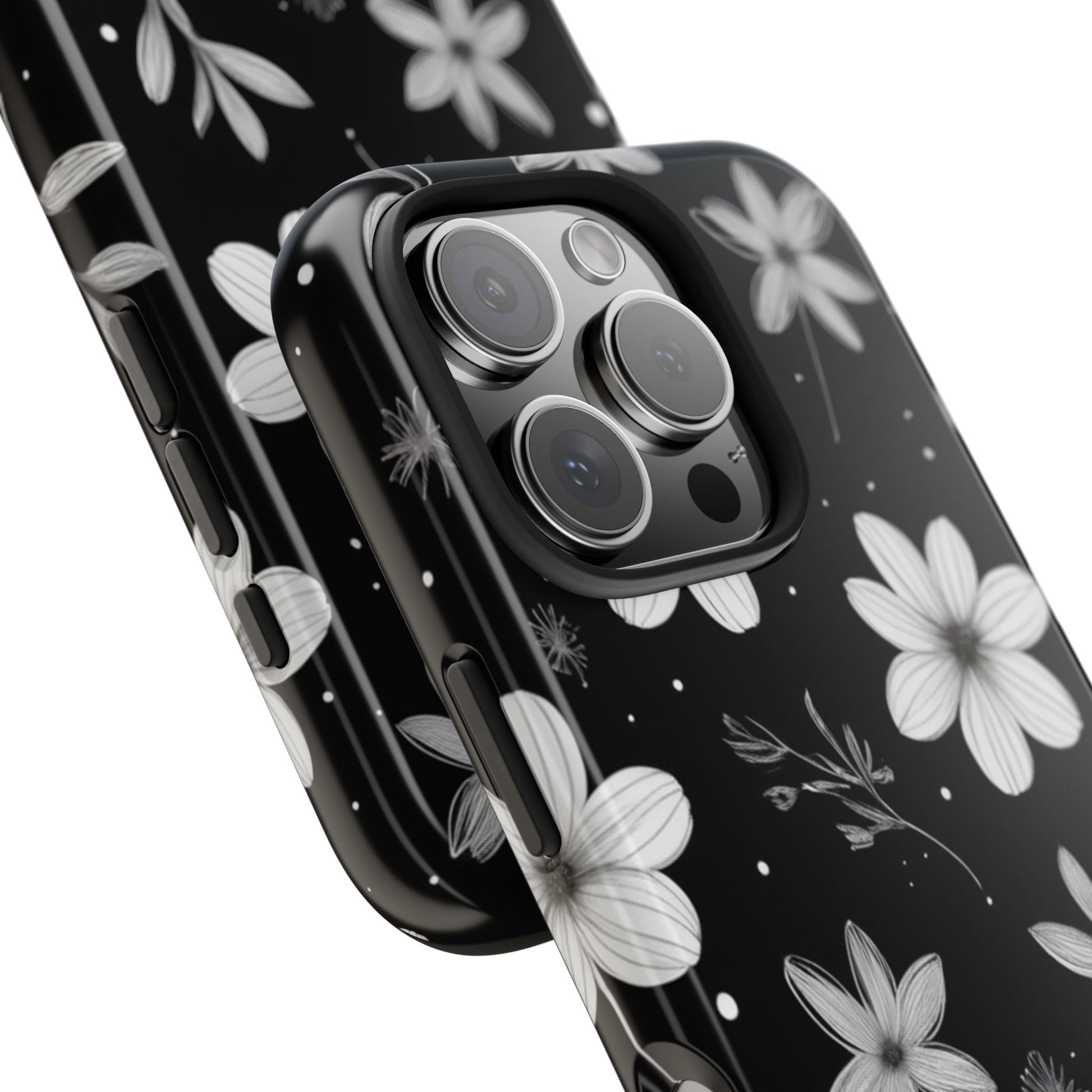 This elegant black and white floral tough phone case provides maximum protection for your phone. The design exudes sophistication and style, perfect for individuals who appreciate both functionality and aesthetics. Ideal for those who want a durable phone case that can withstand daily wear and tear. Perfect for gifting on birthdays, holidays, or as a treat for yourself.