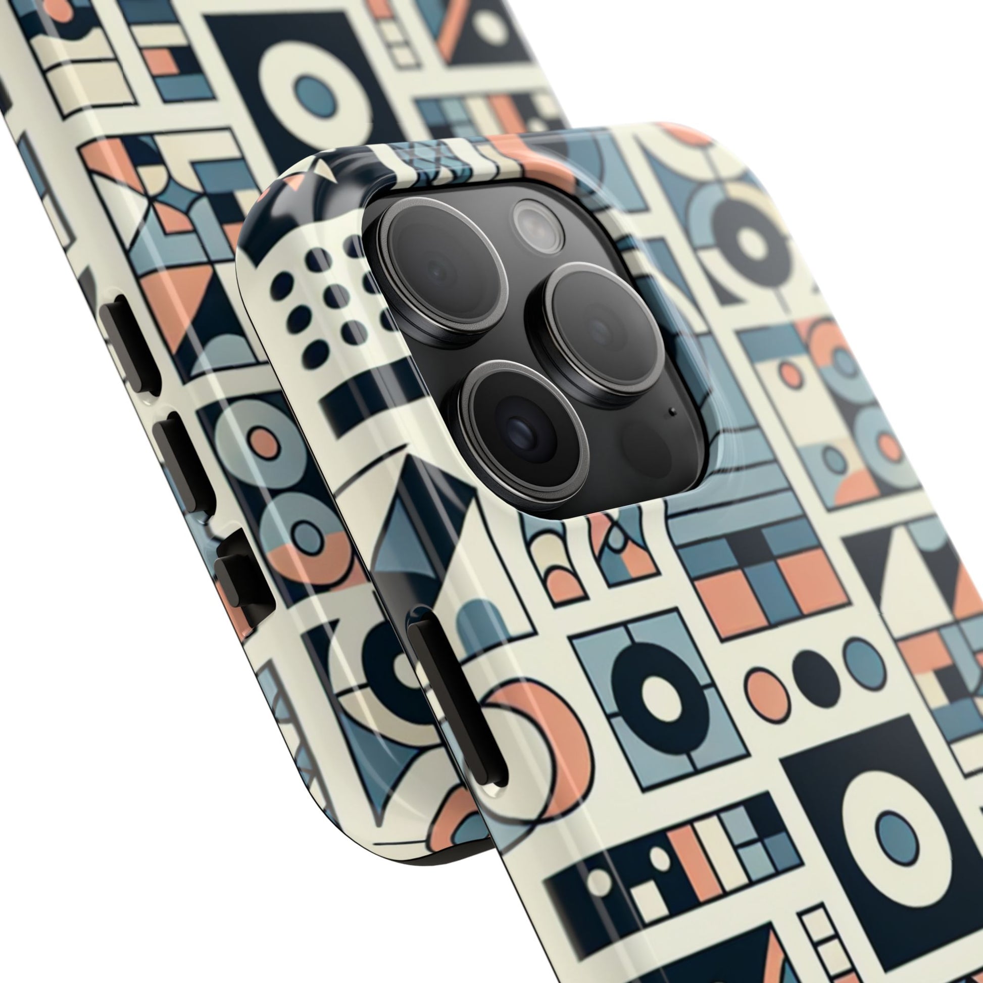 Geometric Print Tough Phone Case for iPhone 16 15 14 13 12 11 X 8 7 Samsung Galaxy S24 S23 S22 S21