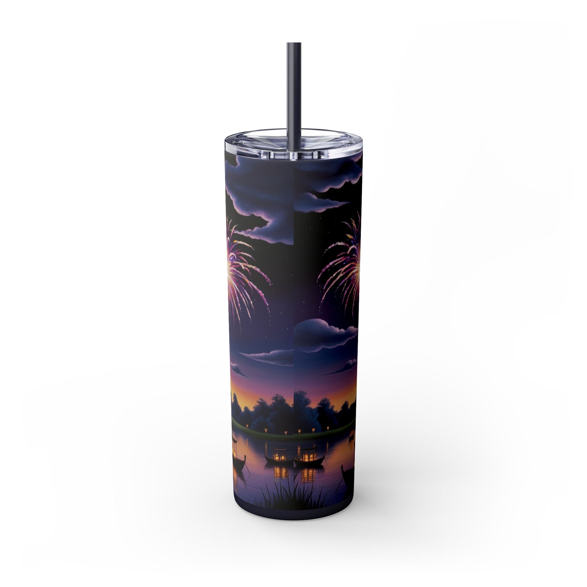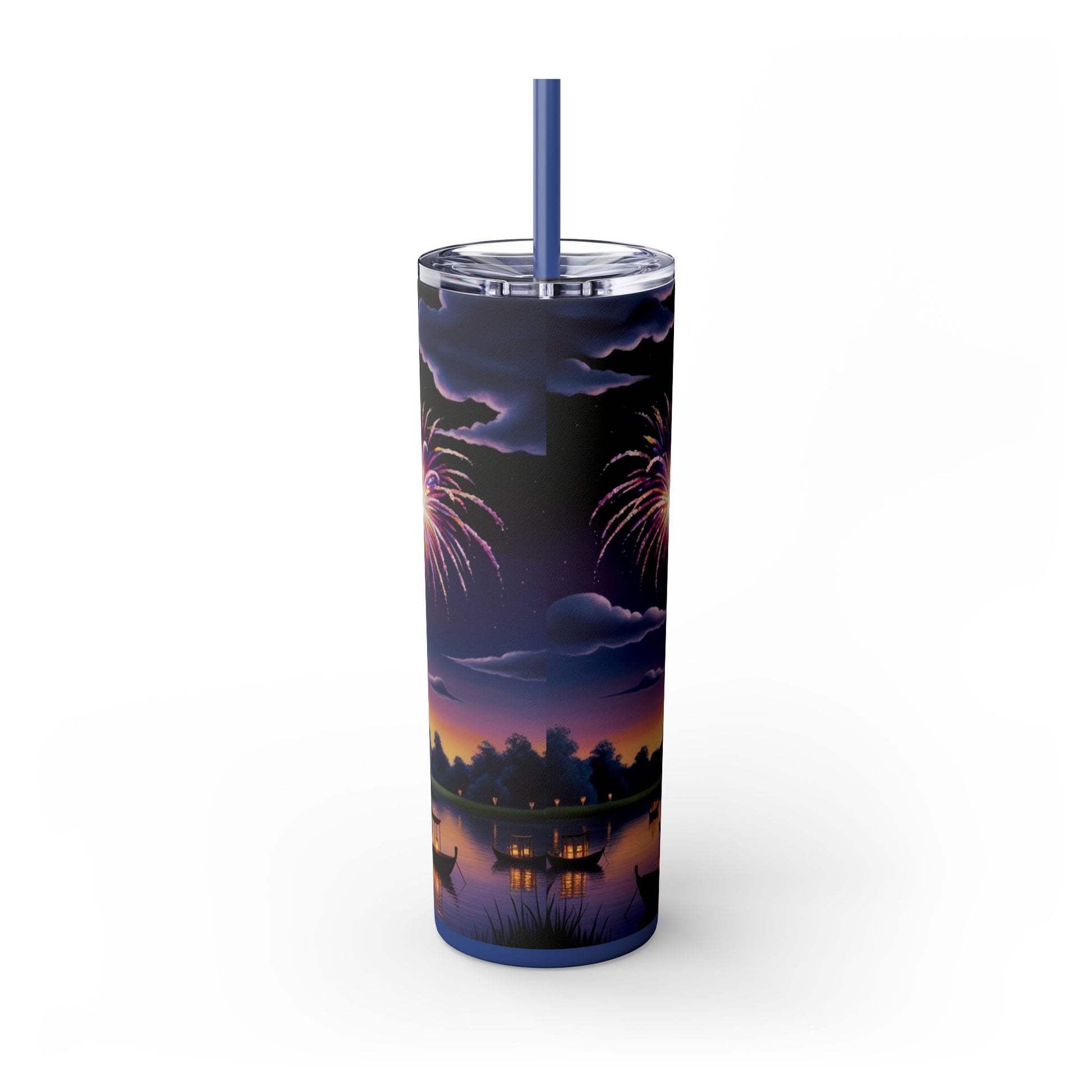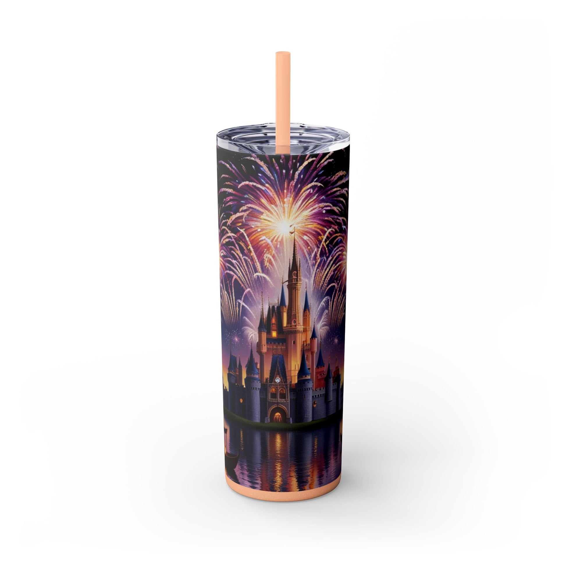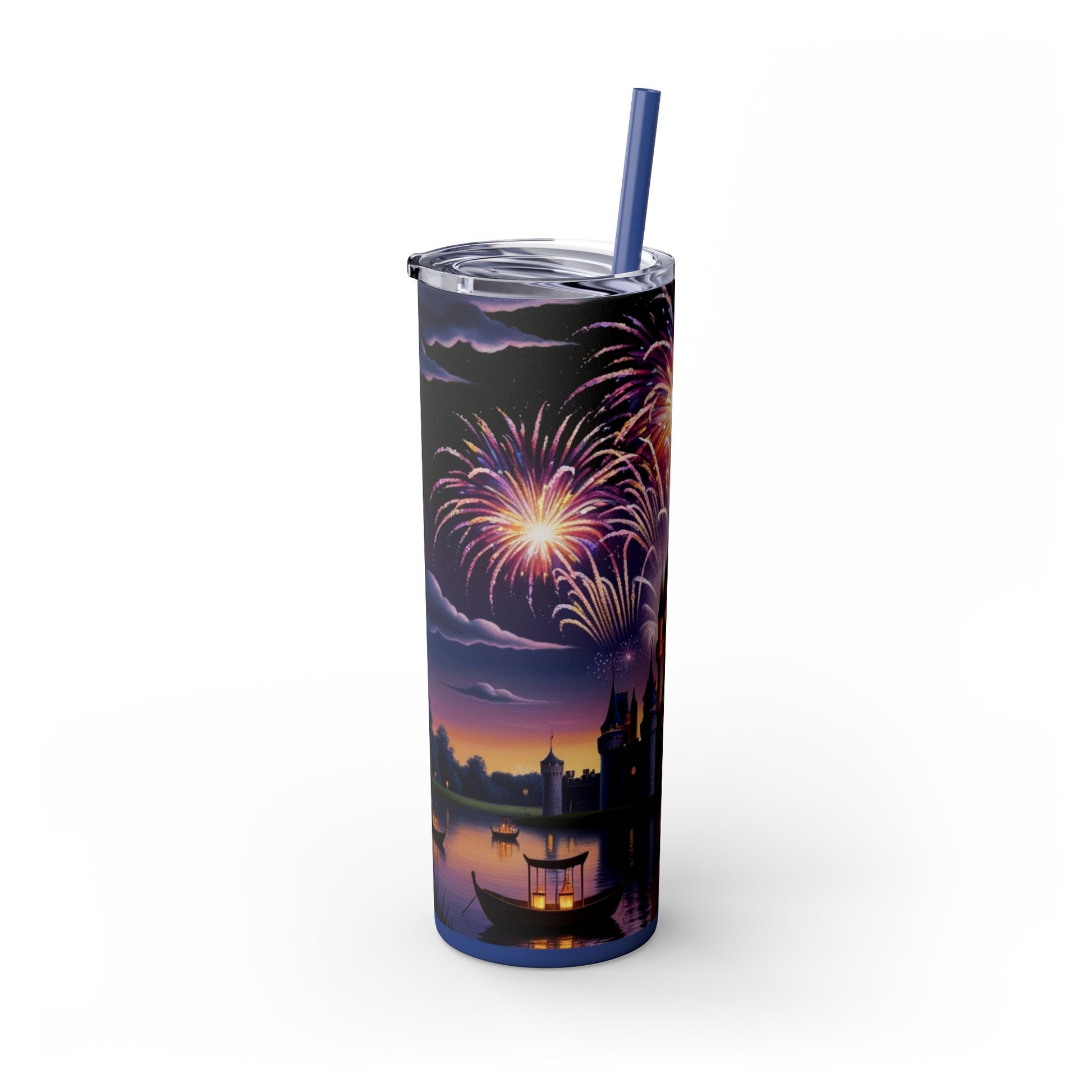 Night Sky Castle and Fireworks Skinny Tumbler, 20oz