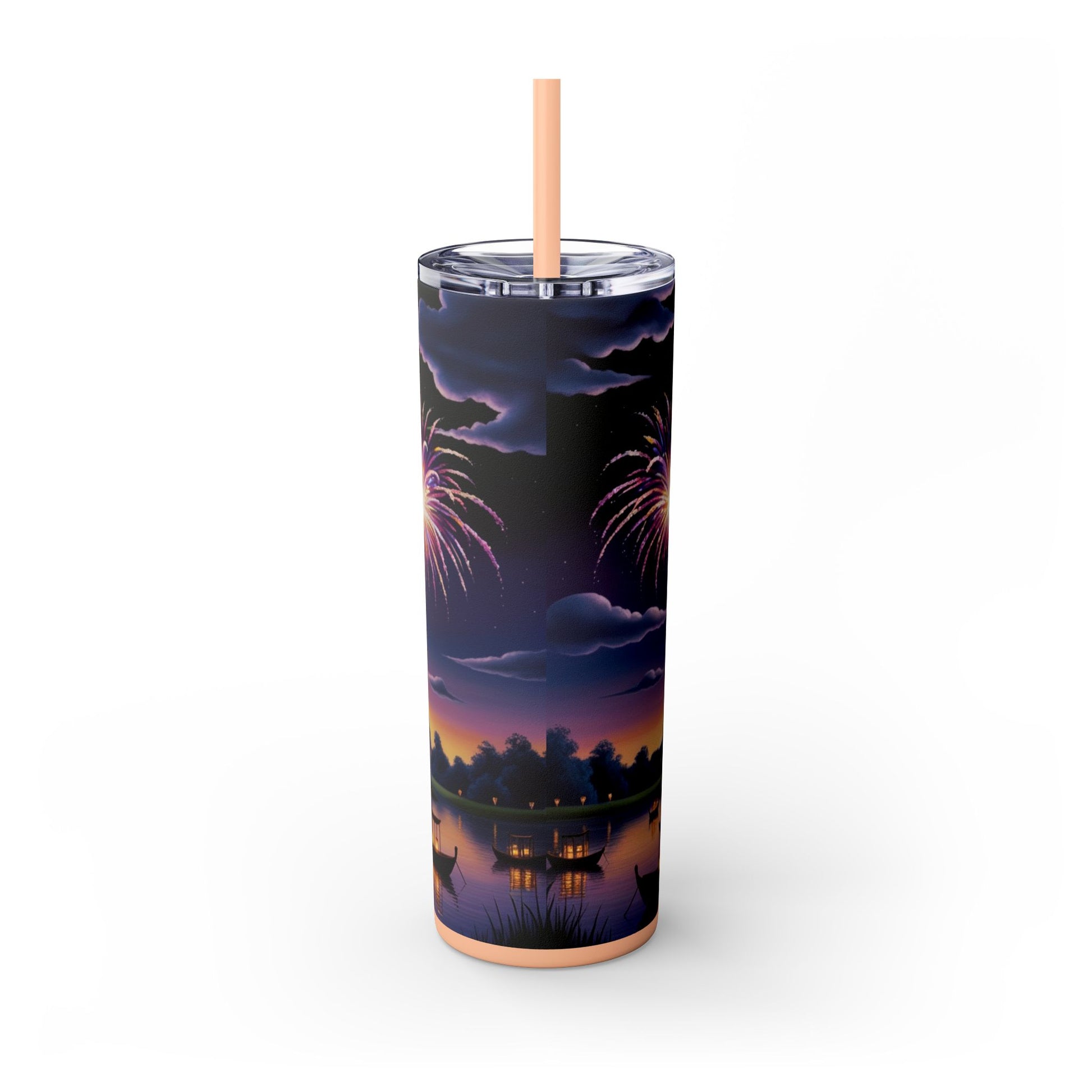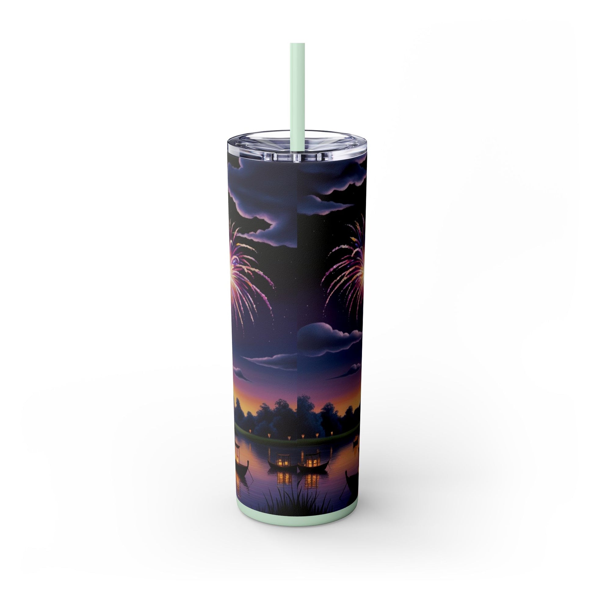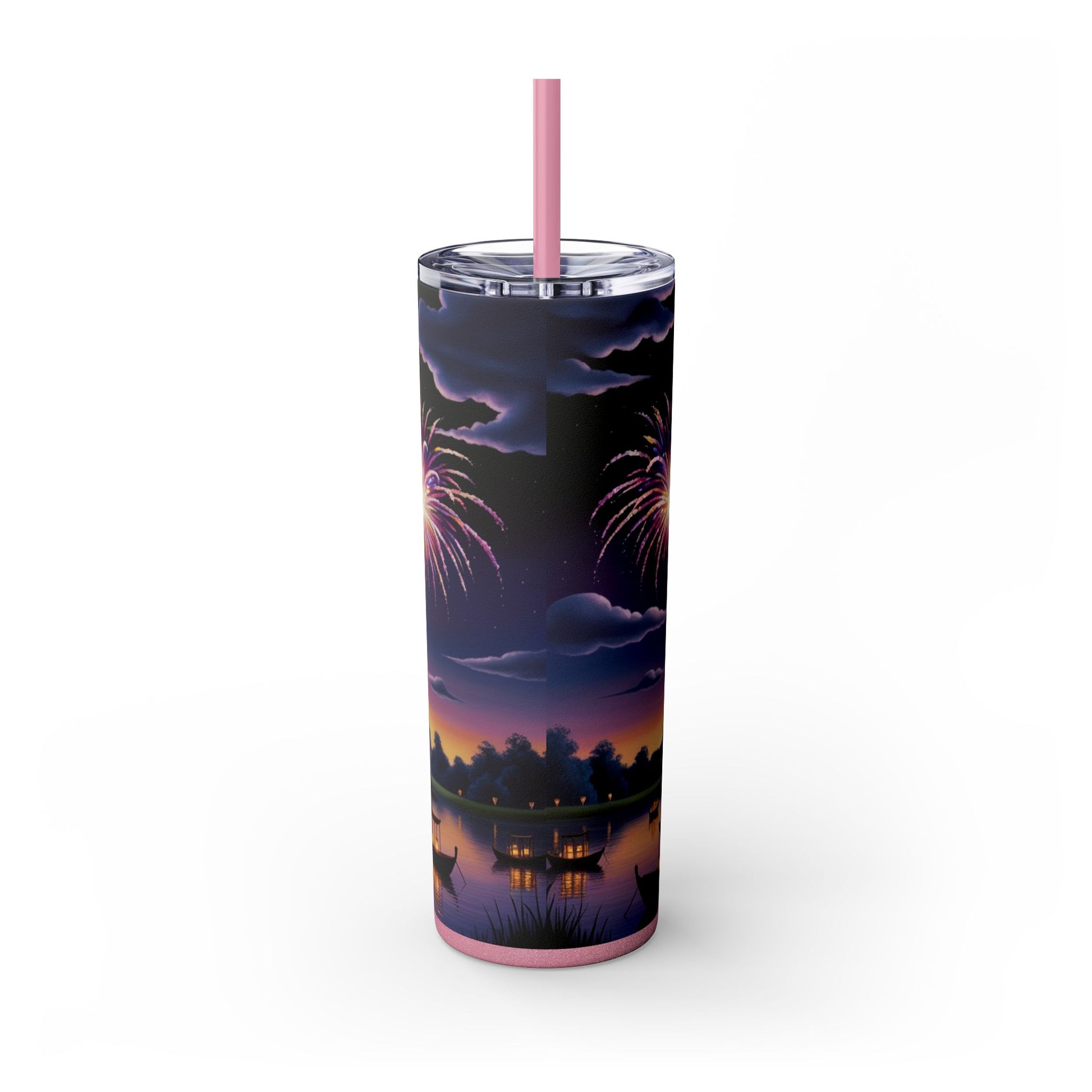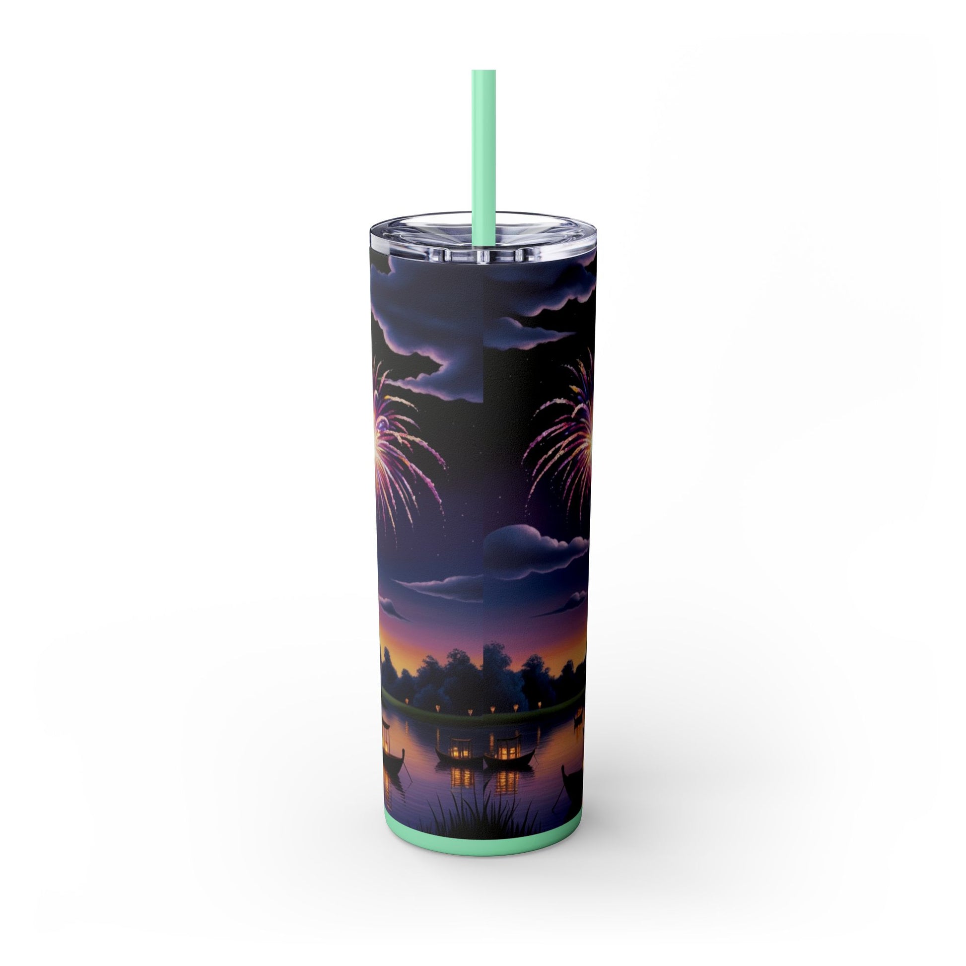 Night Sky Castle and Fireworks Skinny Tumbler, 20oz