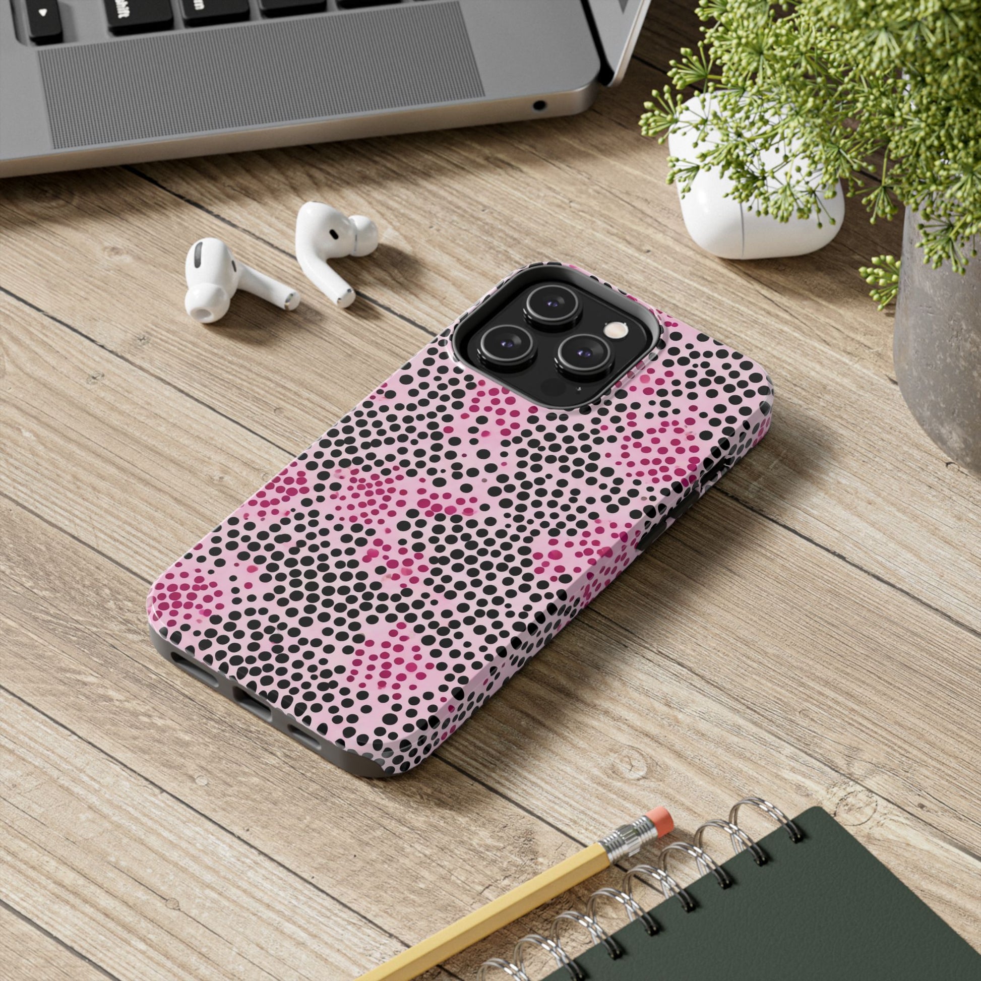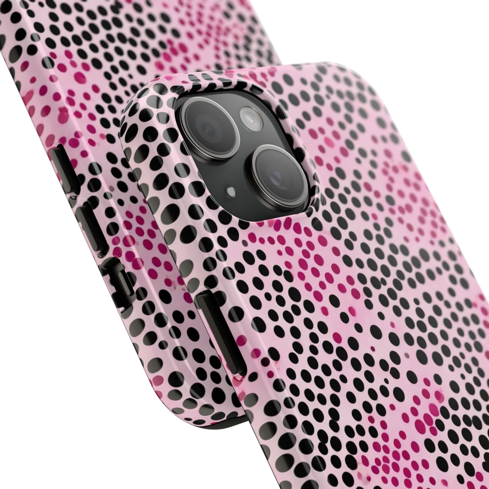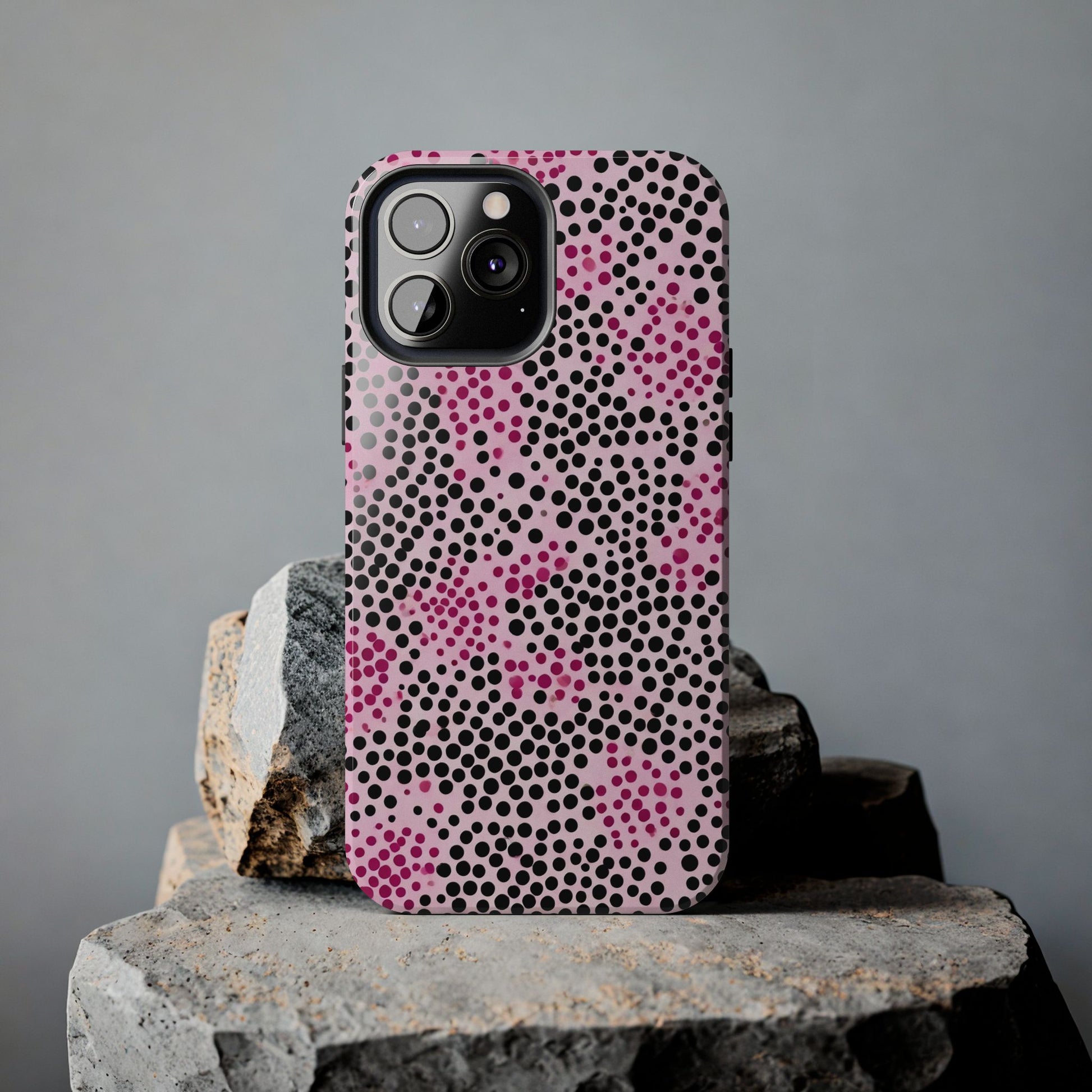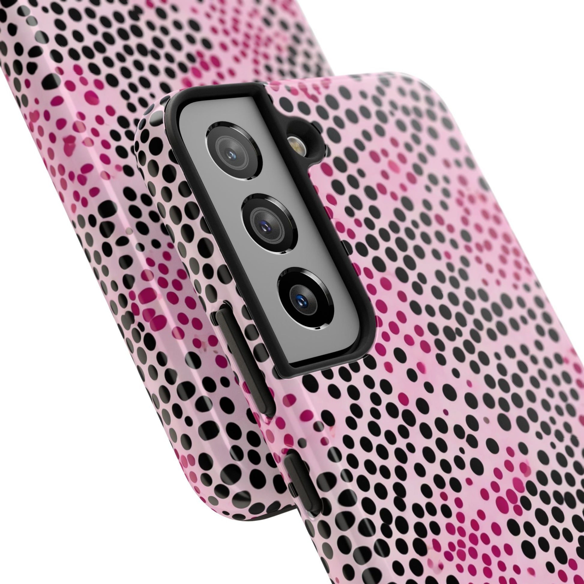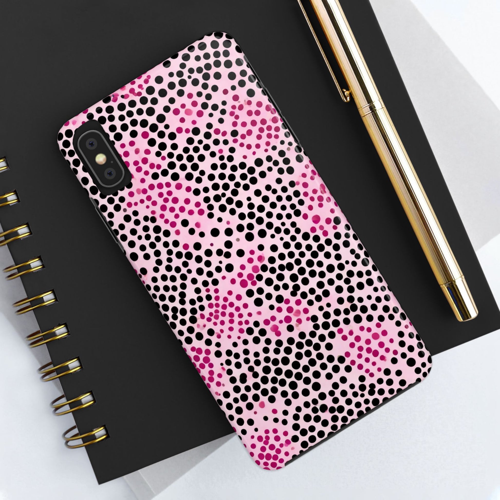 Stay stylish and protected with this pink and black dot tough phone case. The design is fun and trendy, perfect for someone looking to add a pop of color to their everyday life. This phone case is ideal for those who want both fashion and durability in their accessories. Great for birthdays, holidays, or just to treat yourself.