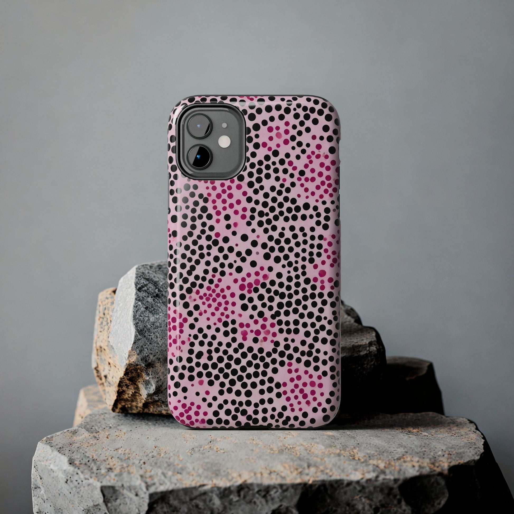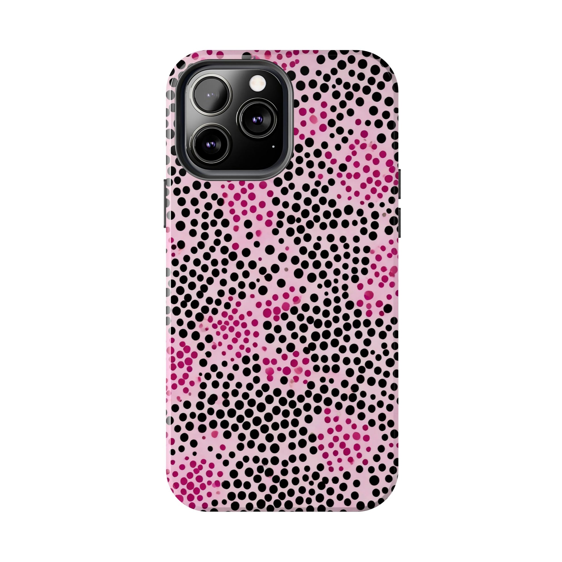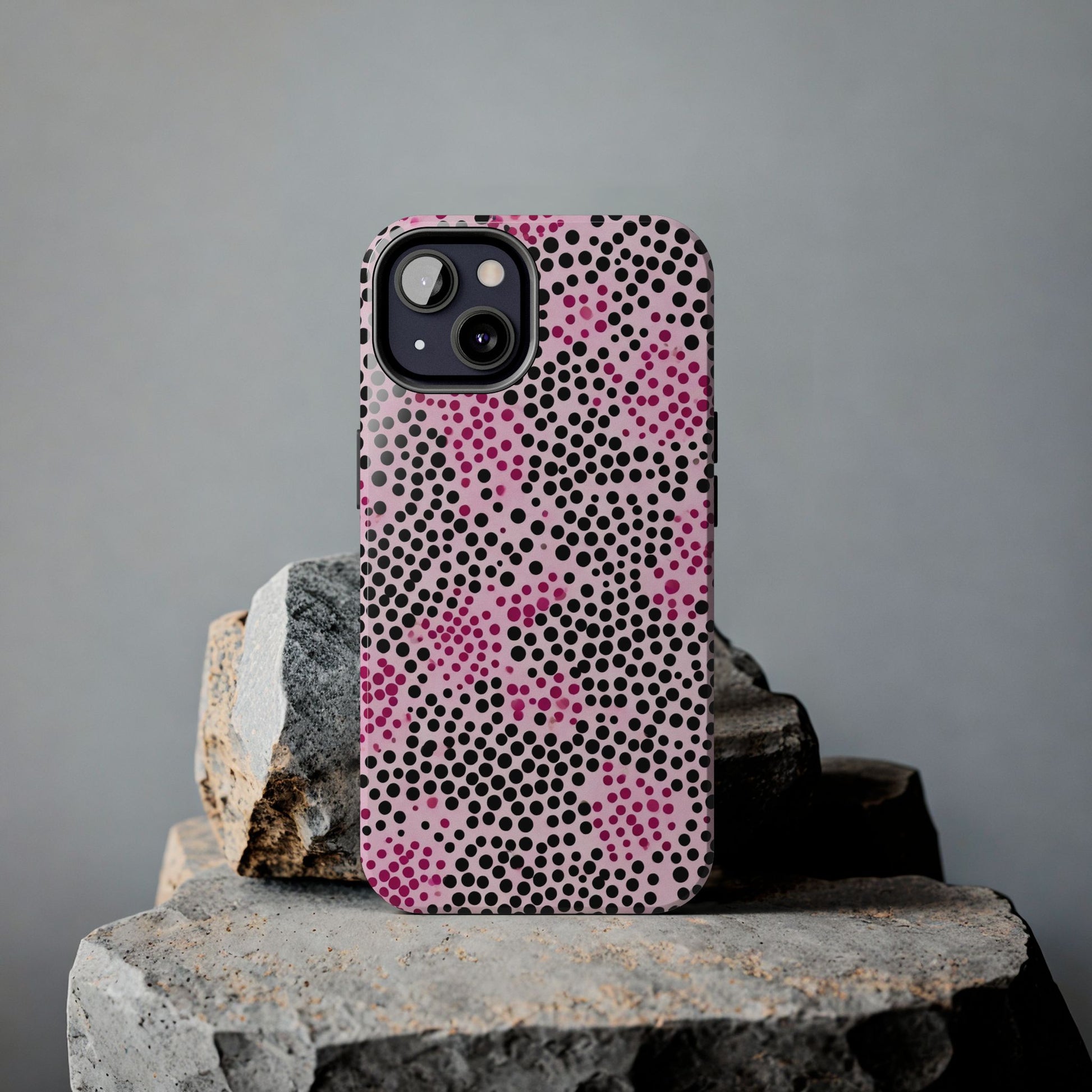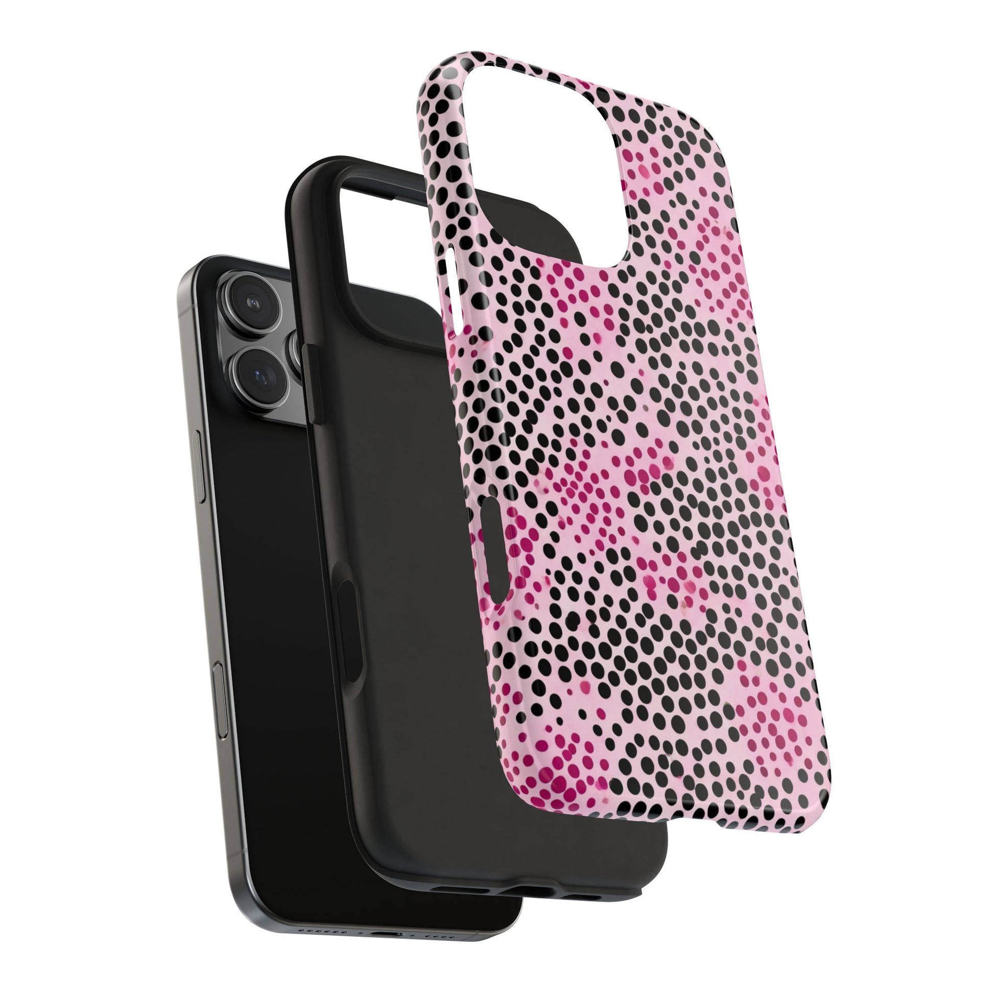 Stay stylish and protected with this pink and black dot tough phone case. The design is fun and trendy, perfect for someone looking to add a pop of color to their everyday life. This phone case is ideal for those who want both fashion and durability in their accessories. Great for birthdays, holidays, or just to treat yourself.
