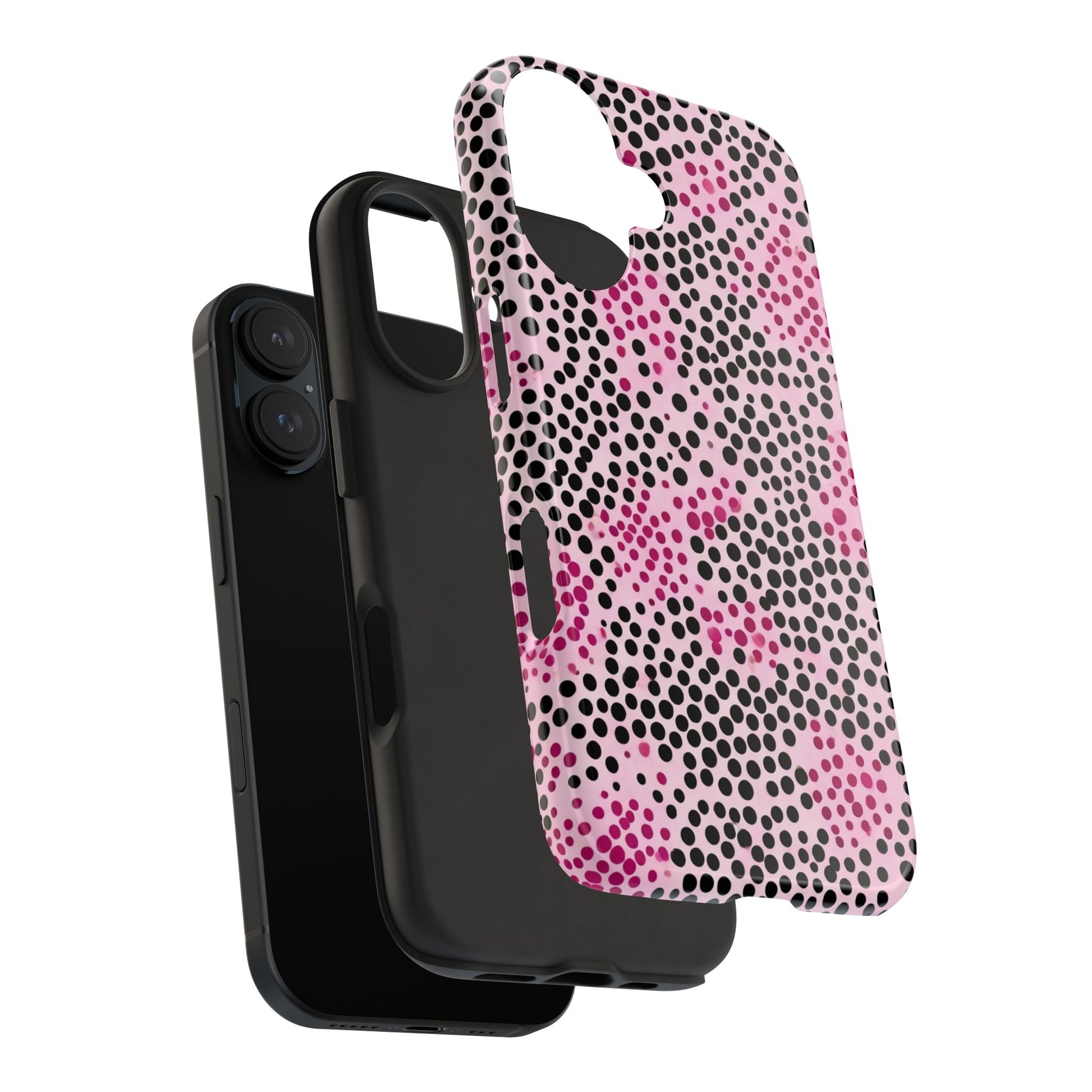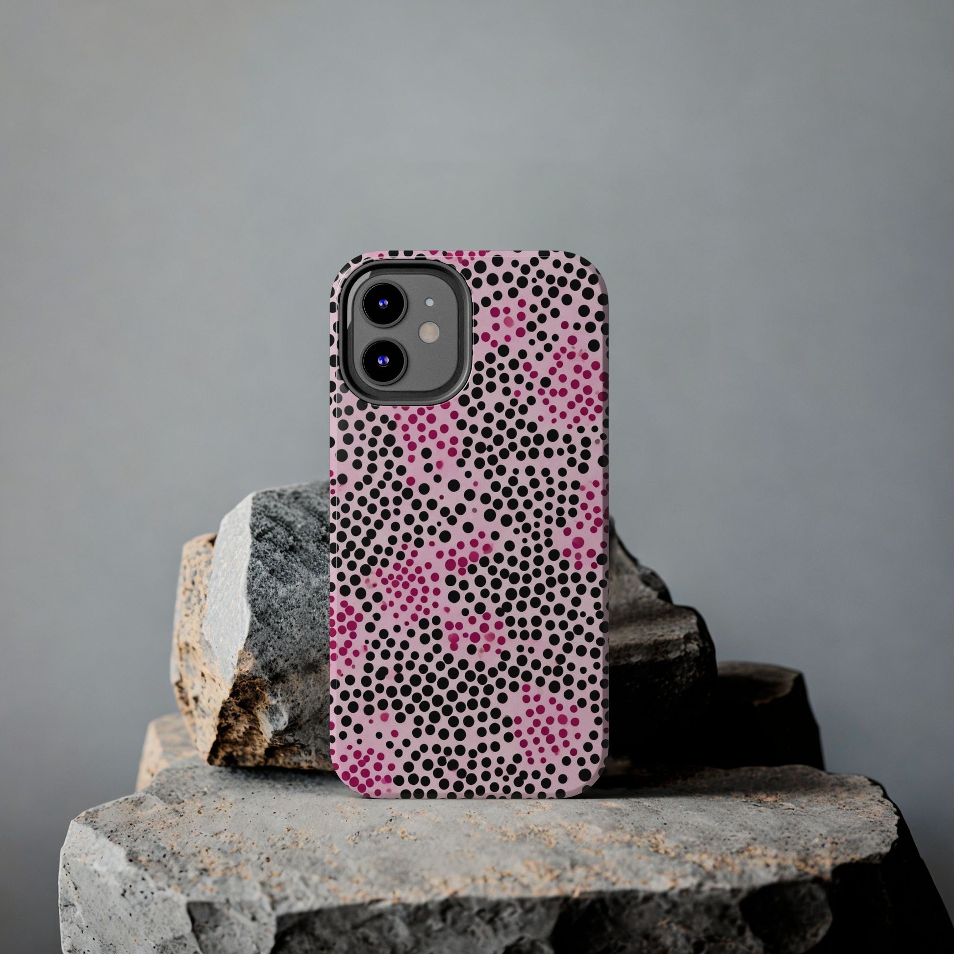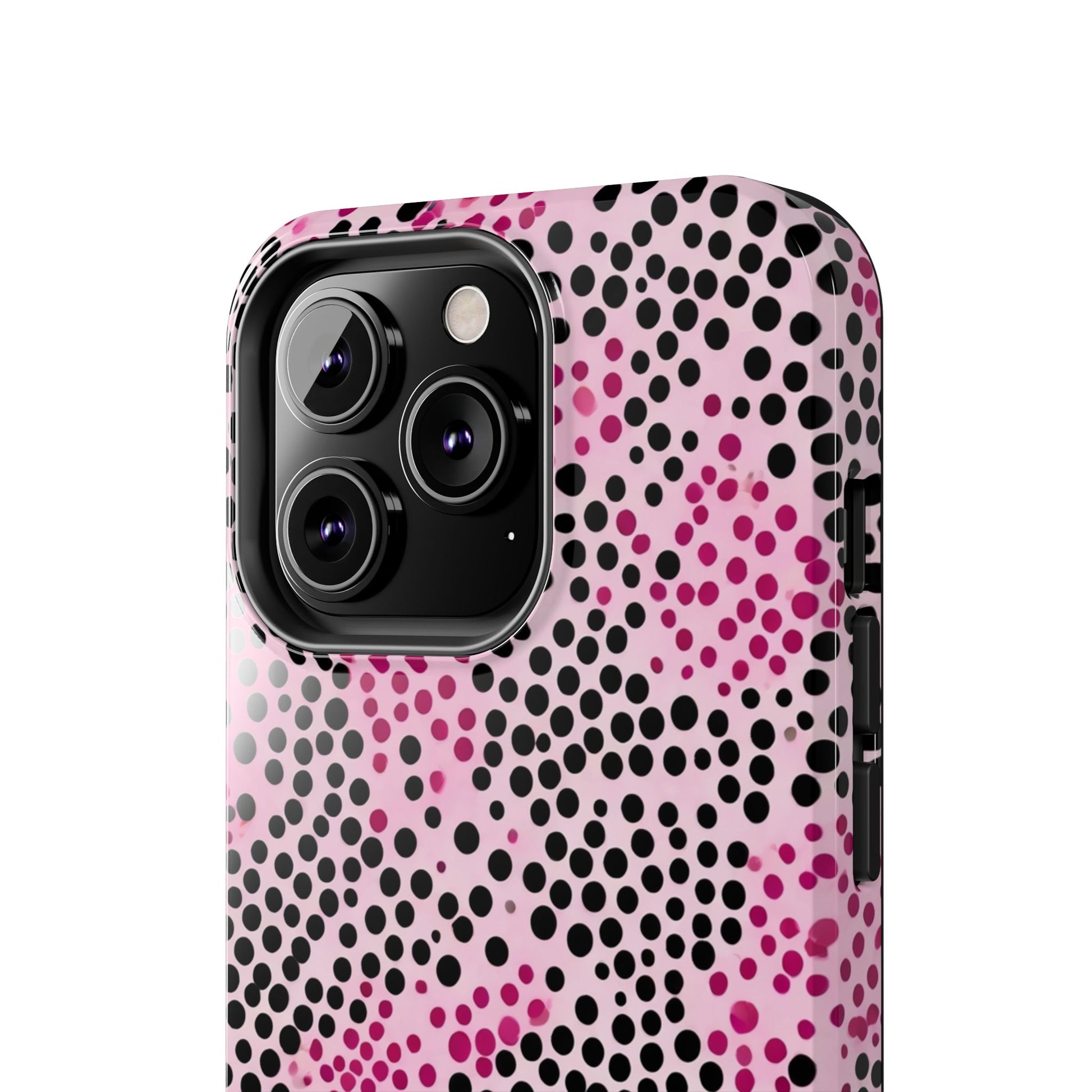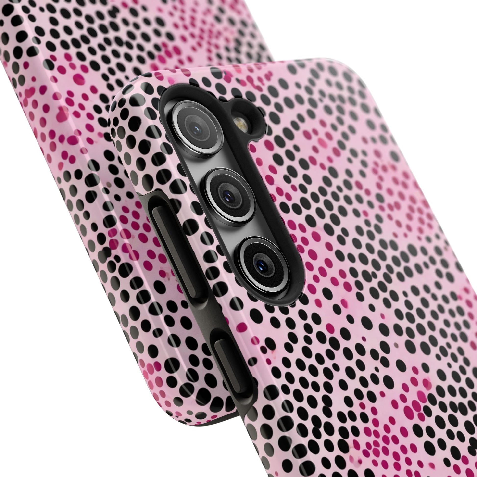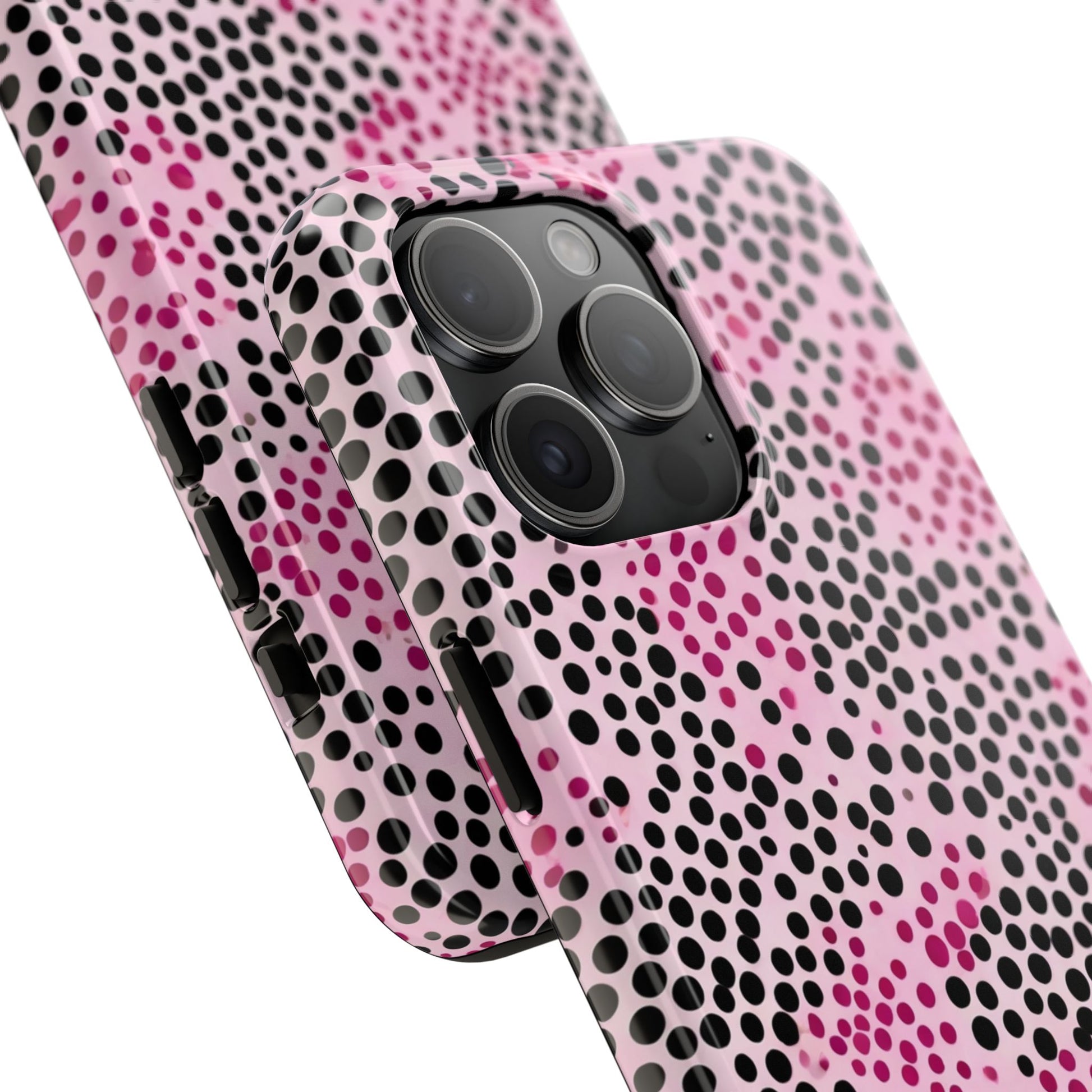 Stay stylish and protected with this pink and black dot tough phone case. The design is fun and trendy, perfect for someone looking to add a pop of color to their everyday life. This phone case is ideal for those who want both fashion and durability in their accessories. Great for birthdays, holidays, or just to treat yourself.