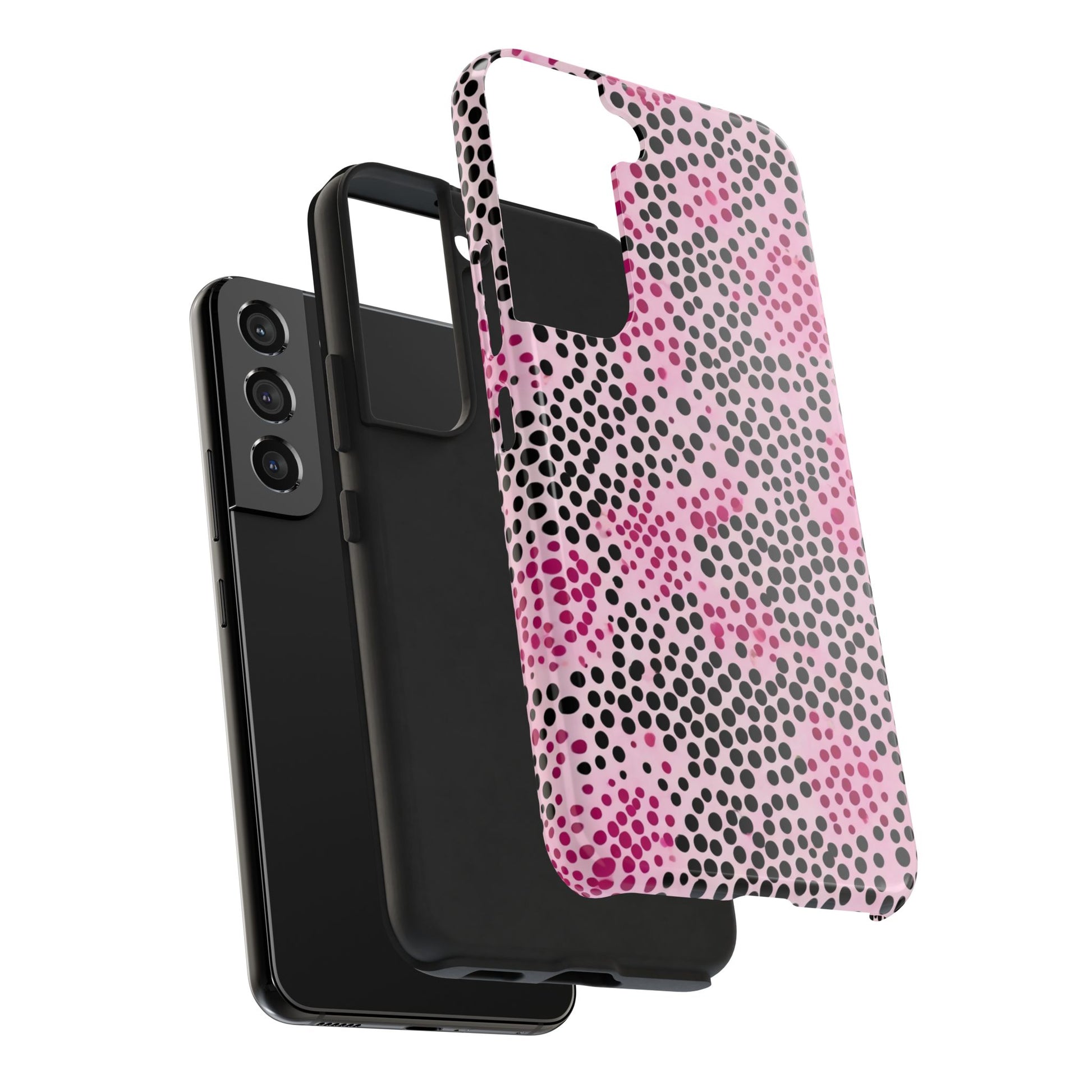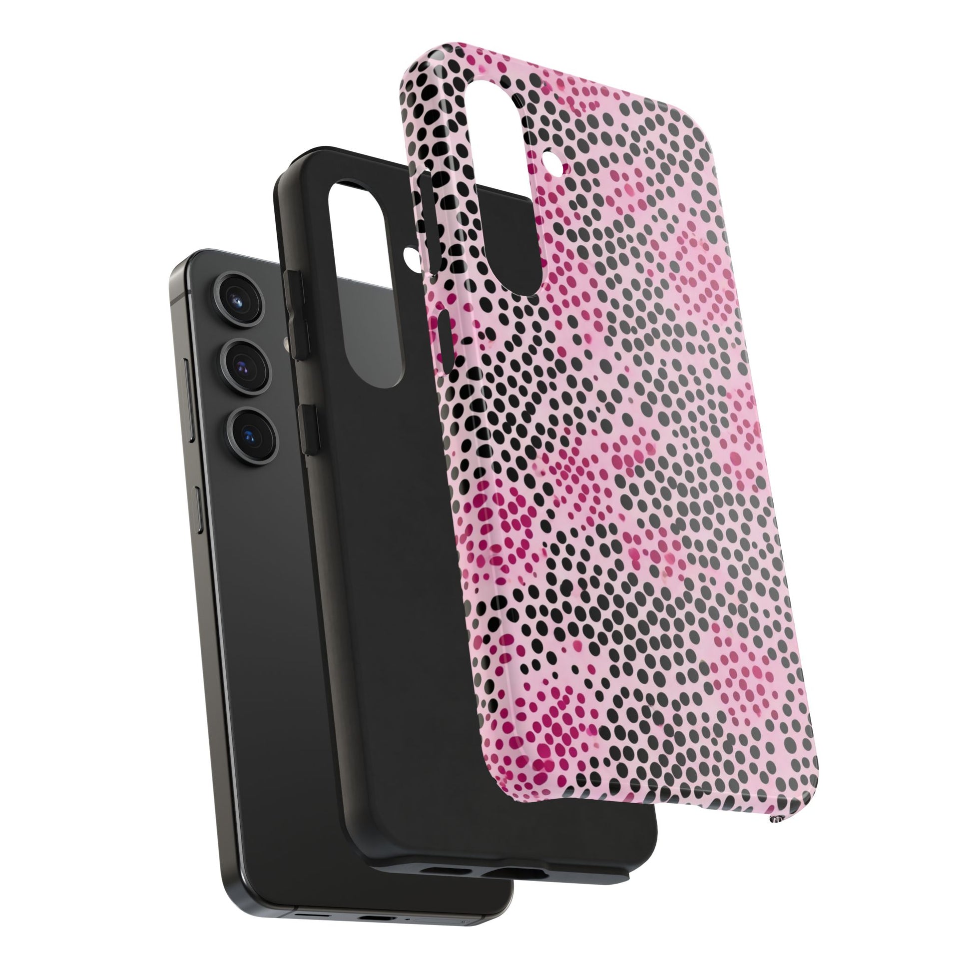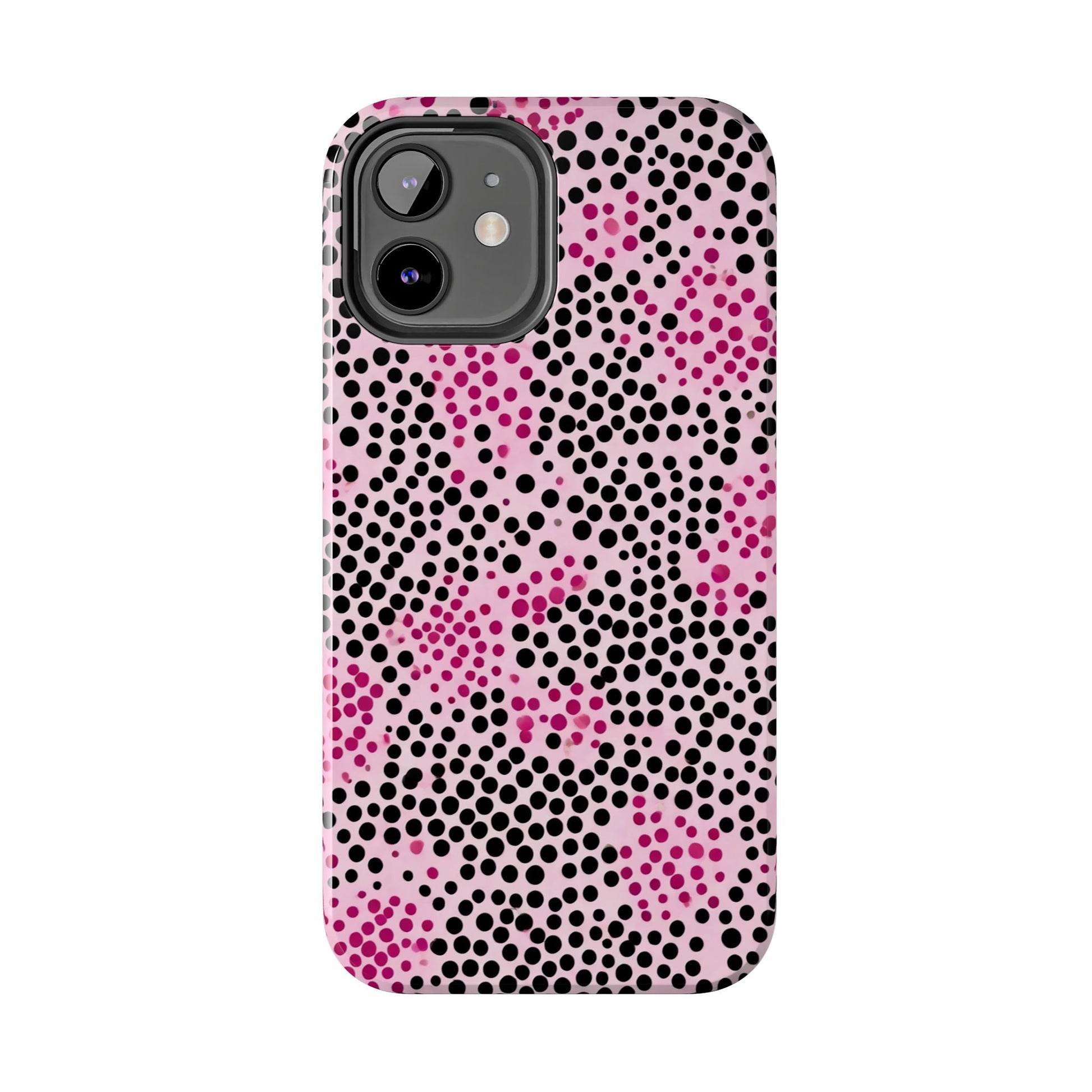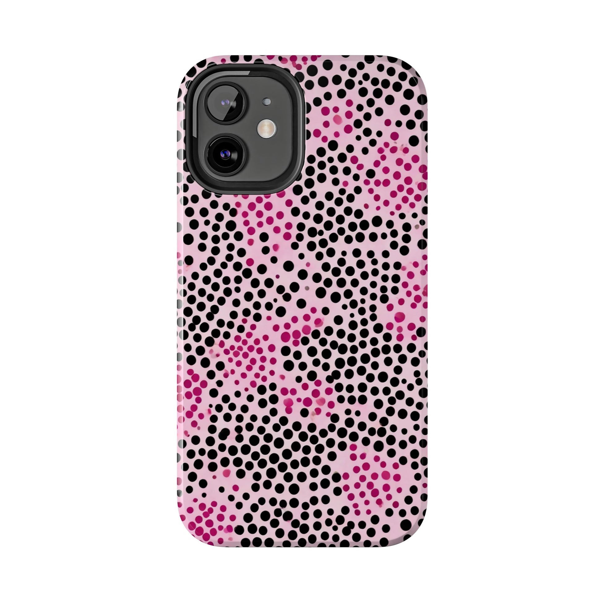 Stay stylish and protected with this pink and black dot tough phone case. The design is fun and trendy, perfect for someone looking to add a pop of color to their everyday life. This phone case is ideal for those who want both fashion and durability in their accessories. Great for birthdays, holidays, or just to treat yourself.
