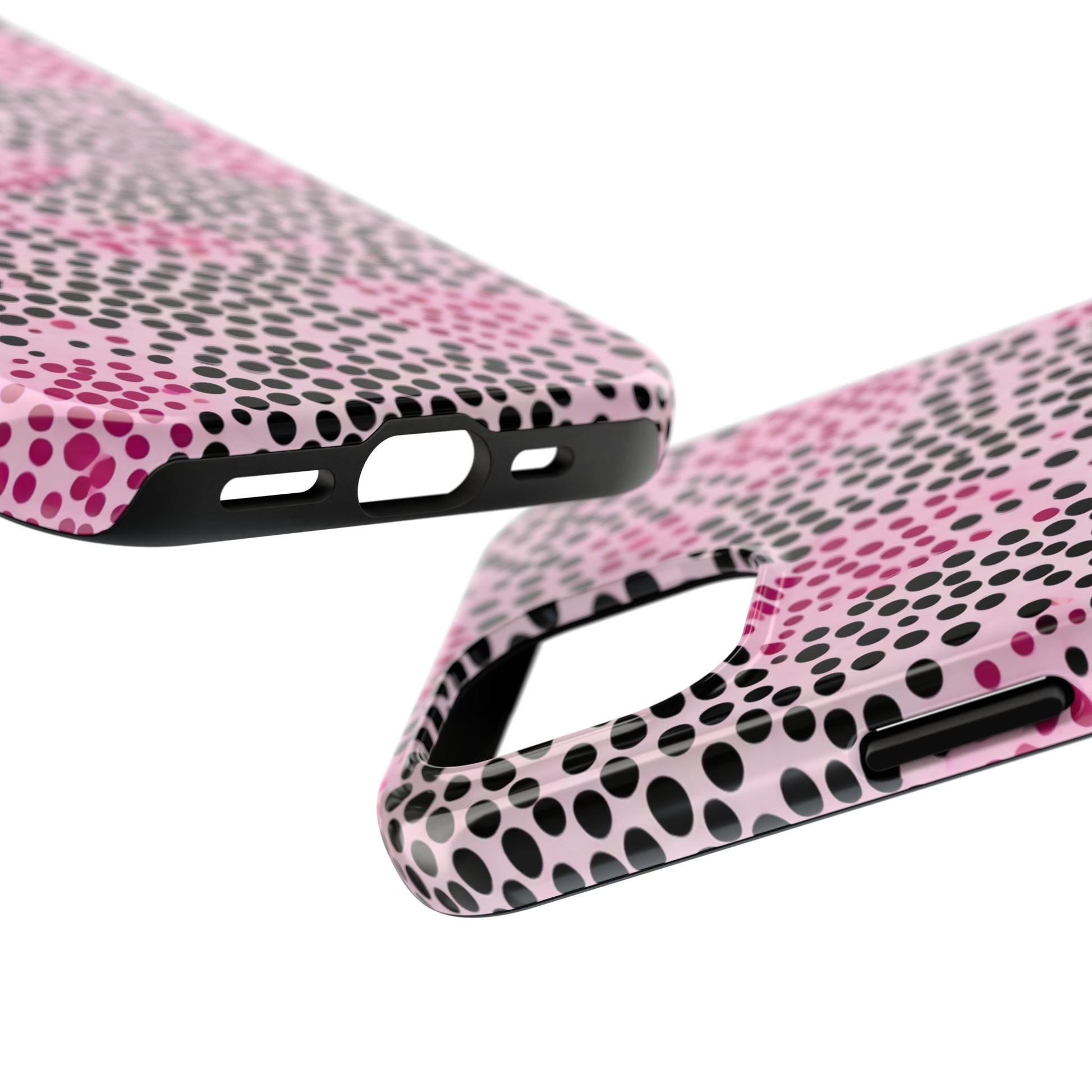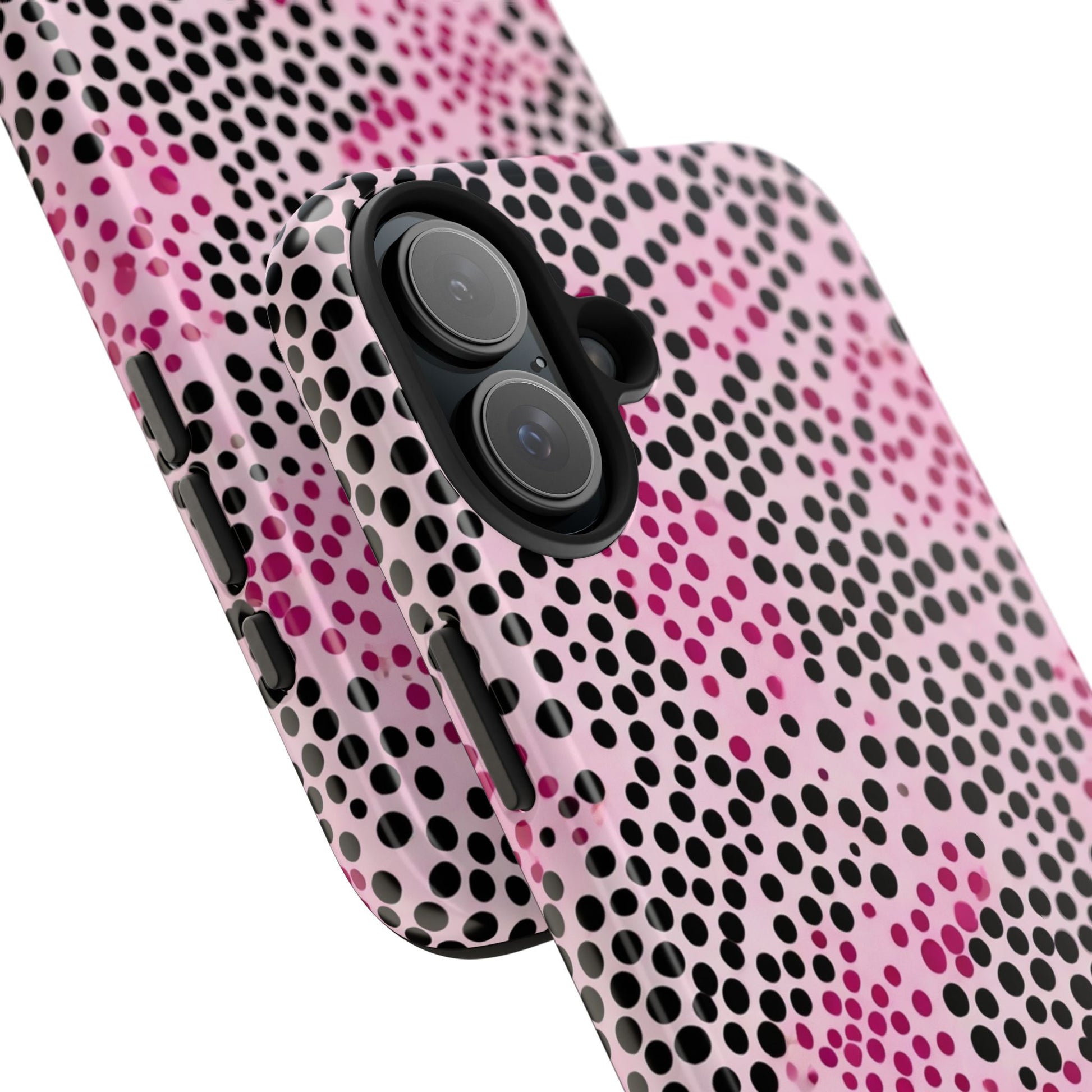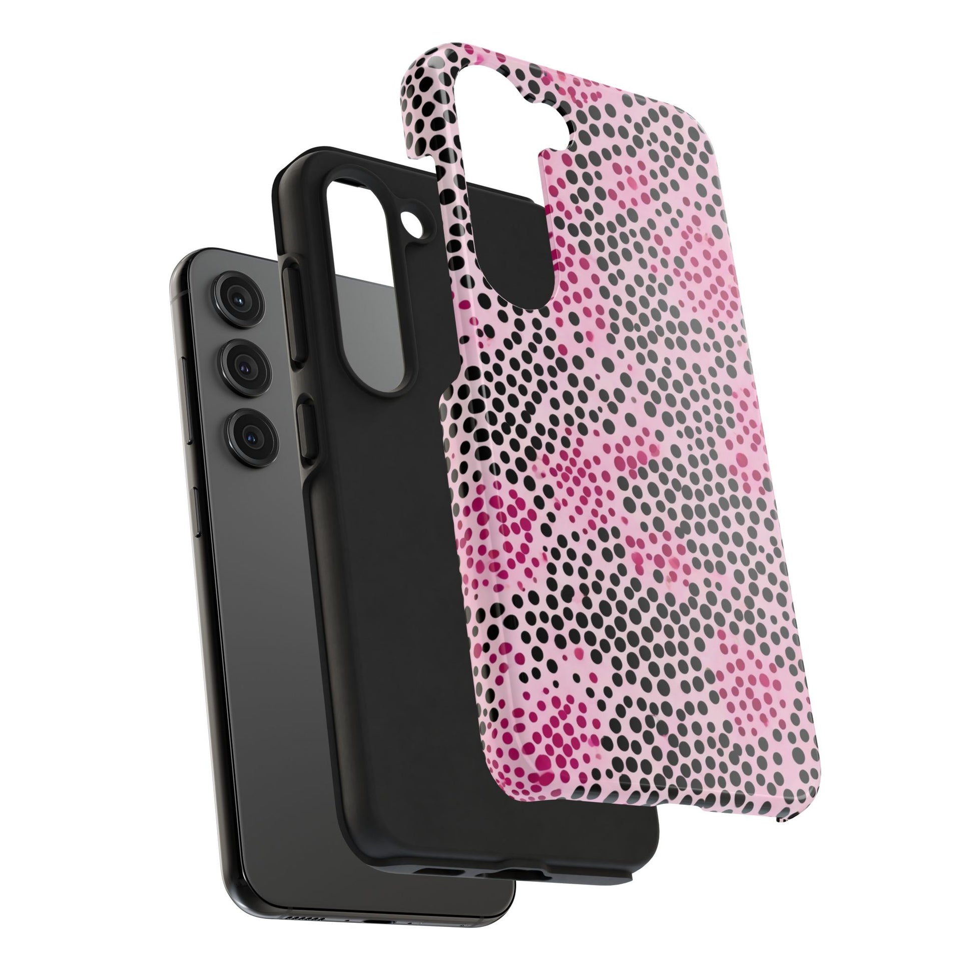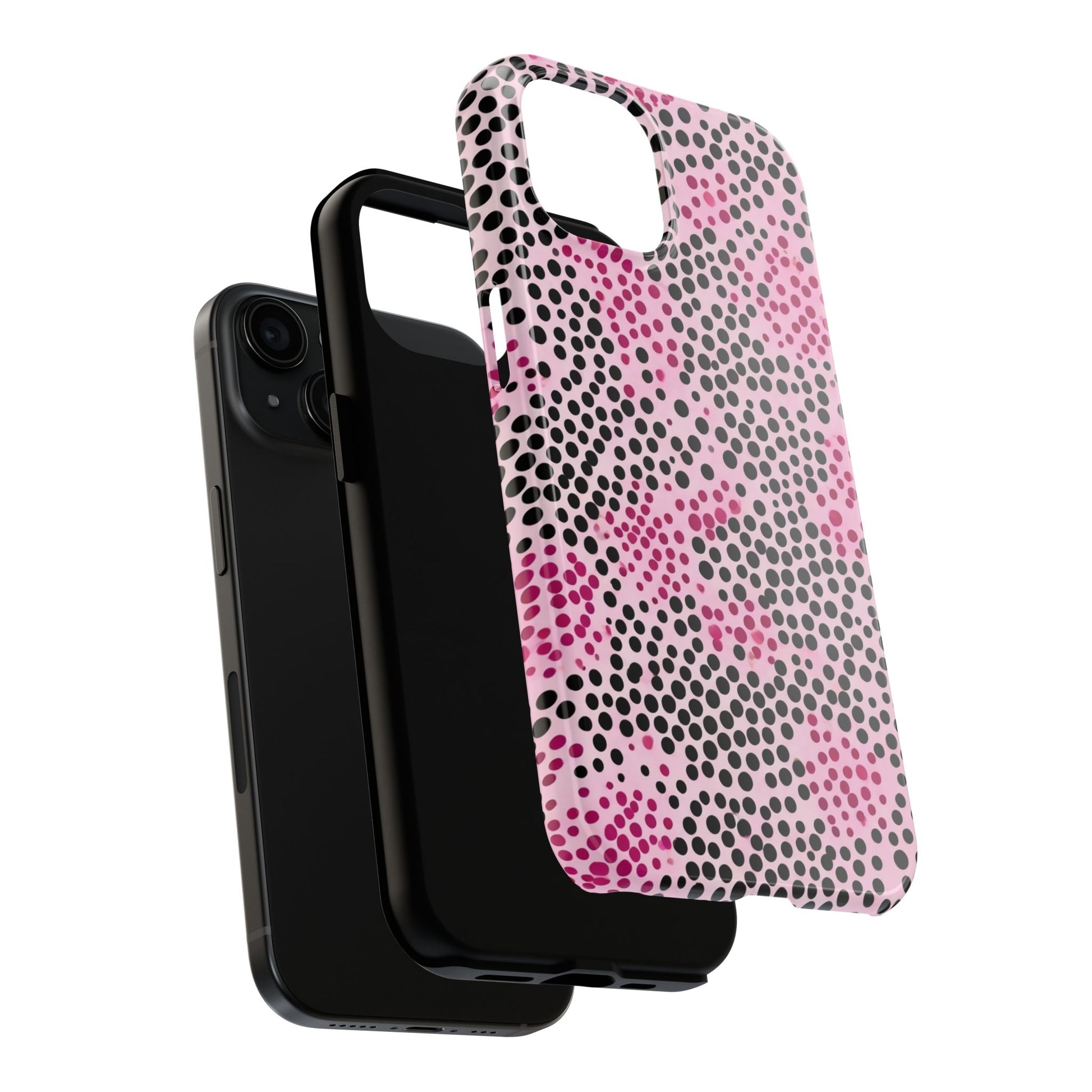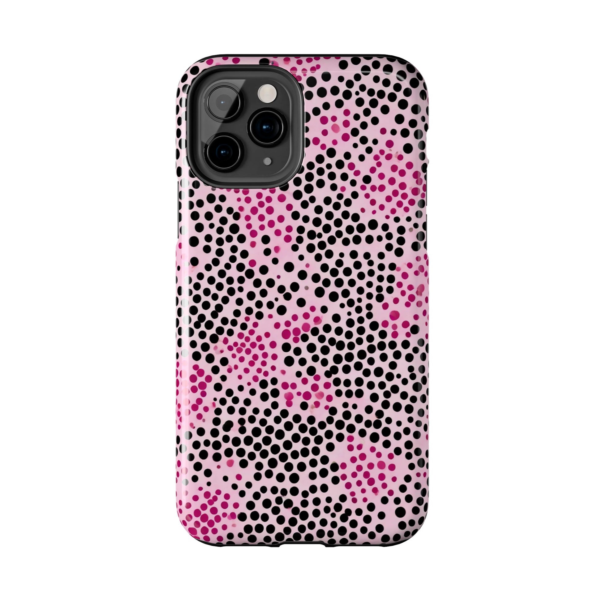 Stay stylish and protected with this pink and black dot tough phone case. The design is fun and trendy, perfect for someone looking to add a pop of color to their everyday life. This phone case is ideal for those who want both fashion and durability in their accessories. Great for birthdays, holidays, or just to treat yourself.