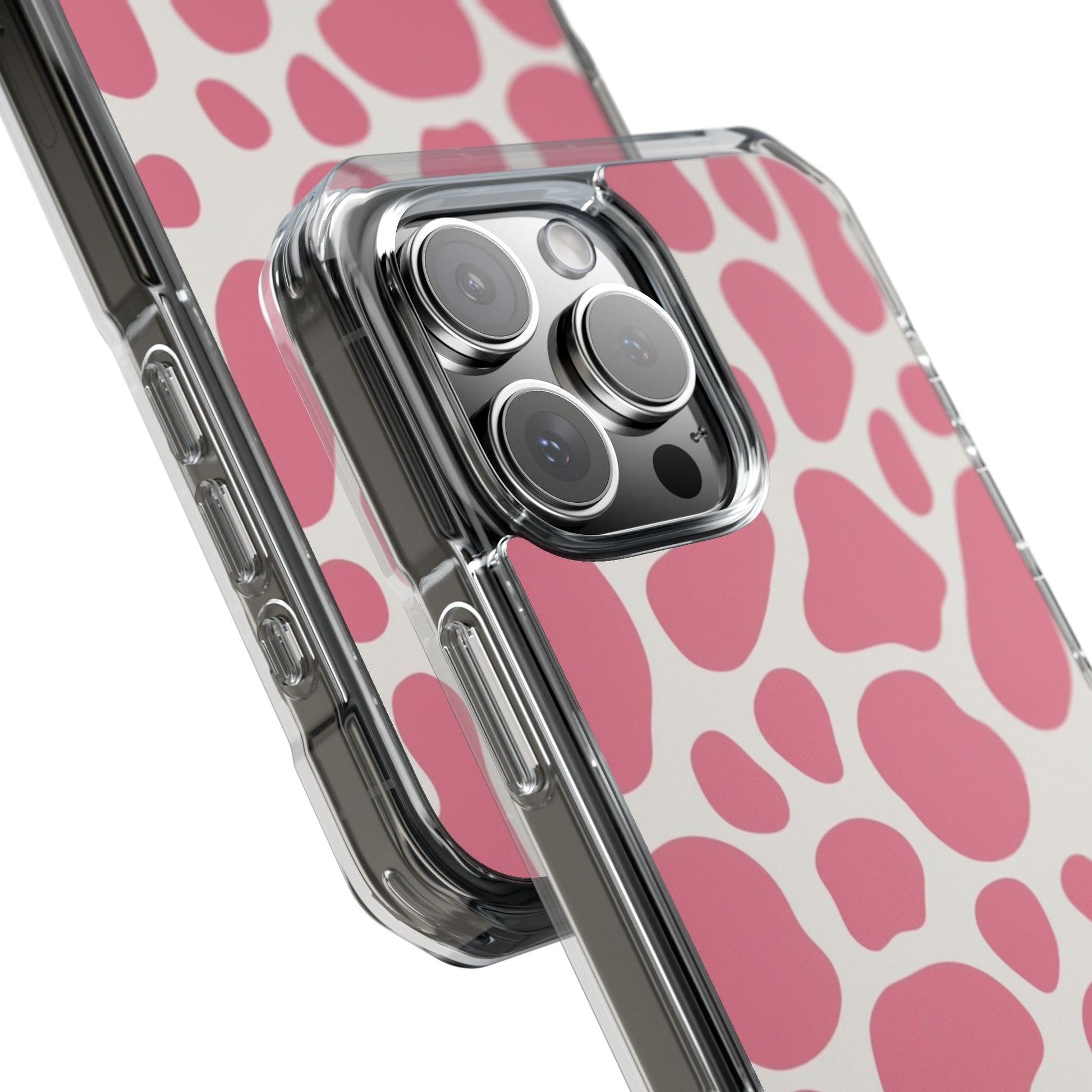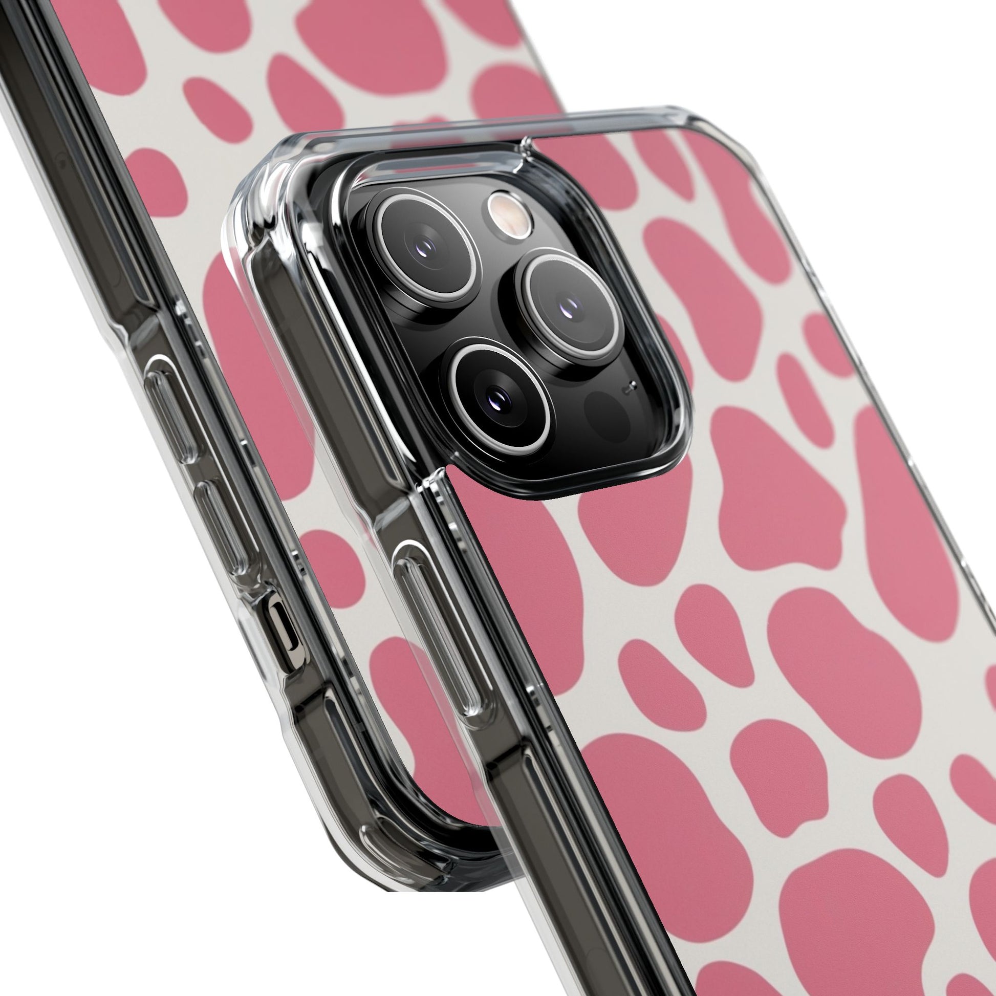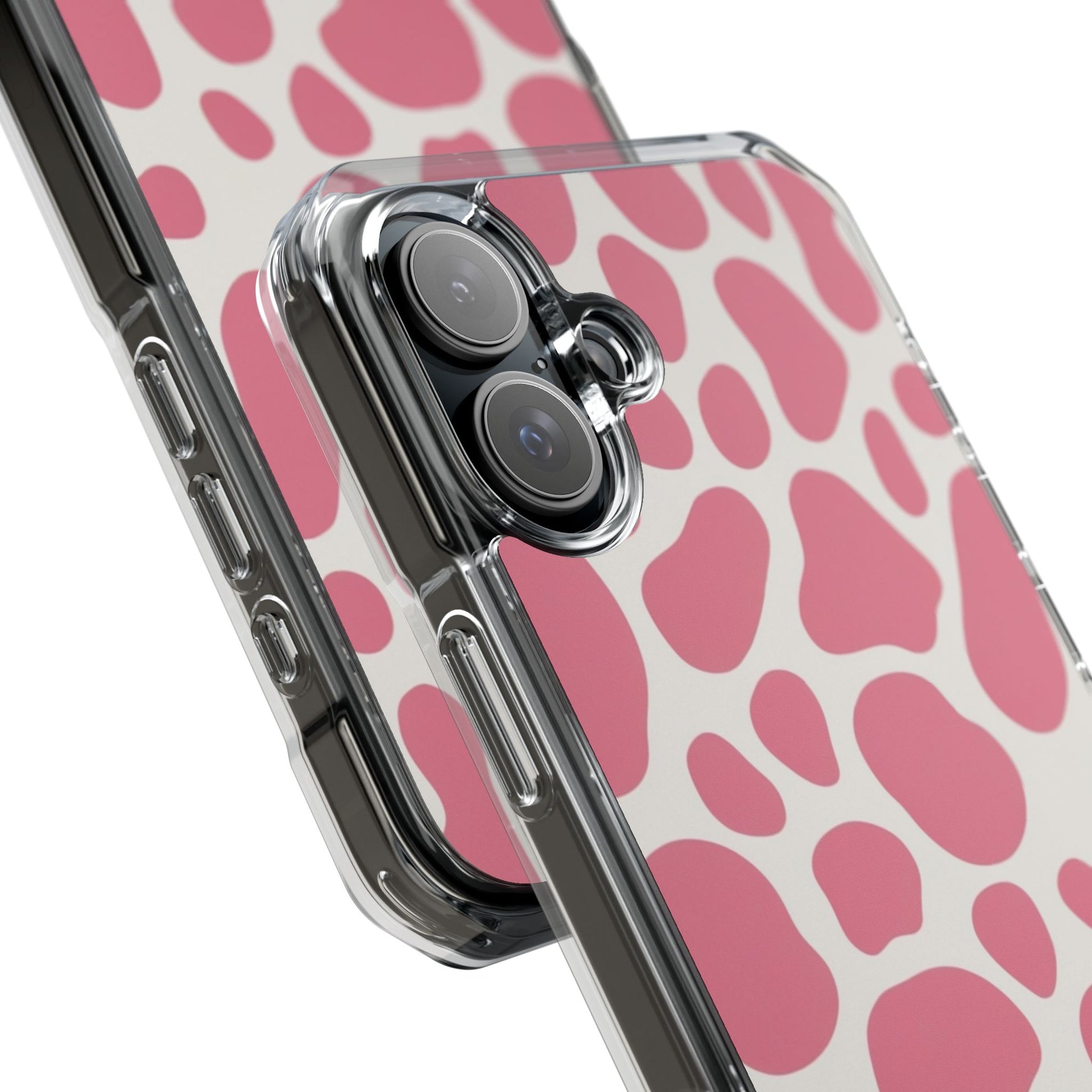 Pink Giraffe Print Magnetic Clear Impact Case for iPhone 16 15 14