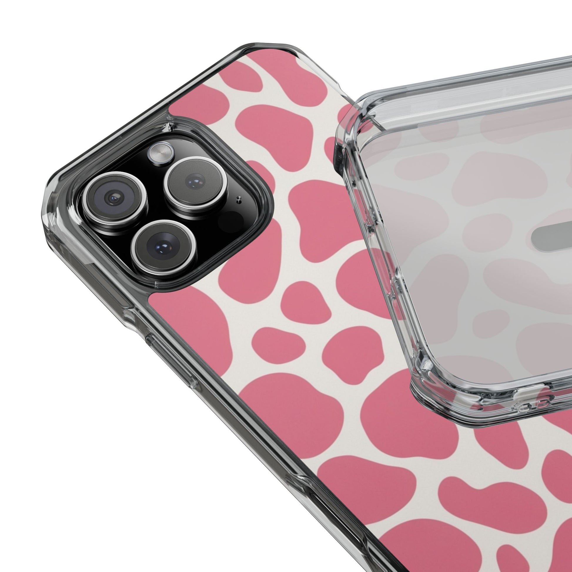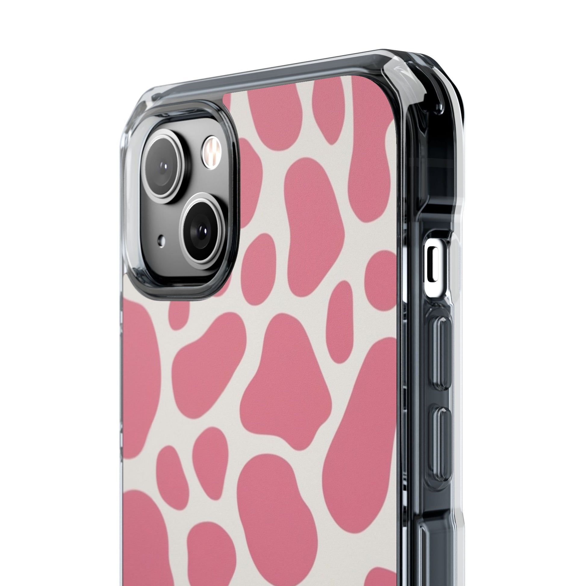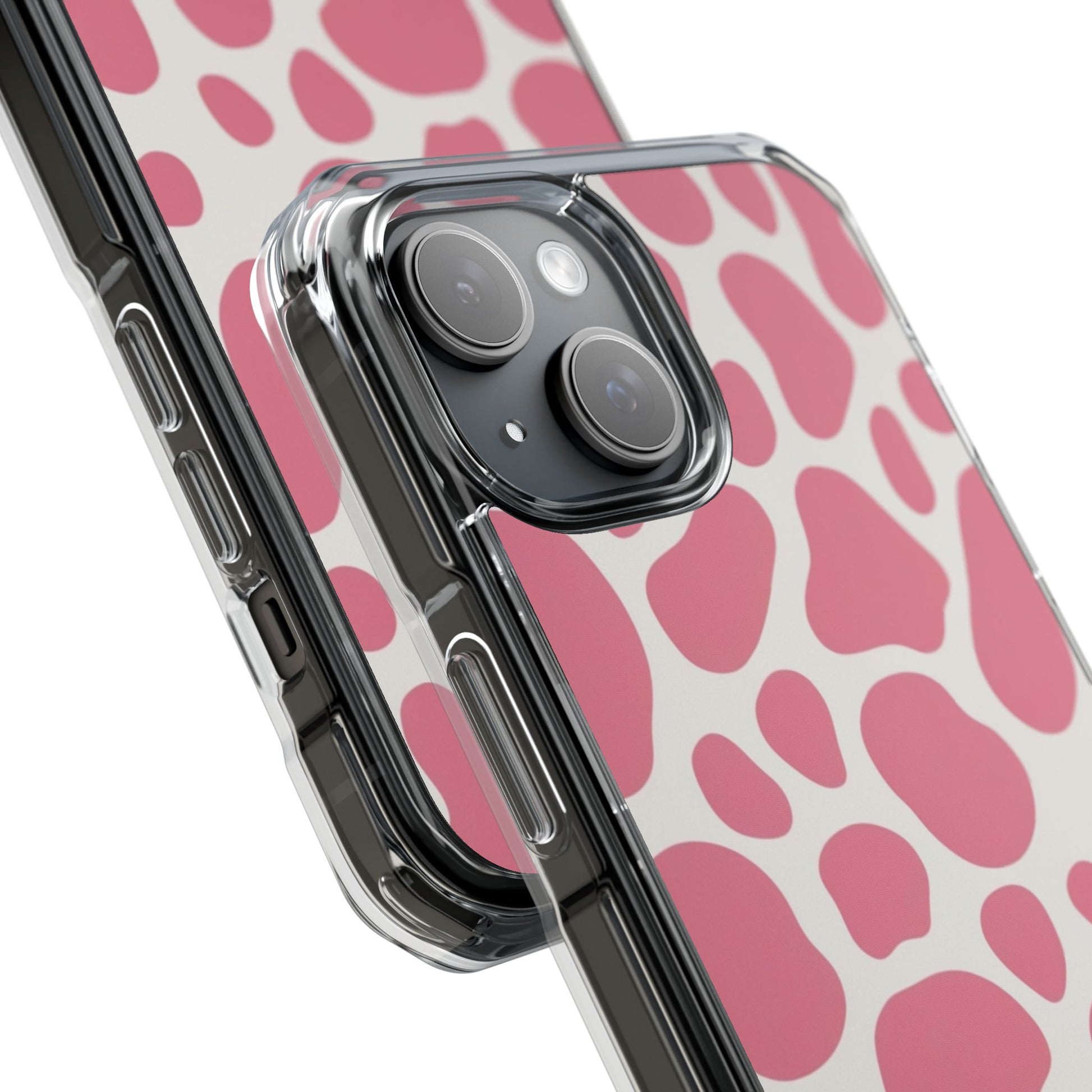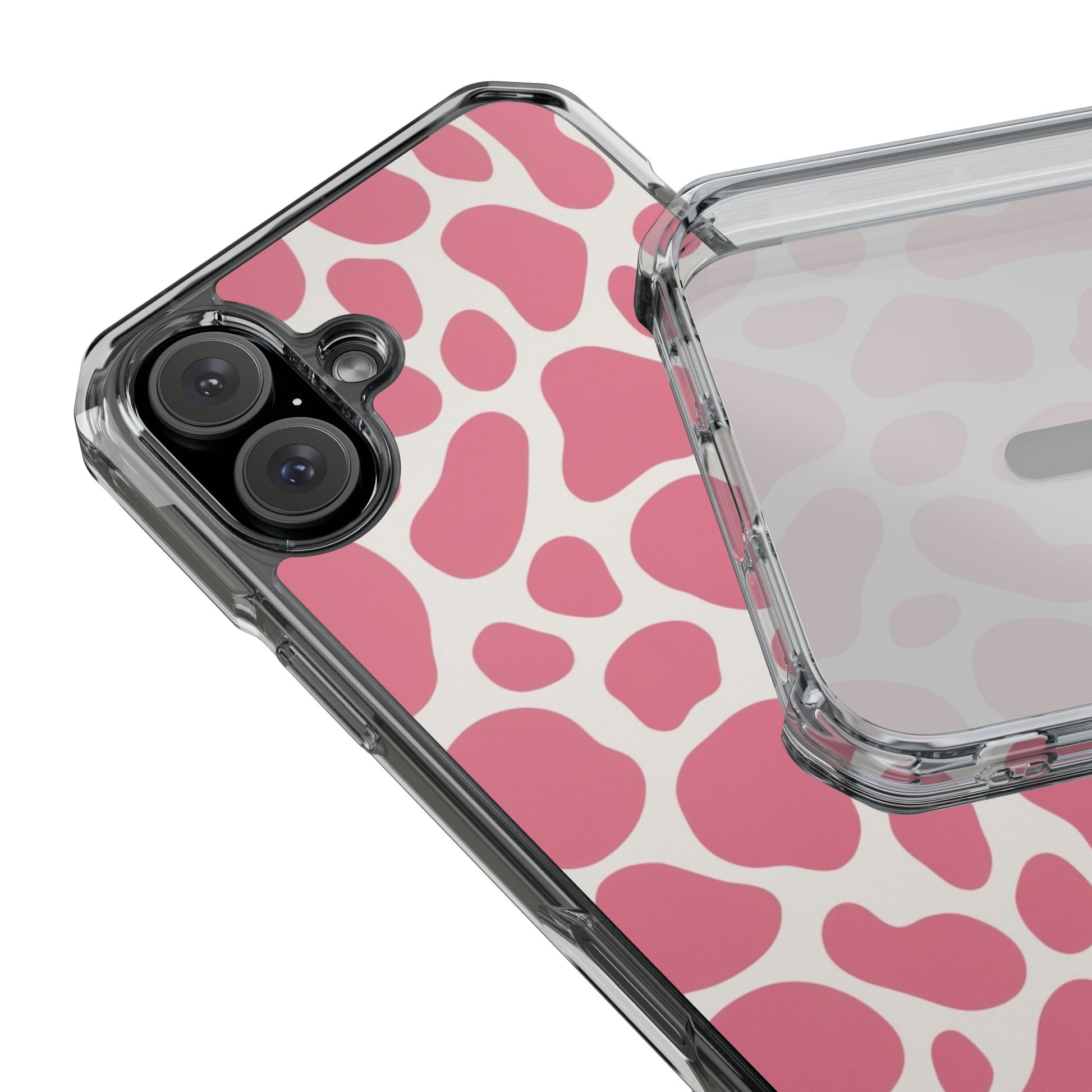 Pink Giraffe Print Magnetic Clear Impact Case for iPhone 16 15 14