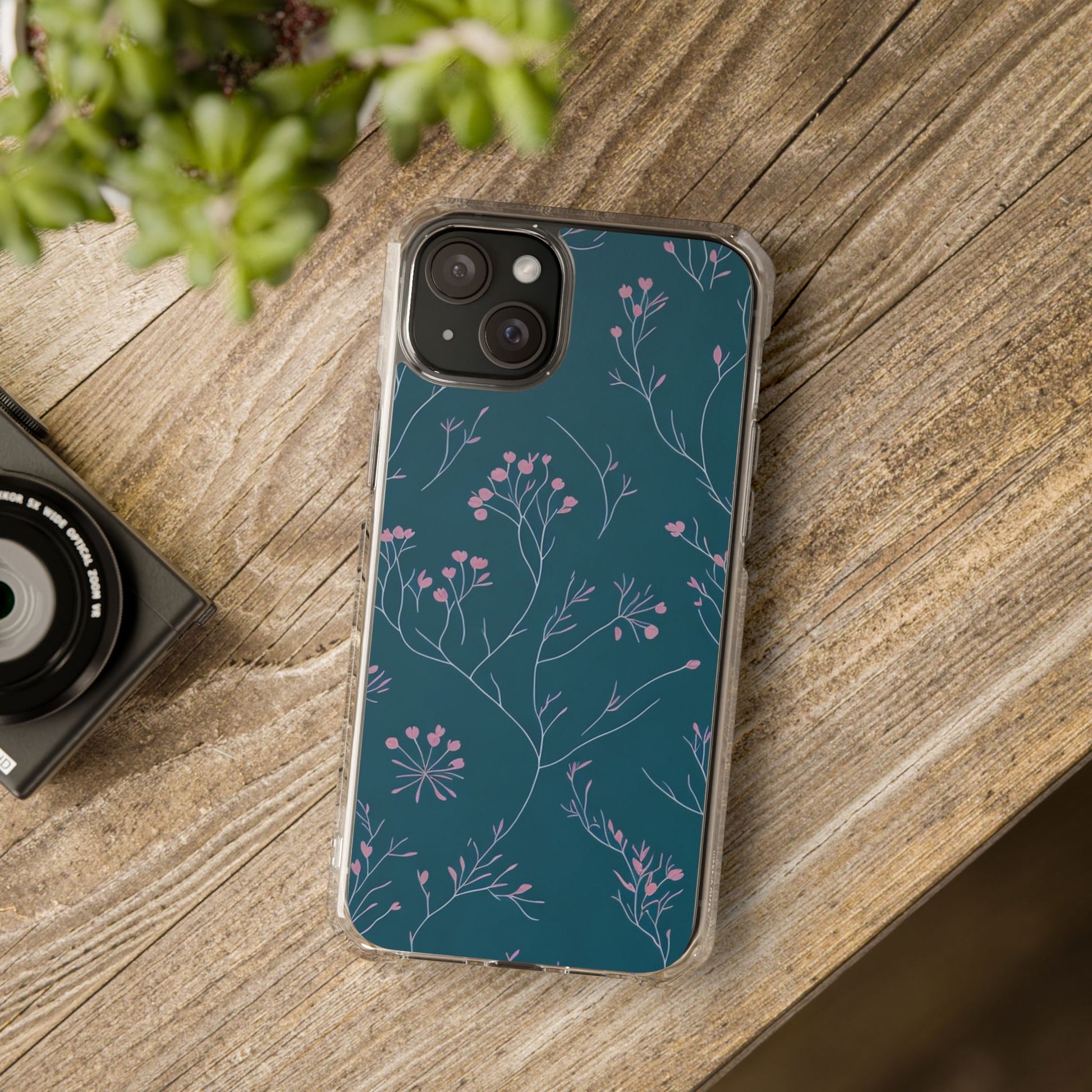 Stay stylish and protected with this teal floral magnetic clear impact phone case. The vibrant colors and elegant design make it a must-have accessory for anyone looking to keep their smartphone safe and secure. Perfect for those who love floral patterns and want a touch of sophistication in their everyday life. Ideal for gifting on birthdays, holidays, or special occasions.