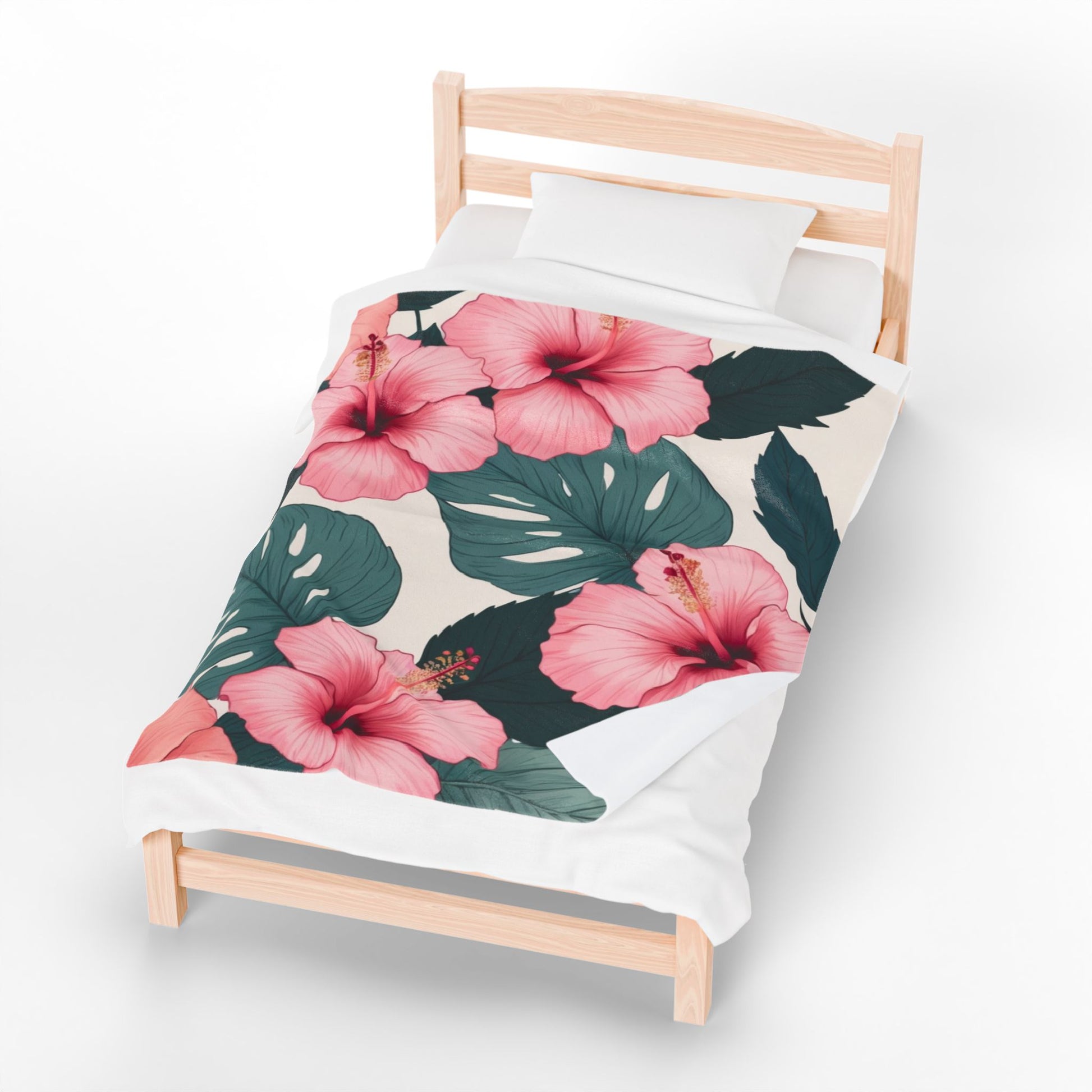 This cozy velveteen plush blanket features a vibrant tropical hibiscus design. Perfect for snuggling up on the couch or adding a pop of color to your bed. Ideal for adults who enjoy tropical and floral themes. Great for gifting during birthdays, housewarmings, Mother's Day, and Christmas.